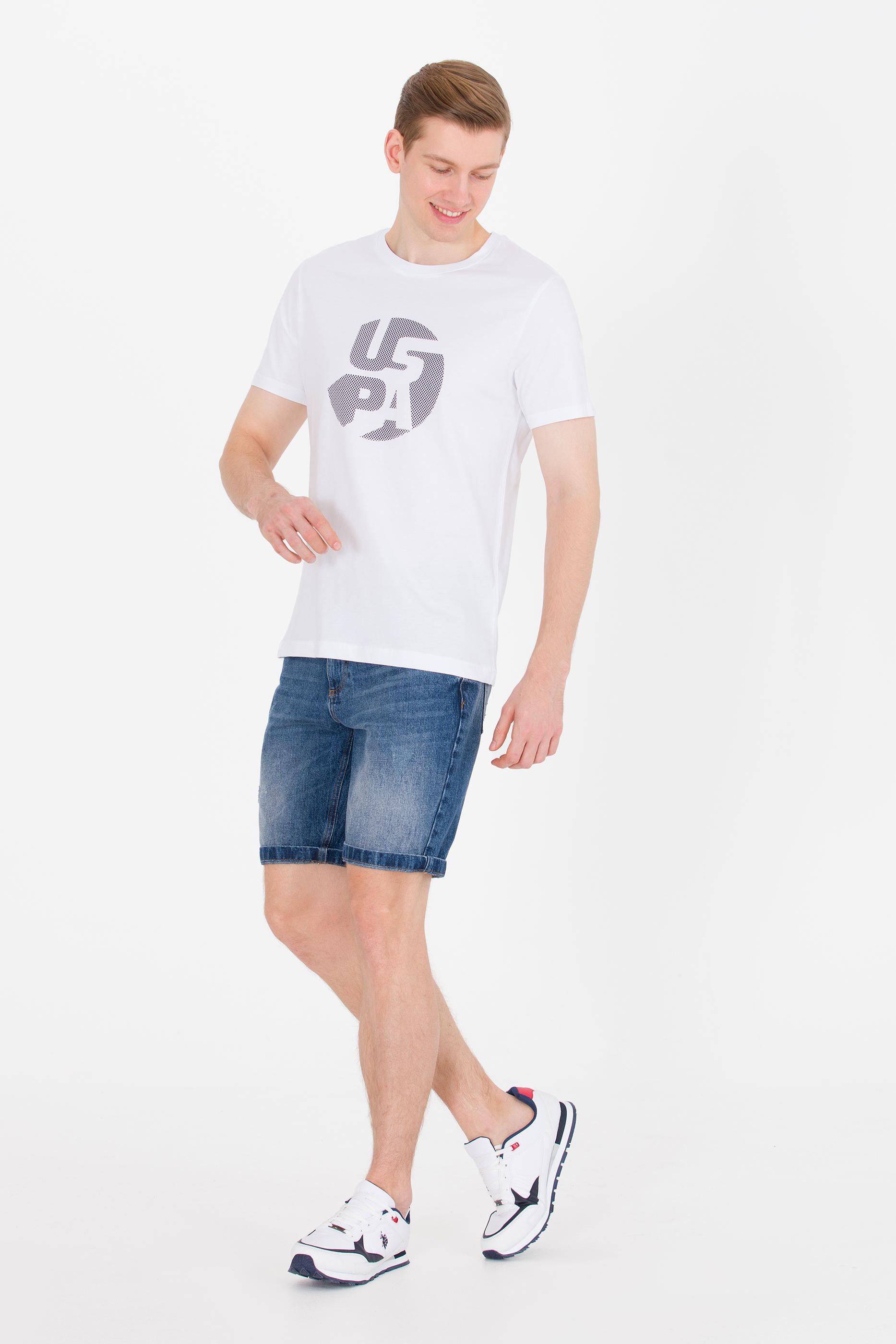 Erkek Beyaz Bisiklet Yaka Tişört