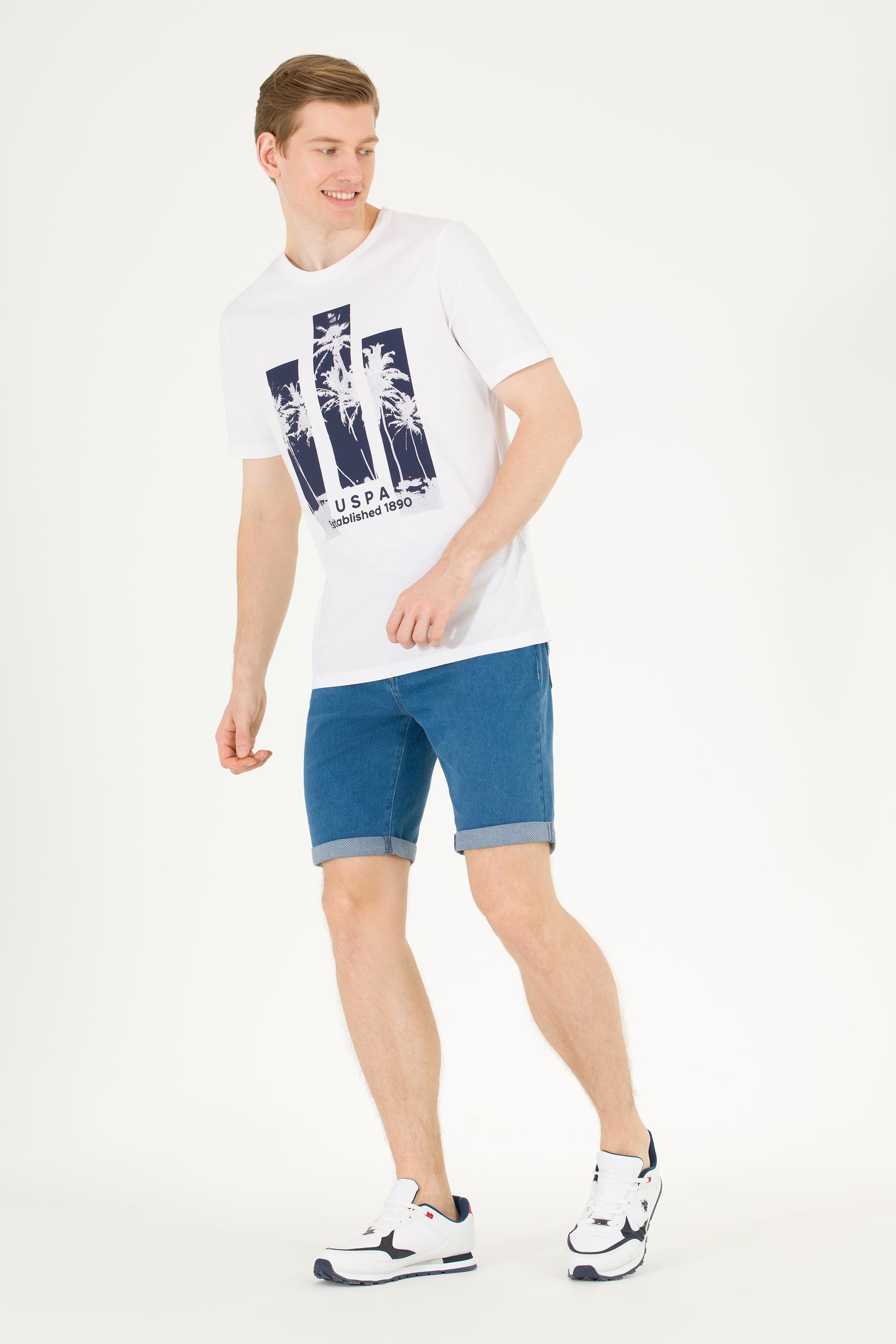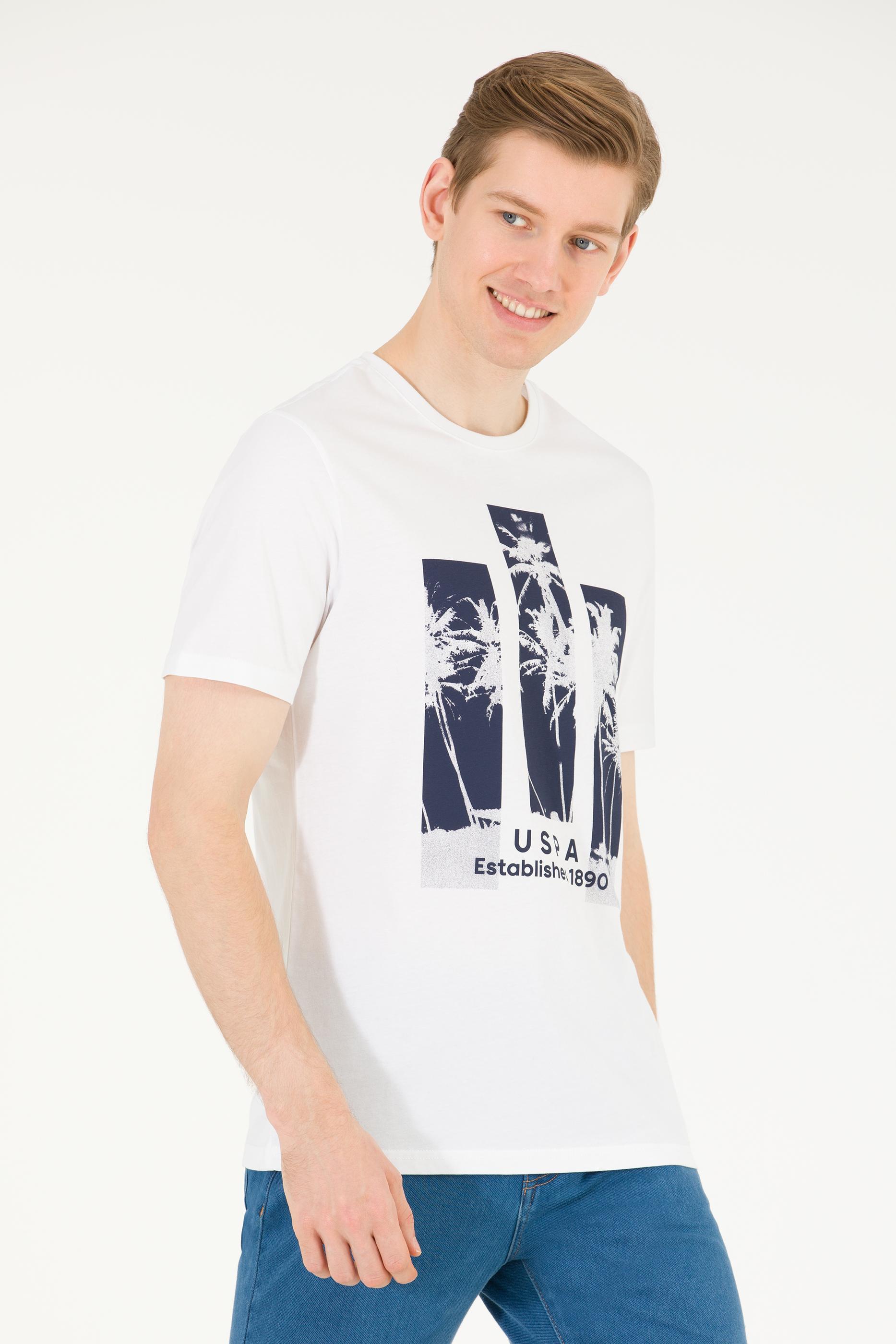 Erkek Beyaz Bisiklet Yaka Tişört
