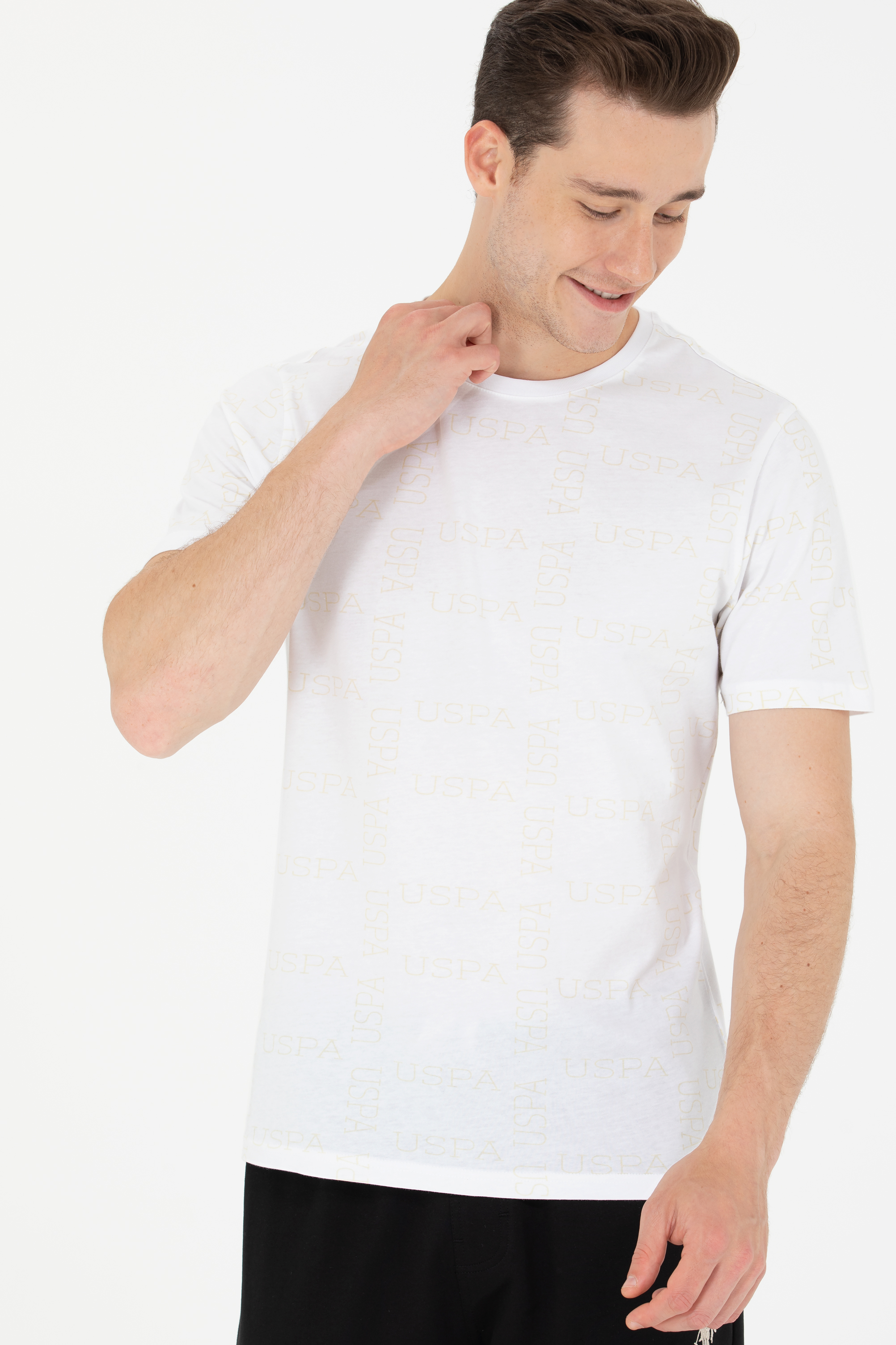 Erkek Beyaz Bisiklet Yaka Tişört