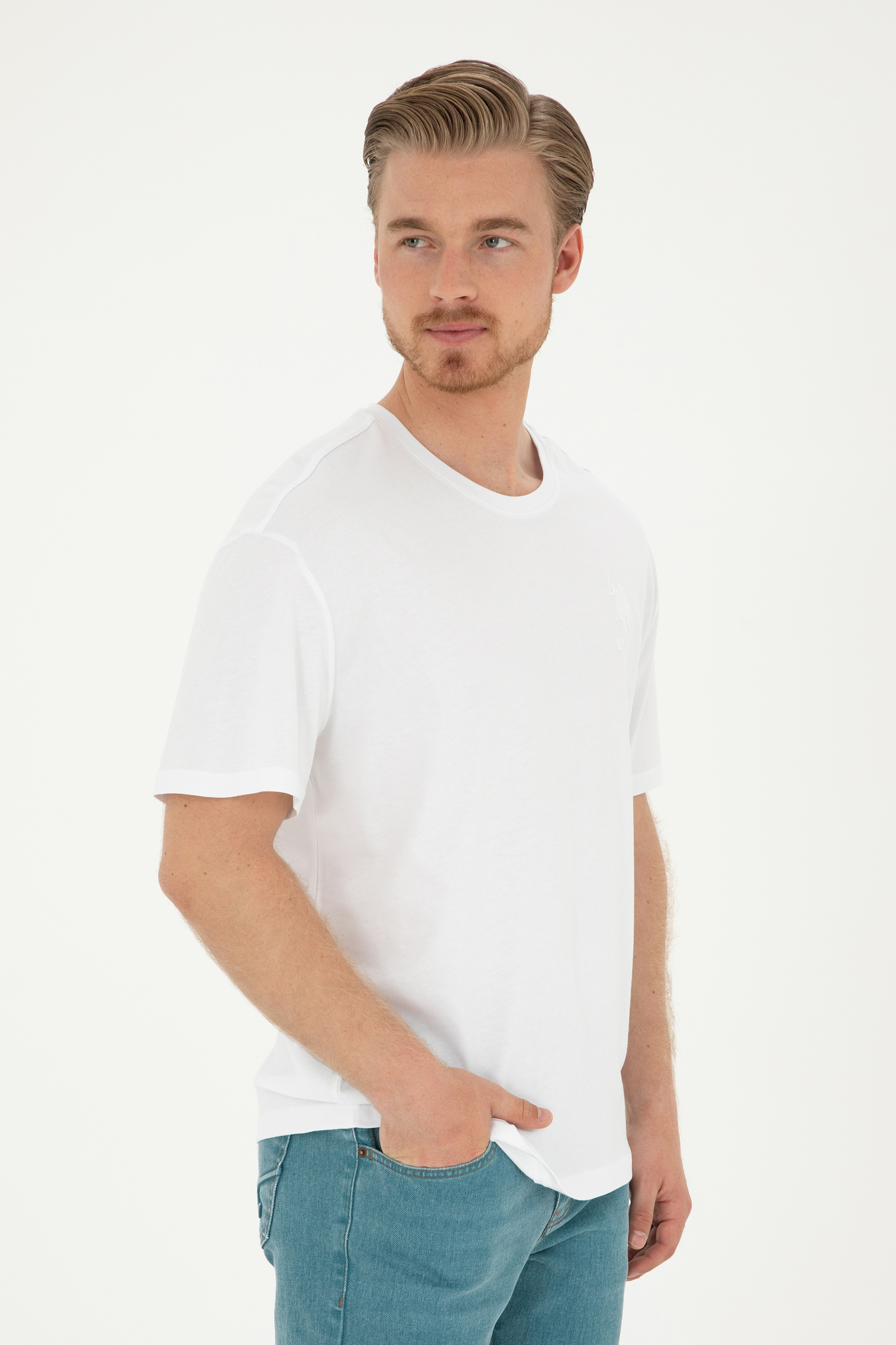 - Erkek Comfort Fit Bisiklet Yaka Beyaz Tişört