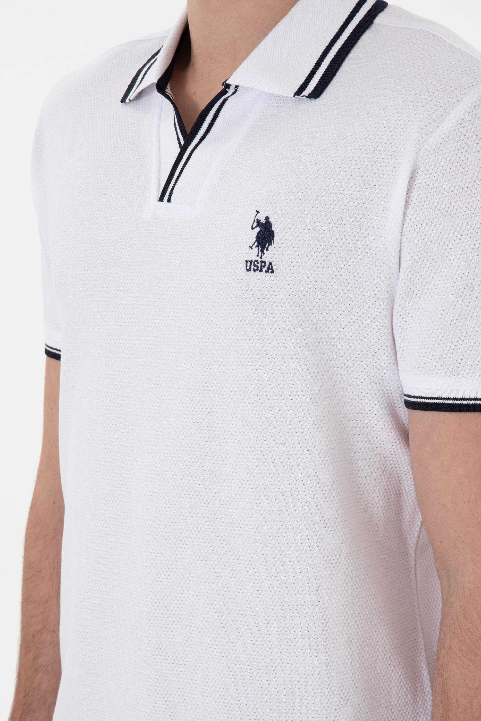 - Erkek Slim Fit Polo Yaka Beyaz Tişört
