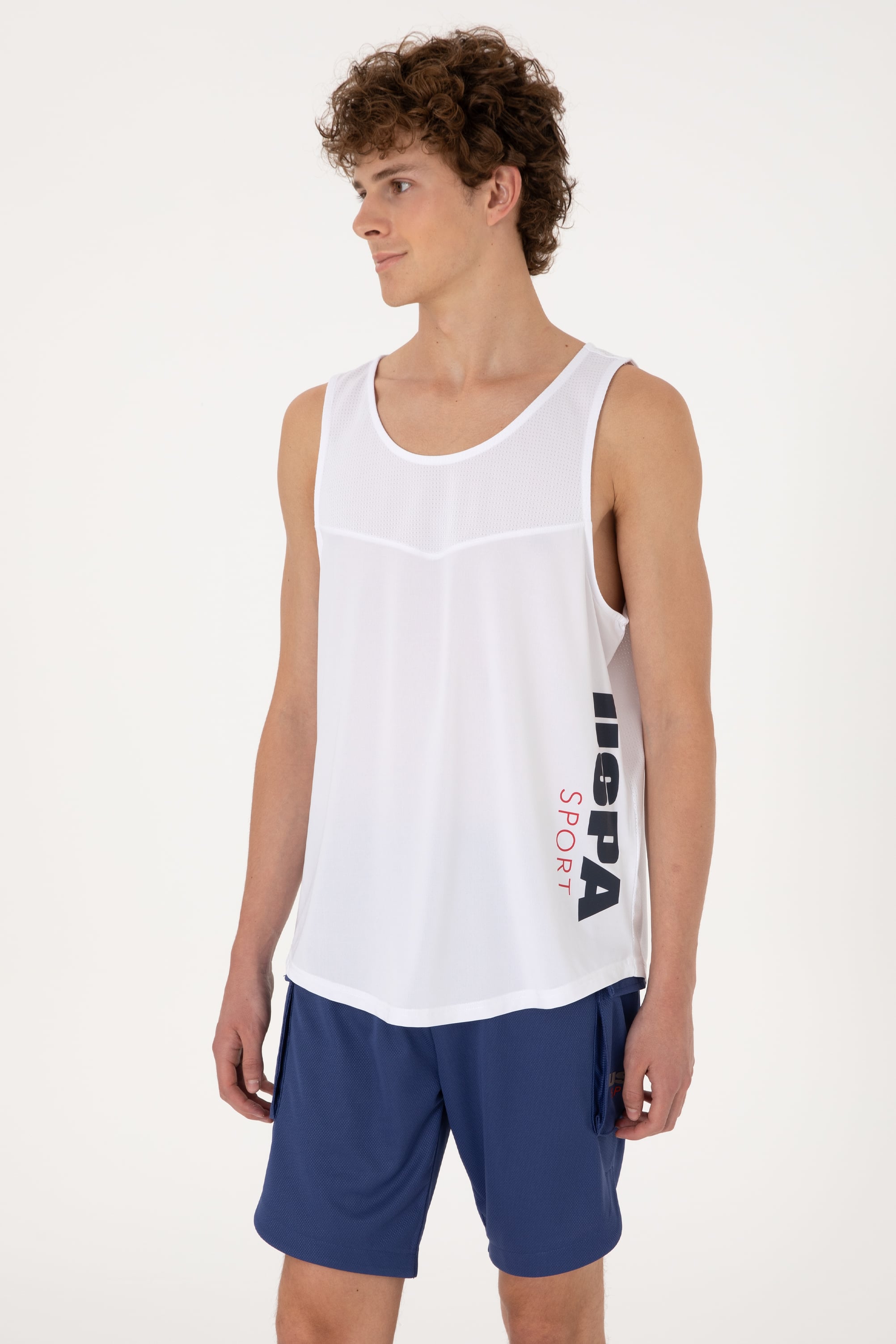 - Erkek Regular Fit Bisiklet Yaka Beyaz Kolsuz Tişört