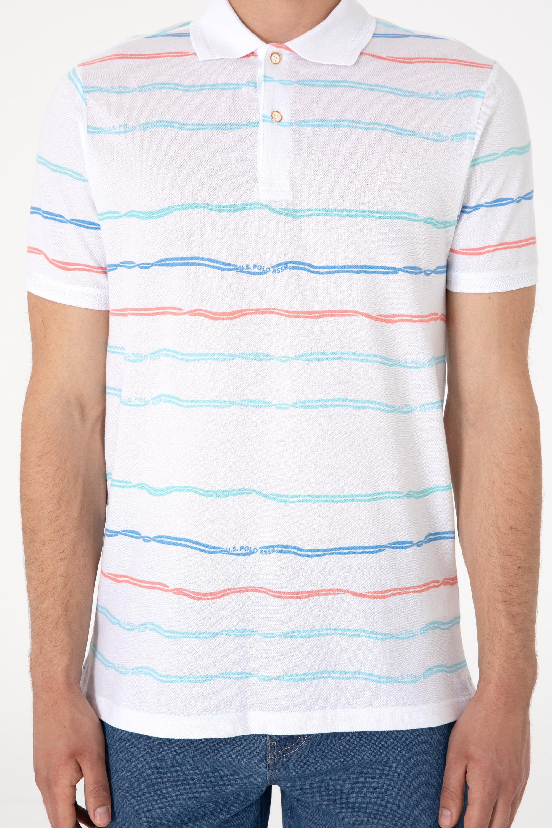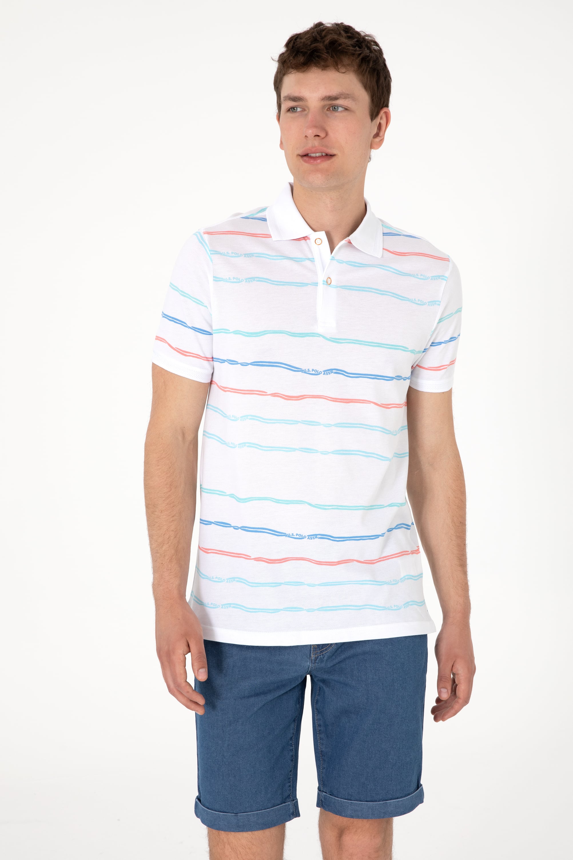 Erkek Regular Fit Polo Yaka Beyaz Çizgili Tişört