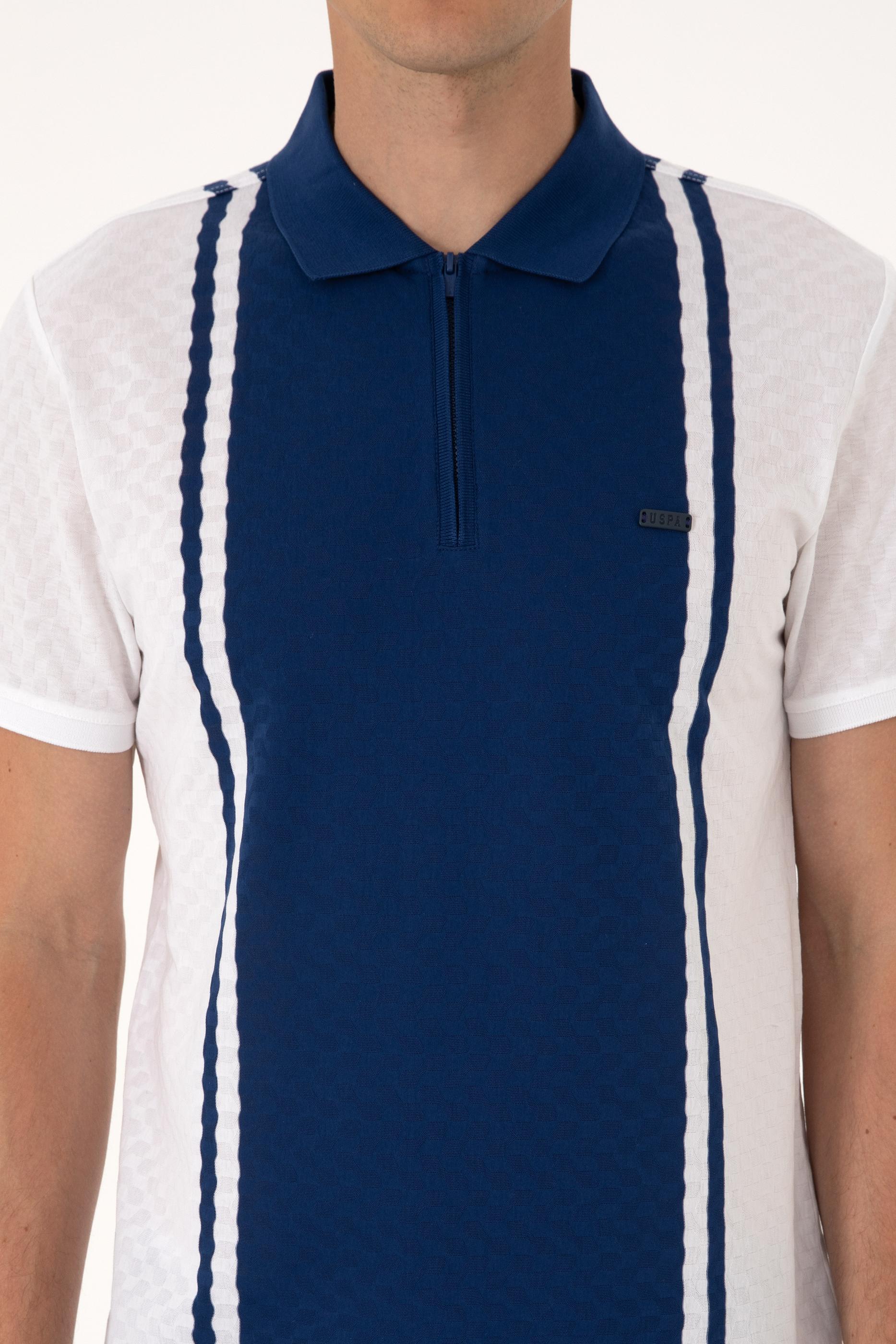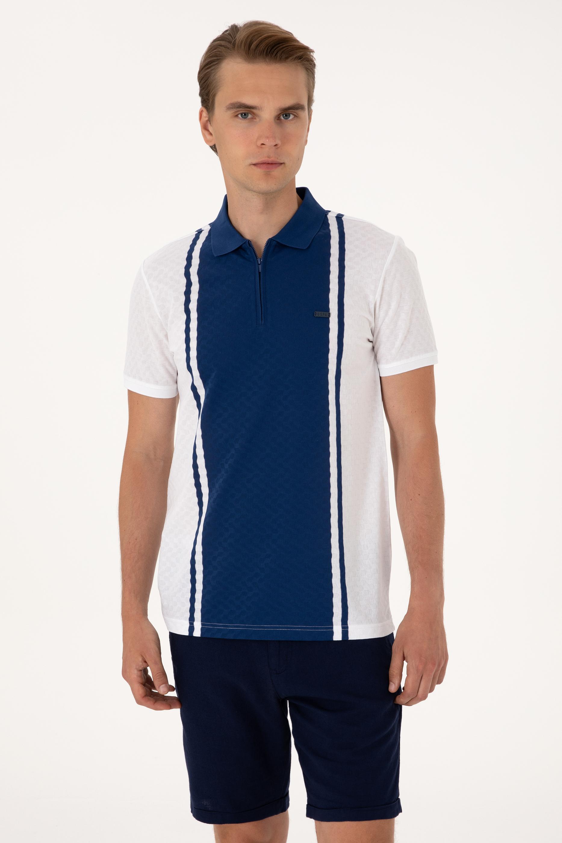 Erkek Regular Fit Beyaz Polo Yaka Fermuarlı Tişört