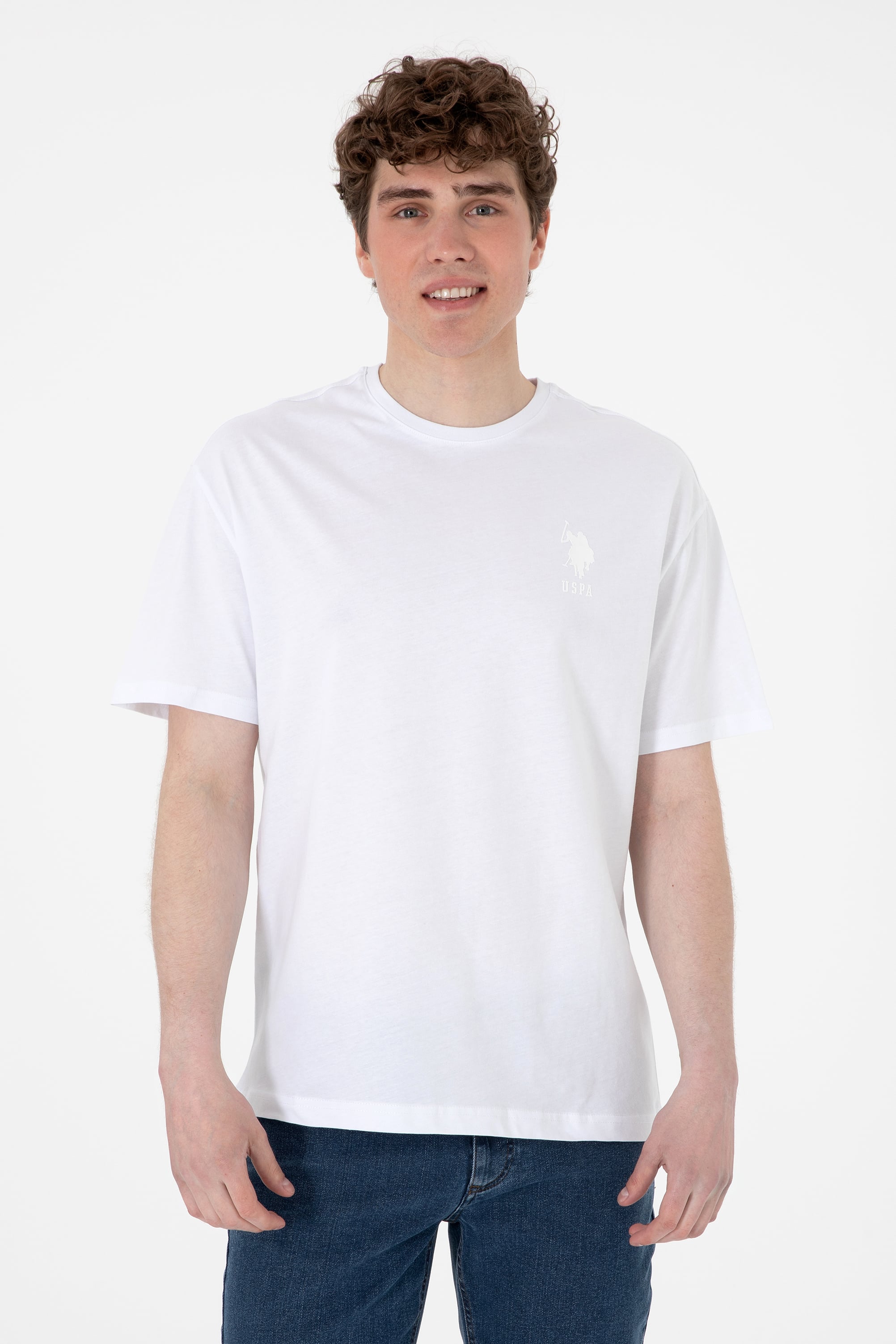 - Erkek Comfort Fit Bisiklet Yaka Beyaz Tişört