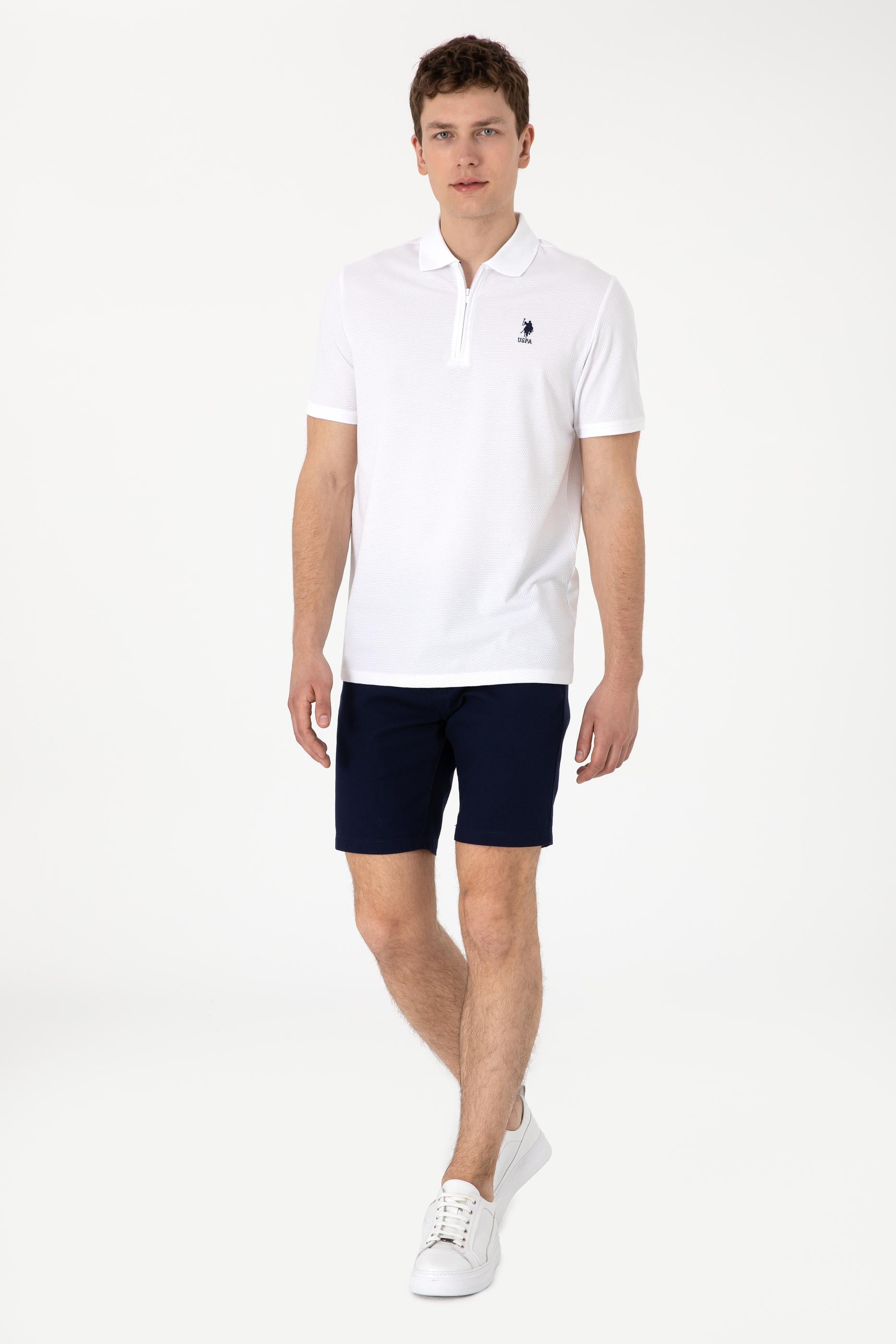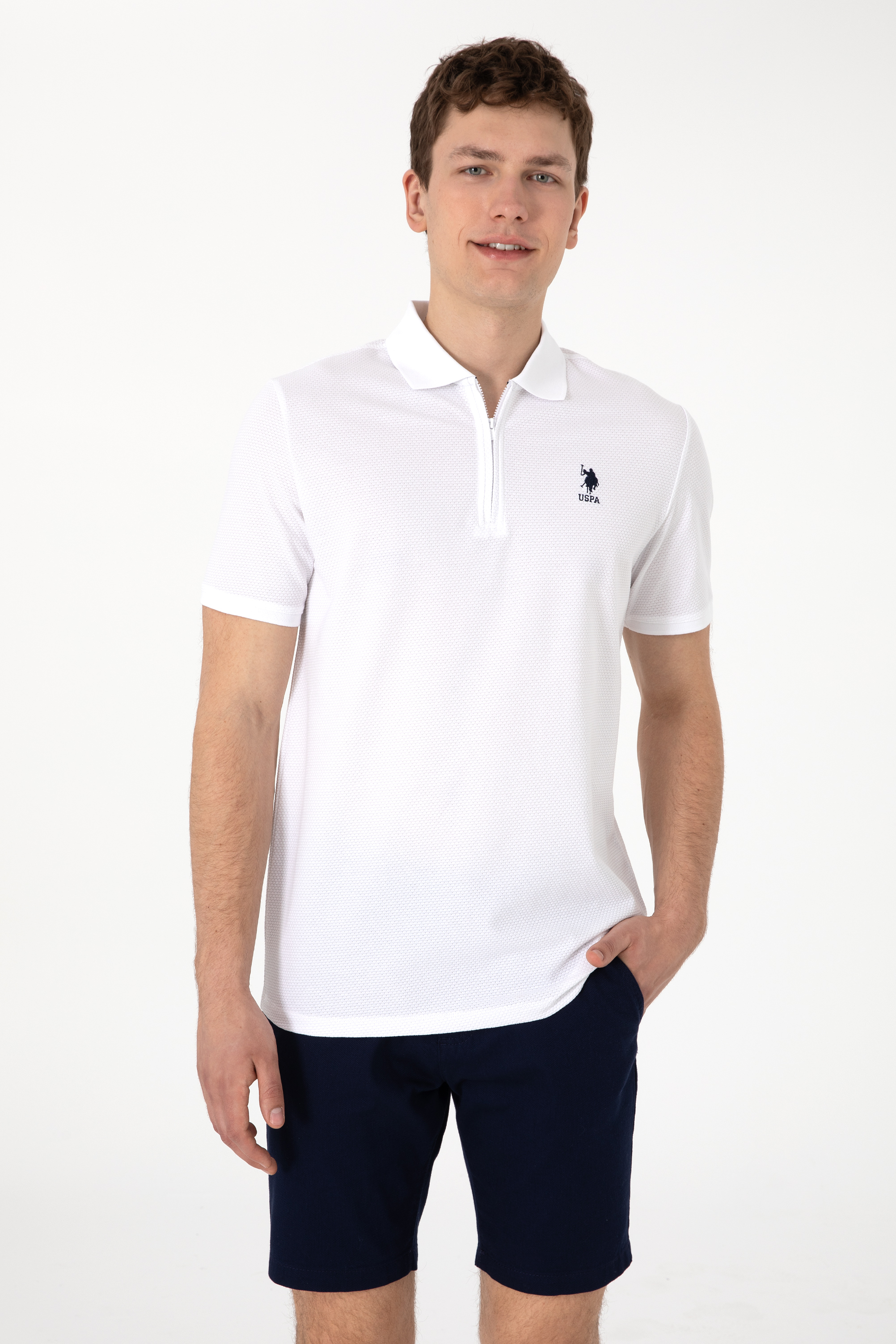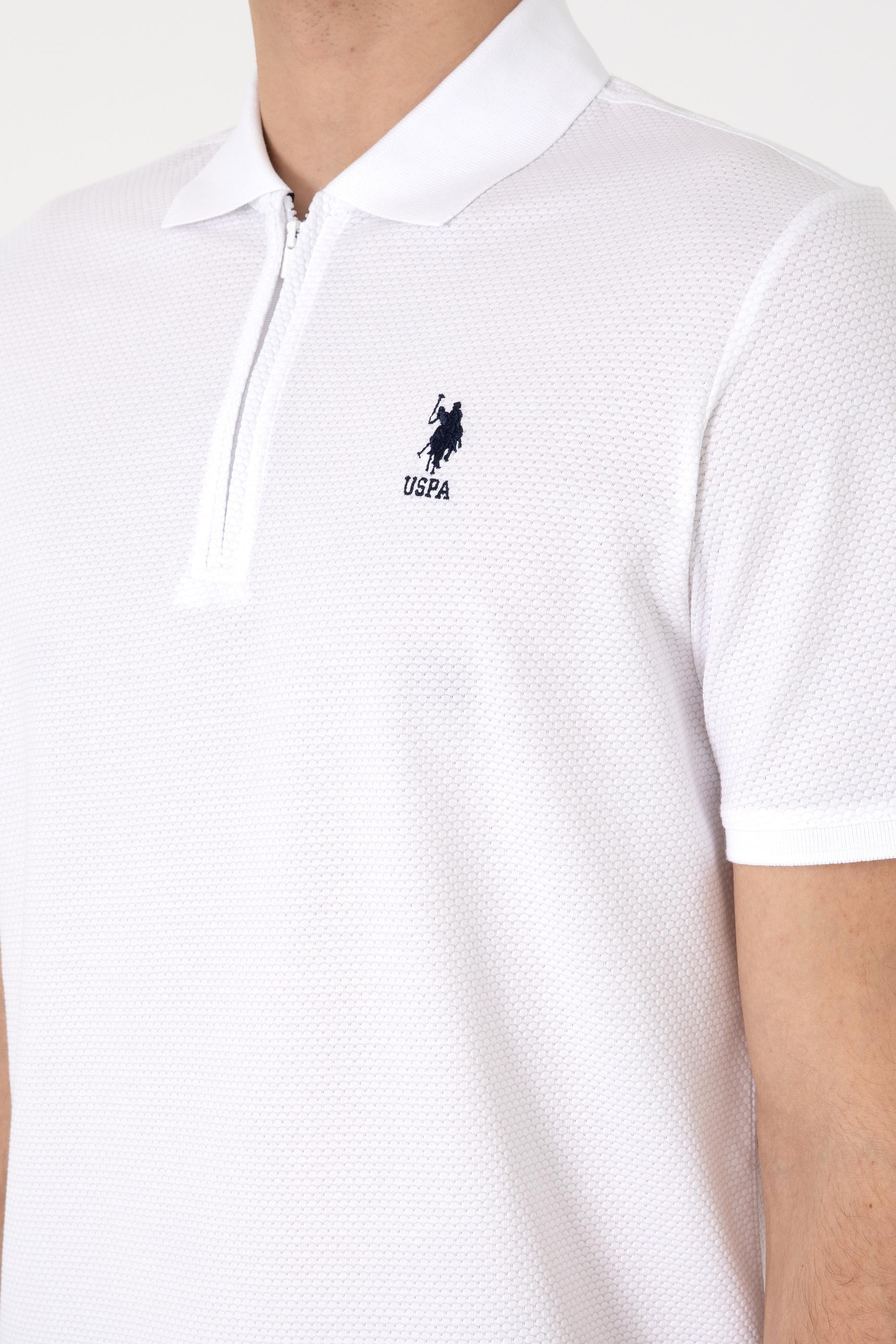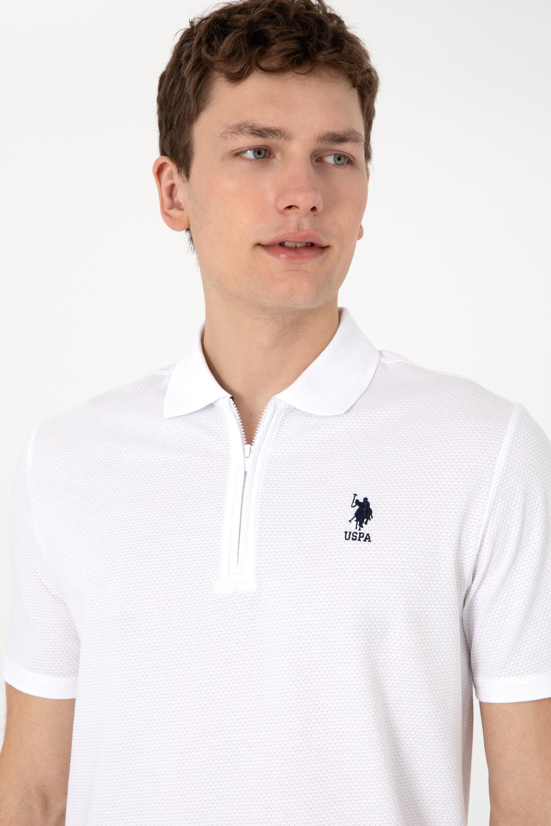 Erkek Regular Fit Fermuarlı Beyaz Dokulu Tişört