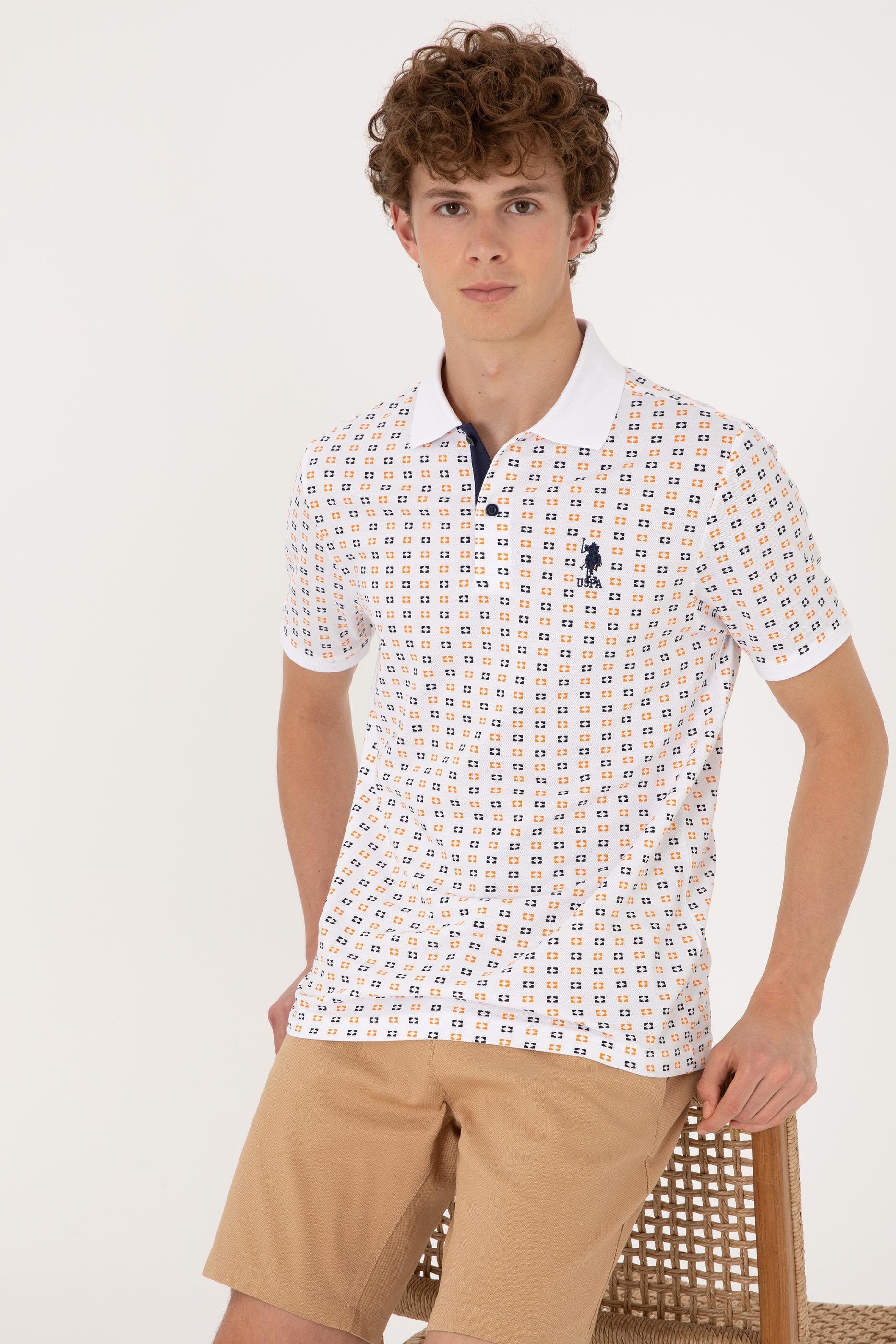 Erkek Regular Fit Beyaz Polo Yaka Desenli Tişört