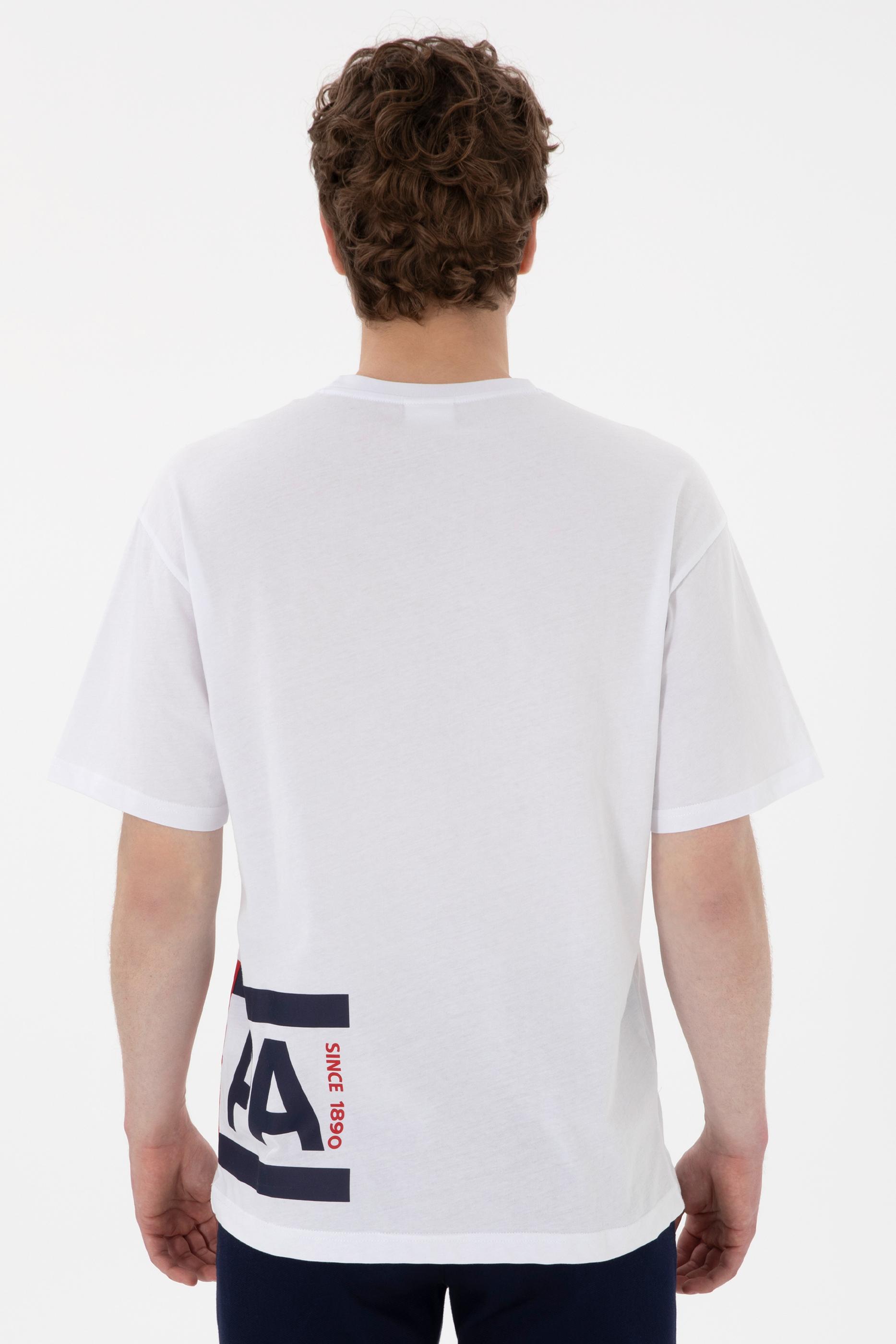 enerjik tasarımıyla öne çıkan bu beyaz U.S. Polo Assn. erkek tişört, tarzına cesur bir dokunuş katmak isteyenler için ideal bir seçimdir. %100 pamuklu kumaştan üretilmiş olan model, yumuşak dokusu ve nefes alabilir yapısıyla maksimum konfor sunarken, comfort fit kalıbı sayesinde vücuda oturmadan rahat bir kullanım sağlar. Sol etek ucunda yer alan büyük, kontrast renkli “USPA” baskısı, sade zeminle etkileyici bir tezat oluşturarak modern ve sportif bir görünüm yaratır. Bisiklet yaka detayı ve kısa kollu formu ile günlük giyimde kolaylıkla tercih edilebilir. Açık renkli şortlar, jean pantolonlar ya da sneaker’larla kombinlenerek dinamik bir yaz stili oluşturmanıza yardımcı olur.