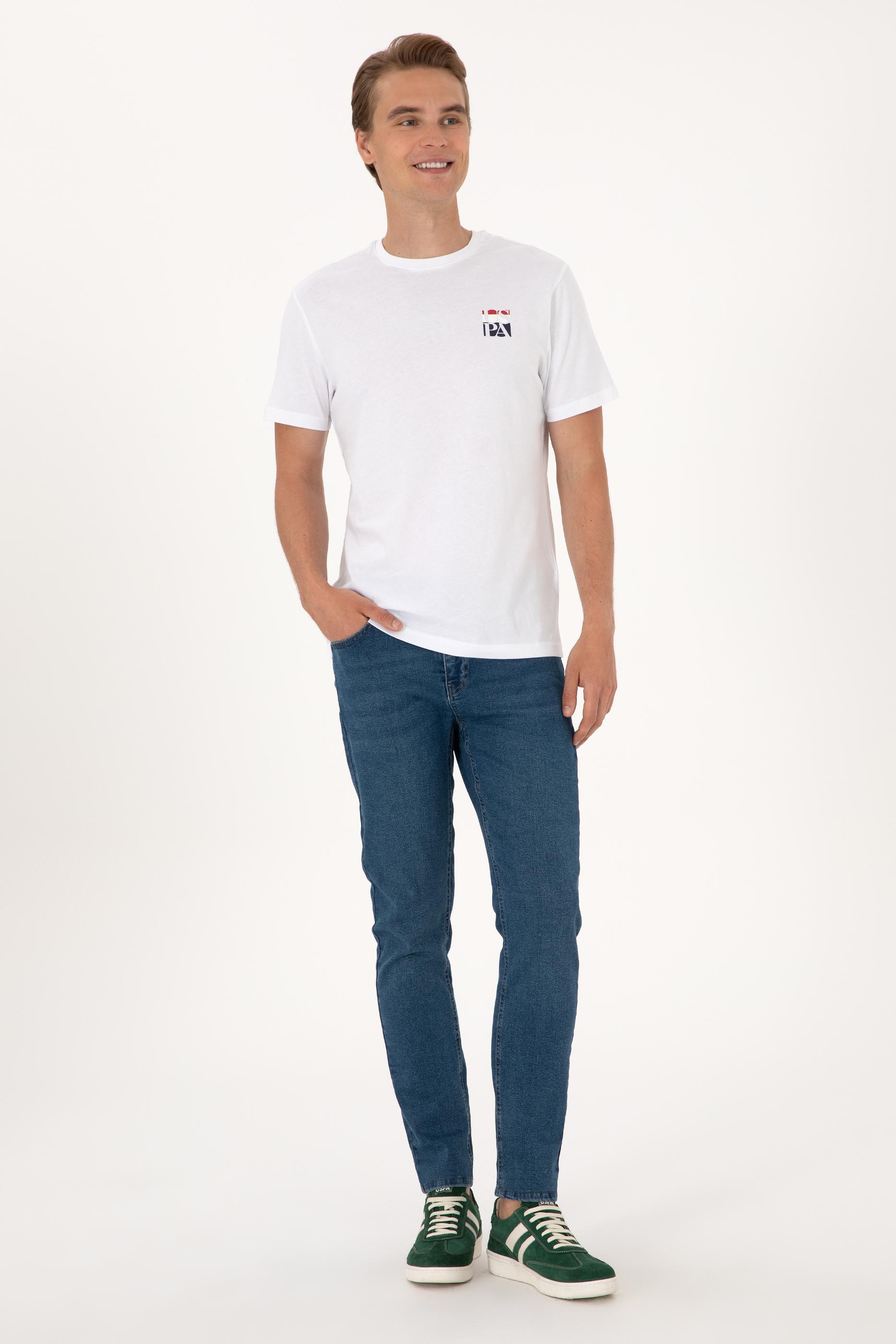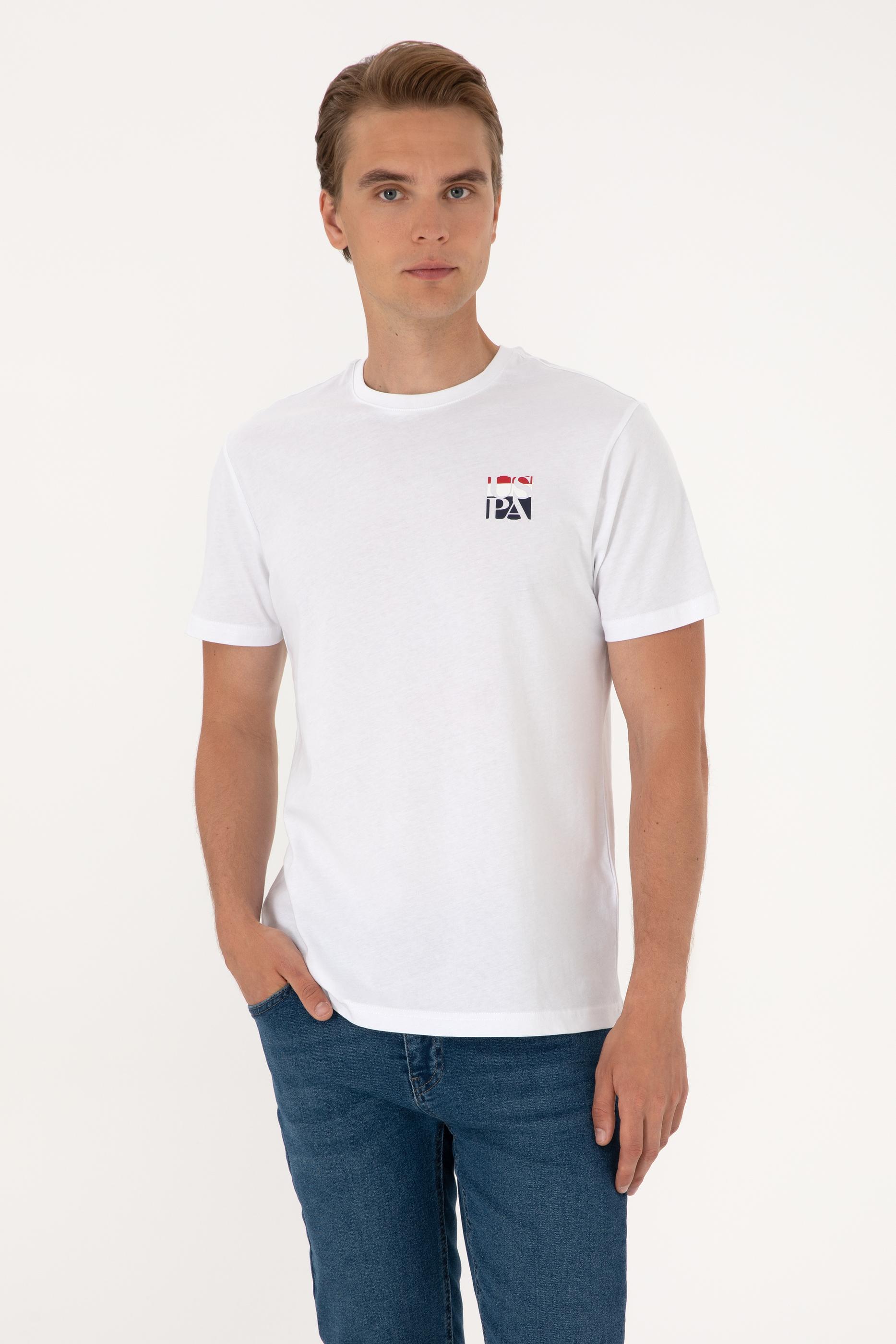 Erkek Regular Fit Beyaz Bisiklet Yaka Tişört