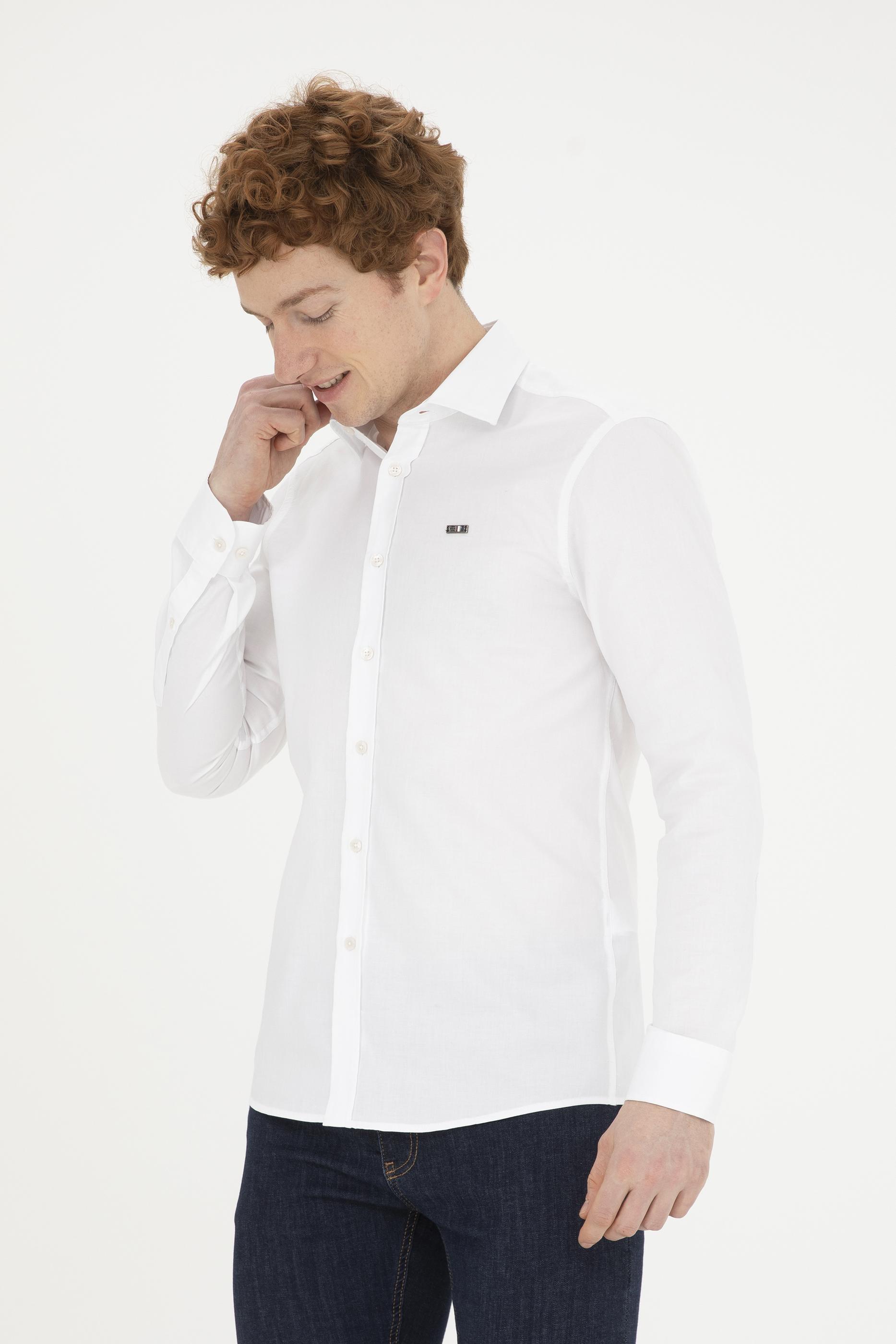 Erkek Beyaz Uzun Kollu Basic Gömlek