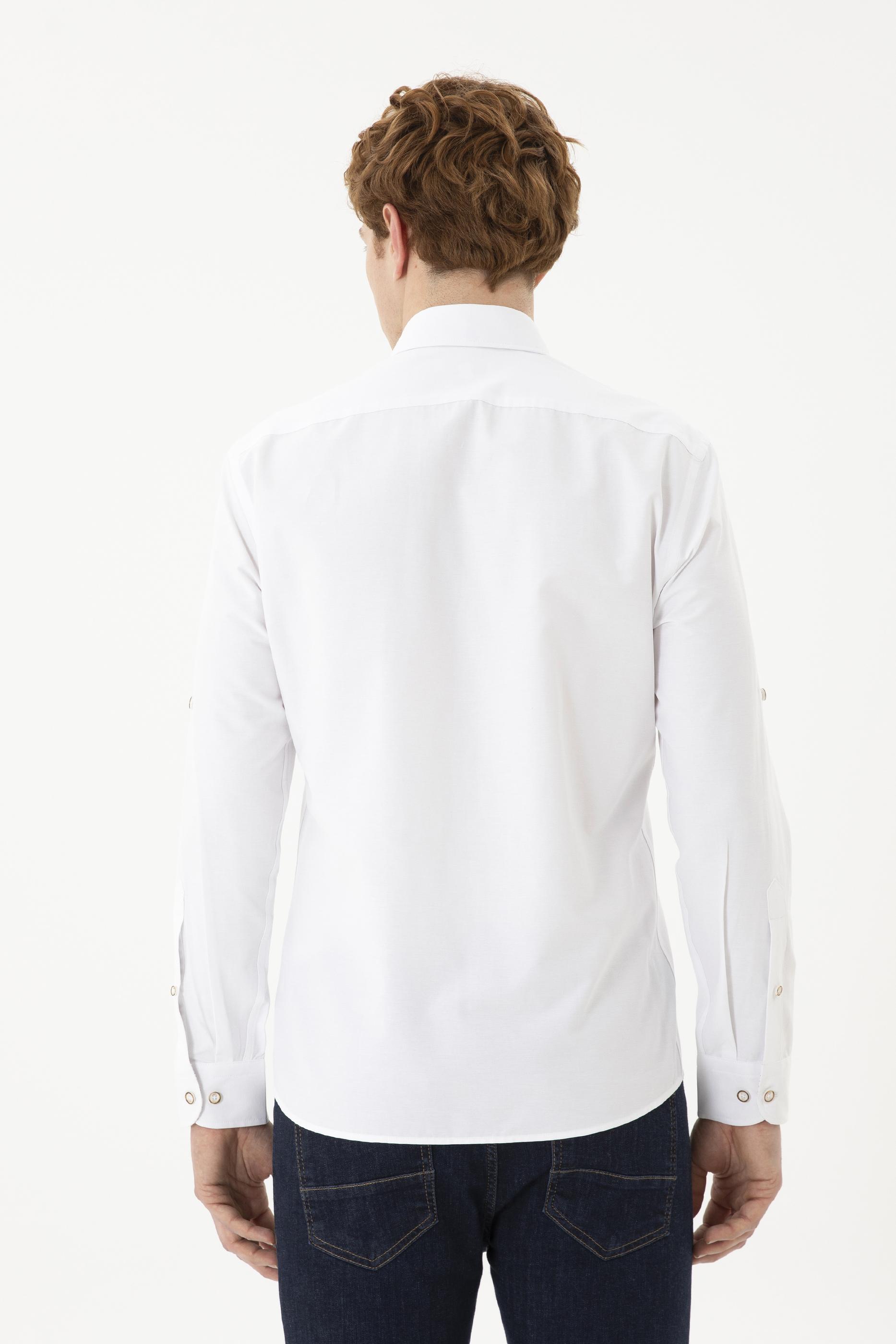 Beyaz rengi, her türlü pantolon ve ceketle kolayca kombinlenebilir. Yaz aylarında açık renkli chino pantolonlarla, kış aylarında ise koyu renkli blazer ceketlerle mükemmel bir uyum sağlar. Gömlek özellikle iş toplantıları, resmi davetler ve özel günler için ideal bir tercihtir.