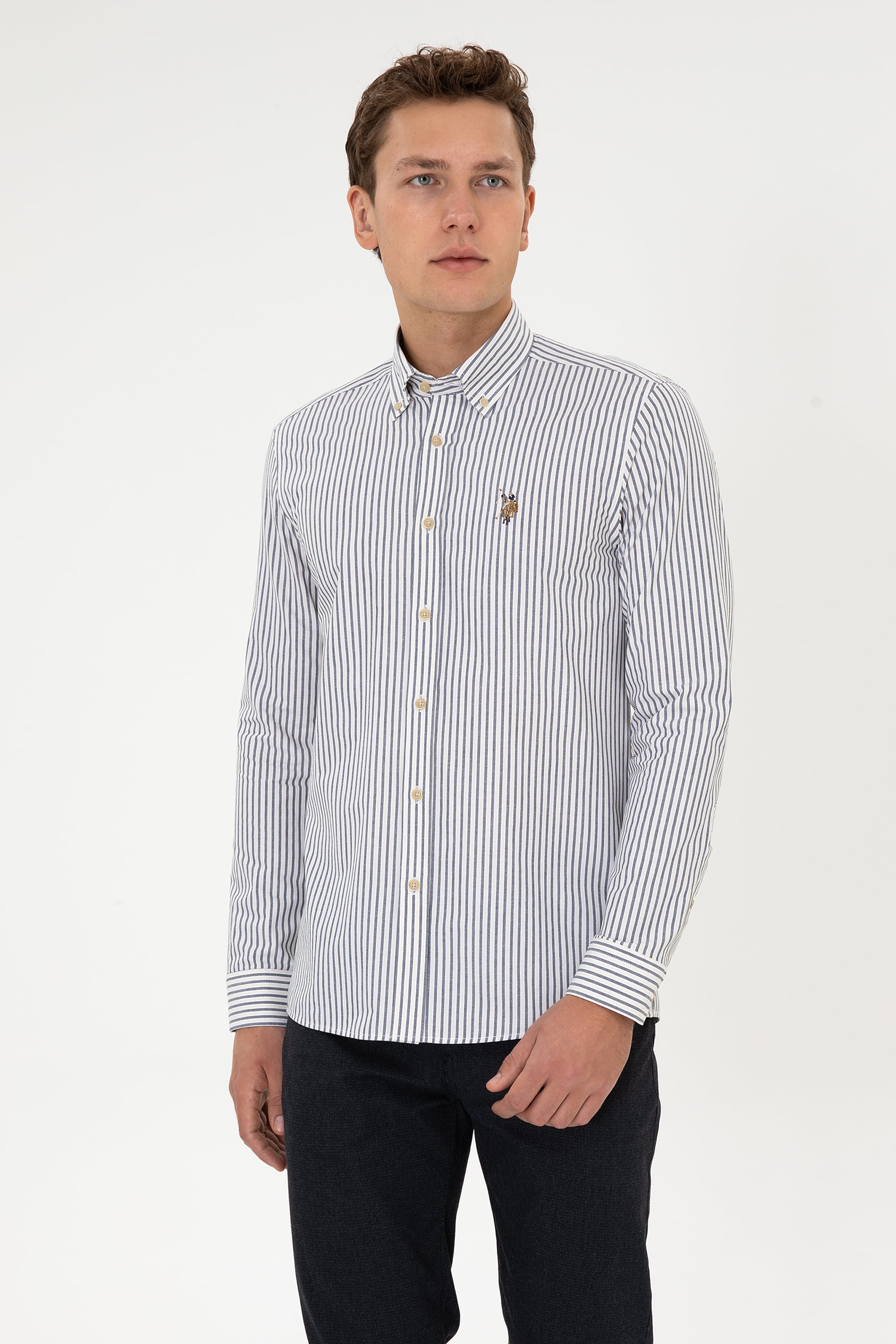 - Erkek Beyaz Uzun Kollu Çizgili Gömlek