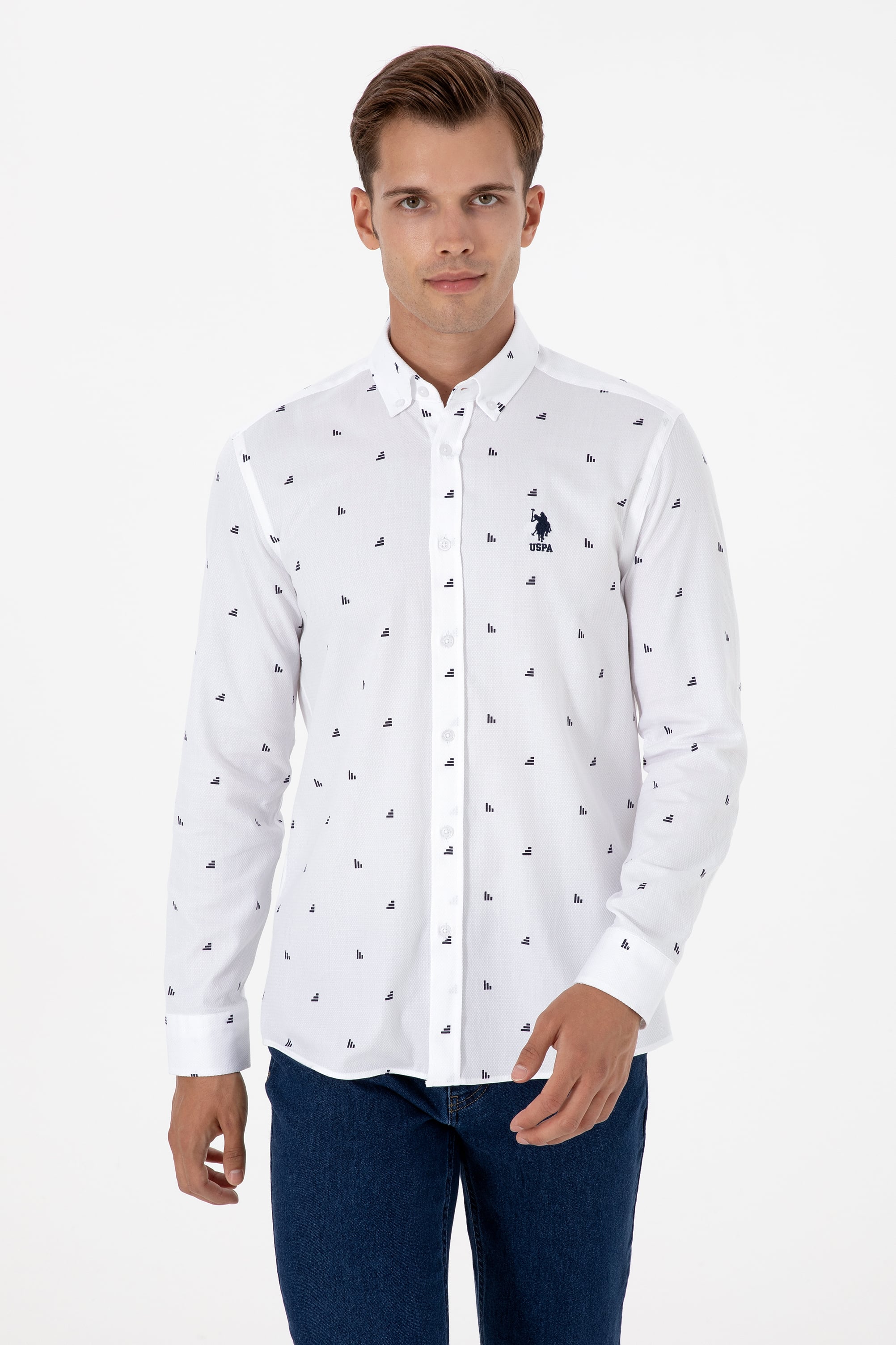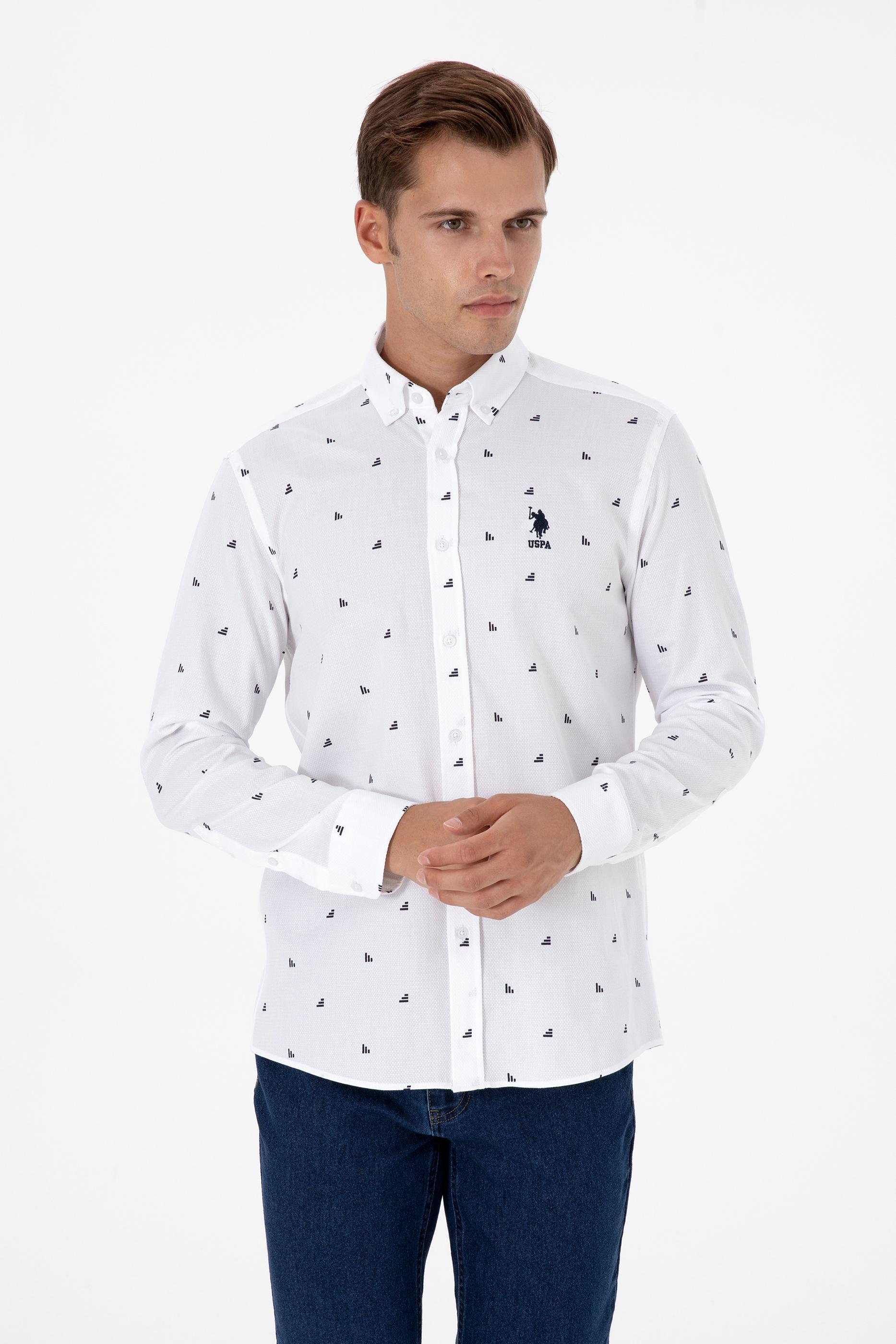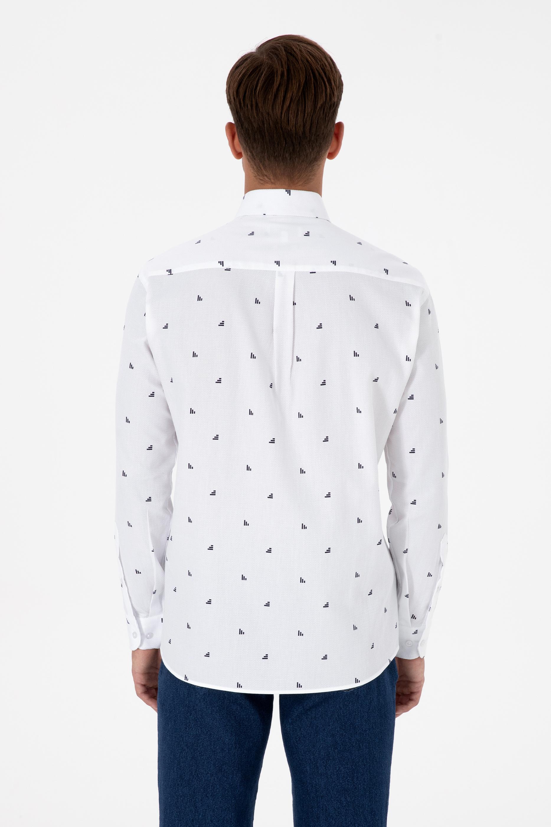 Erkek Beyaz Uzun Kollu Desenli Gömlek