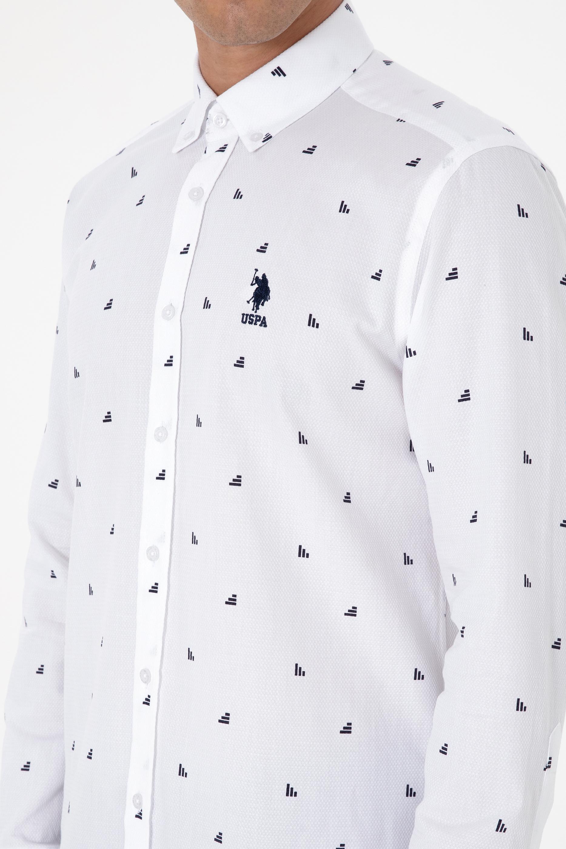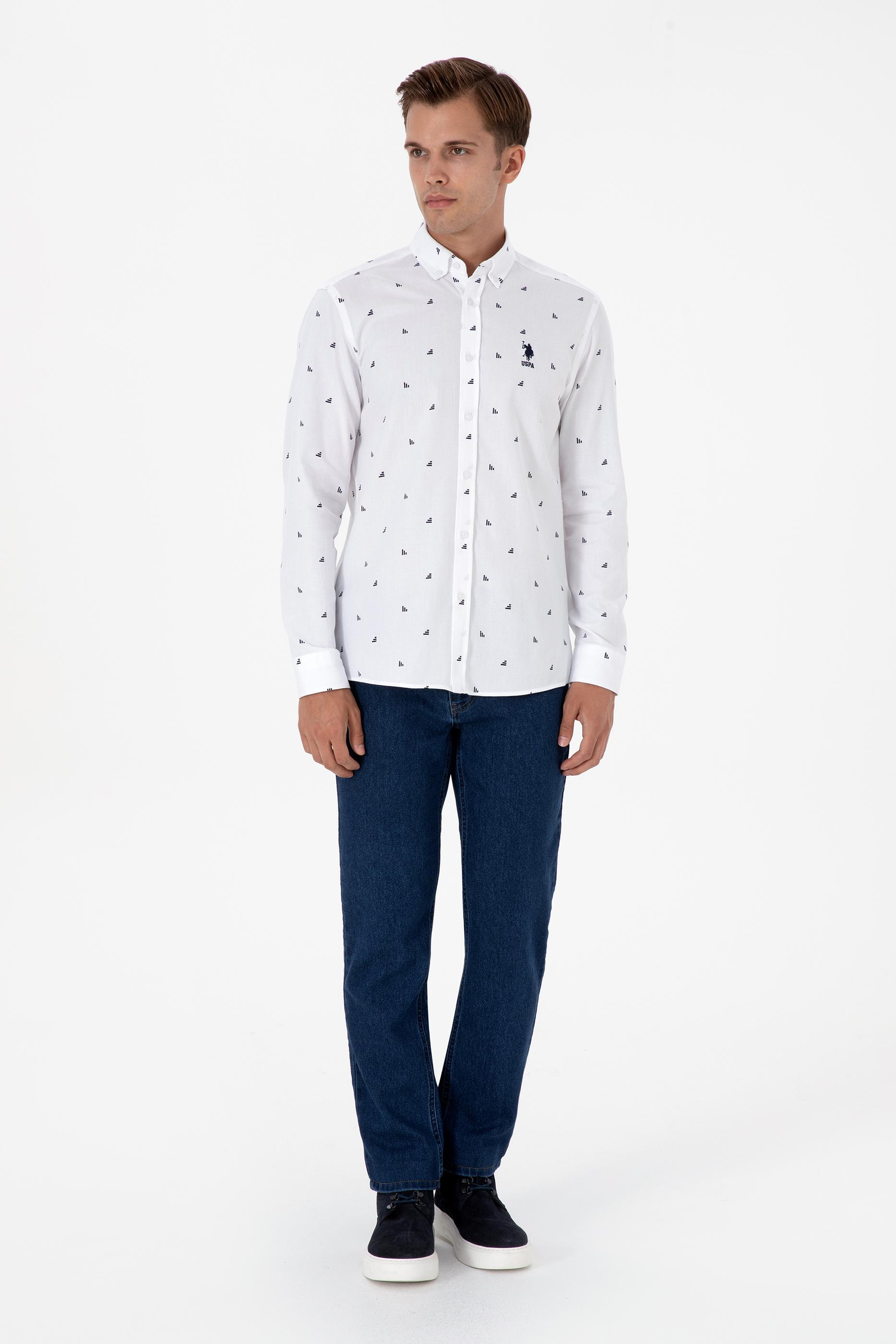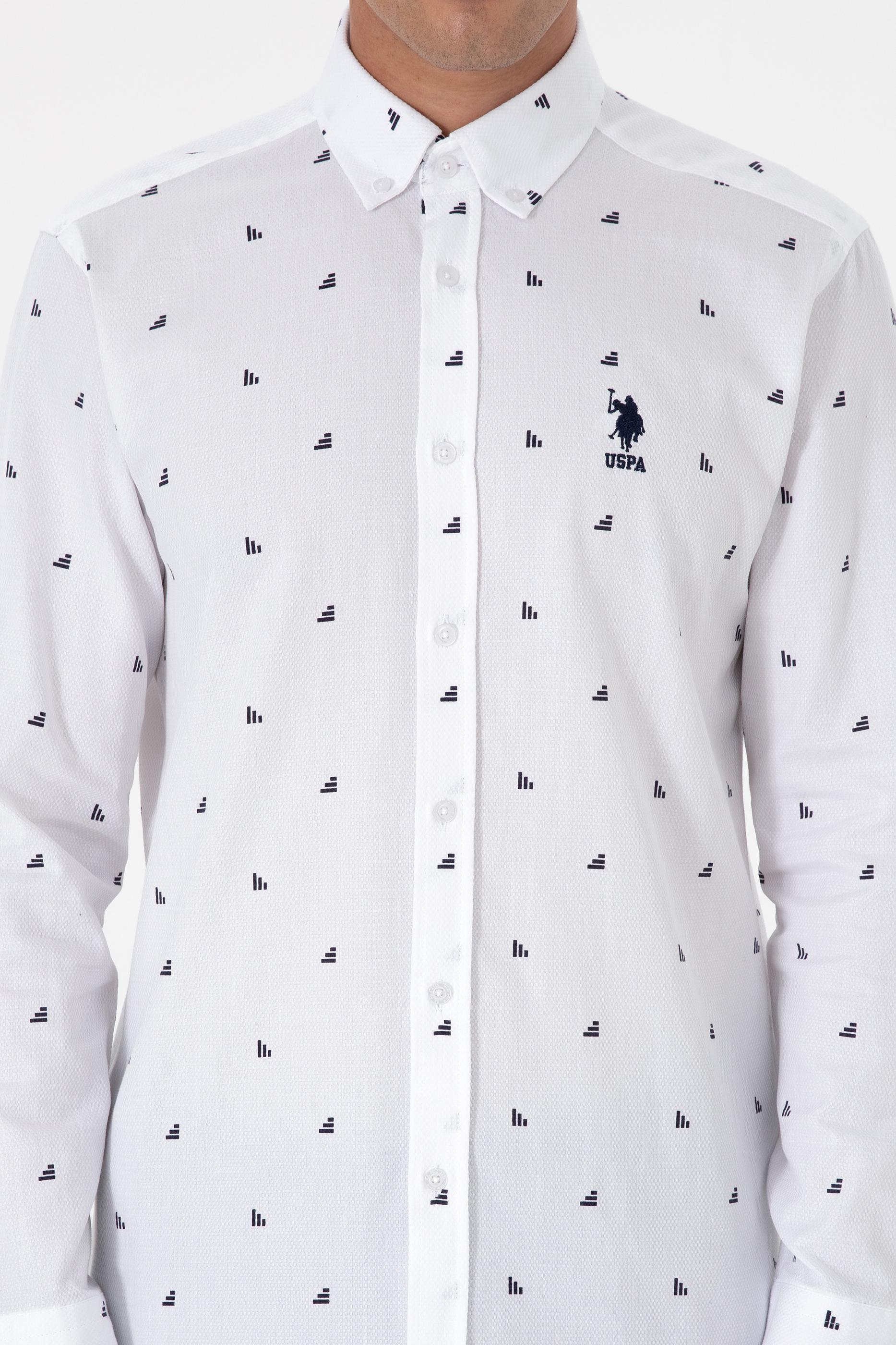 Erkek Beyaz Uzun Kollu Desenli Gömlek
