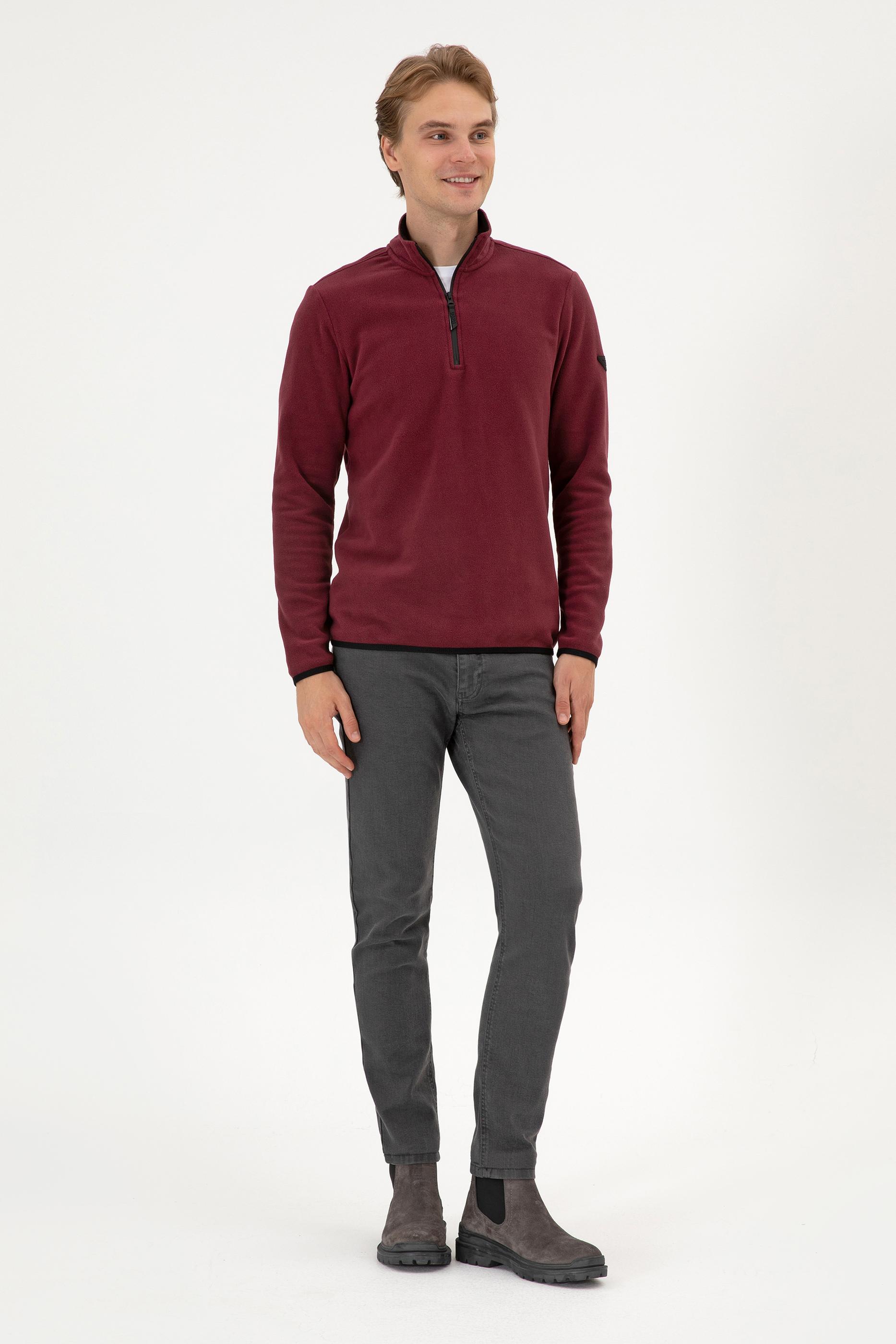 - Erkek Regular Fit Koyu Bordo Polar Yarım Fermuarlı Basic Sweatshirt