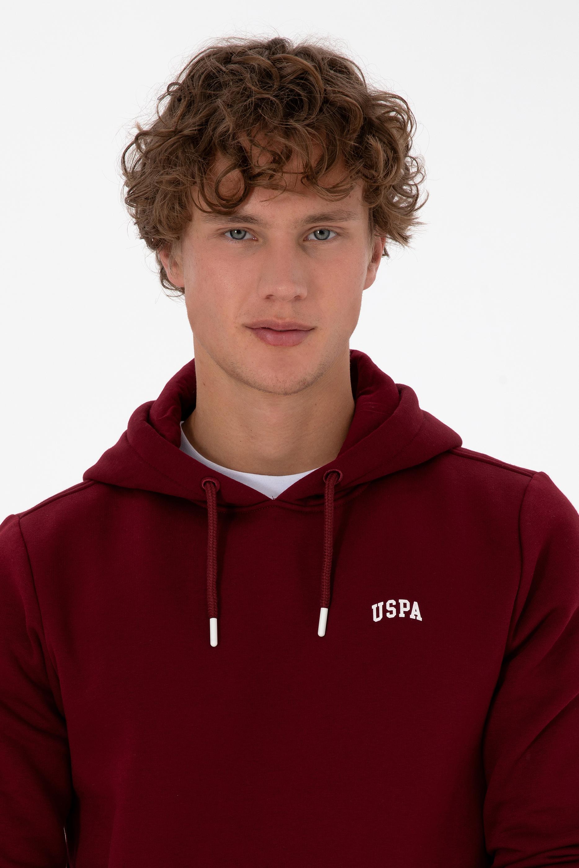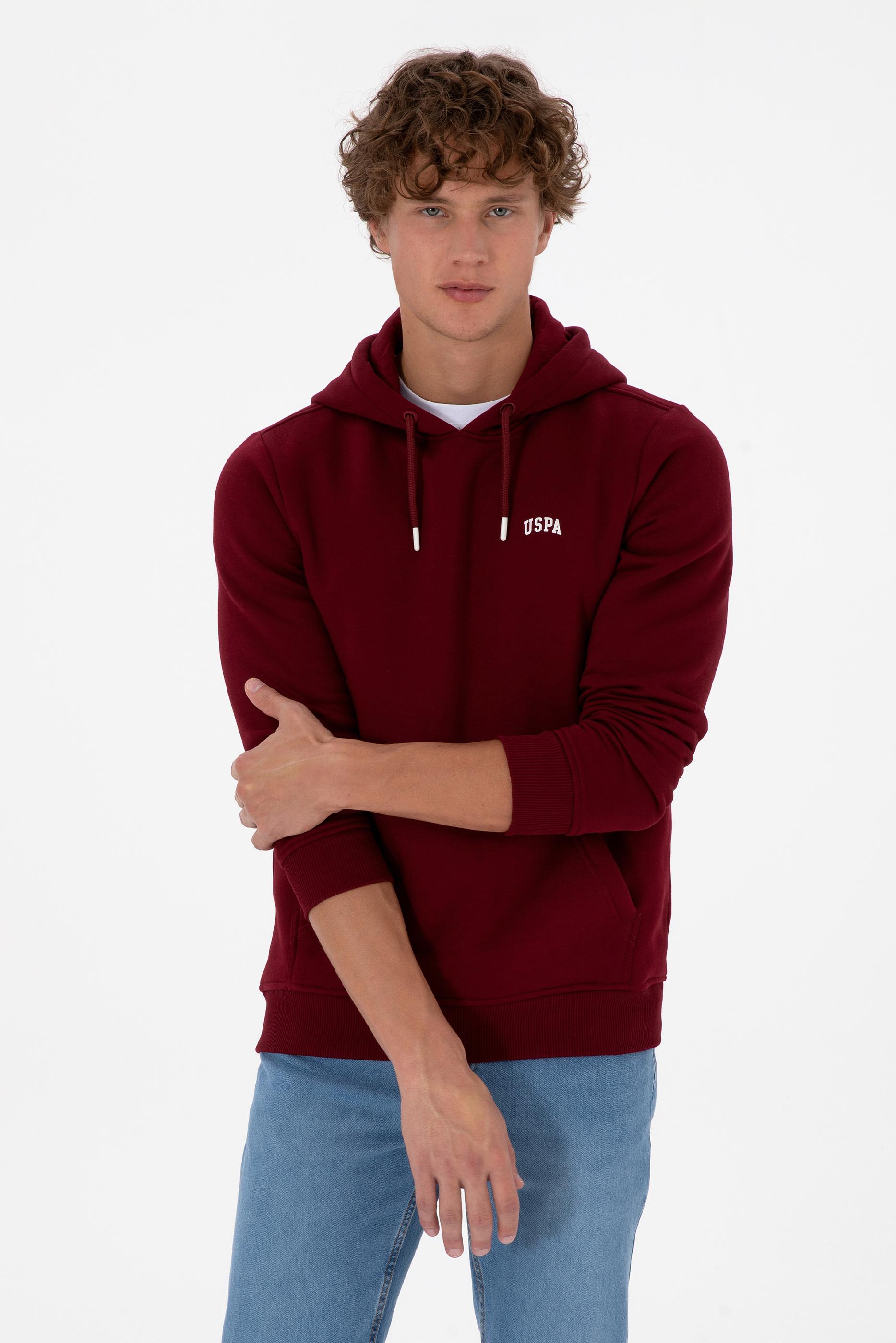 - Erkek Regular Fit Kapüşonlu Şardonlu Bordo Basic Sweatshirt