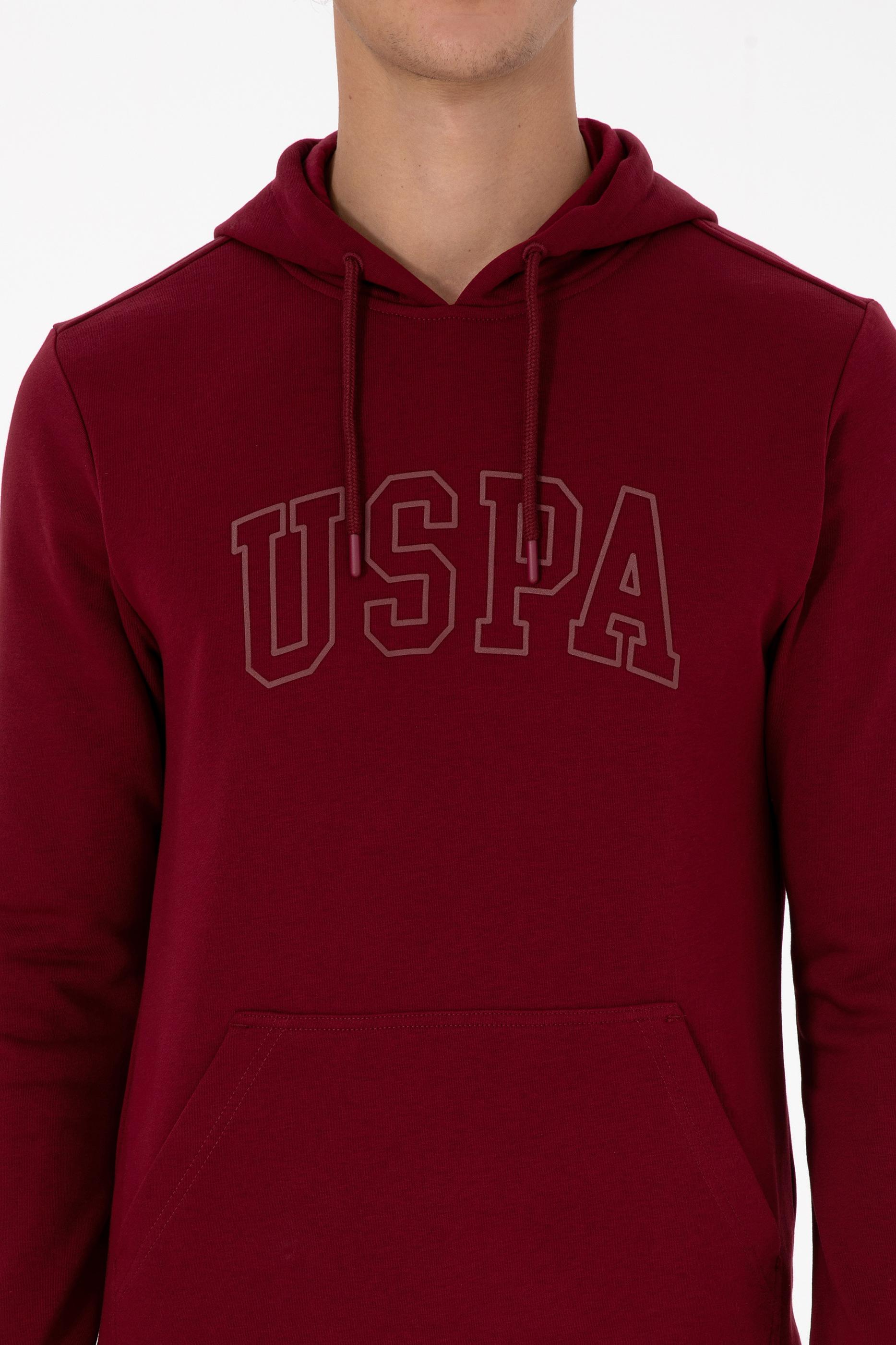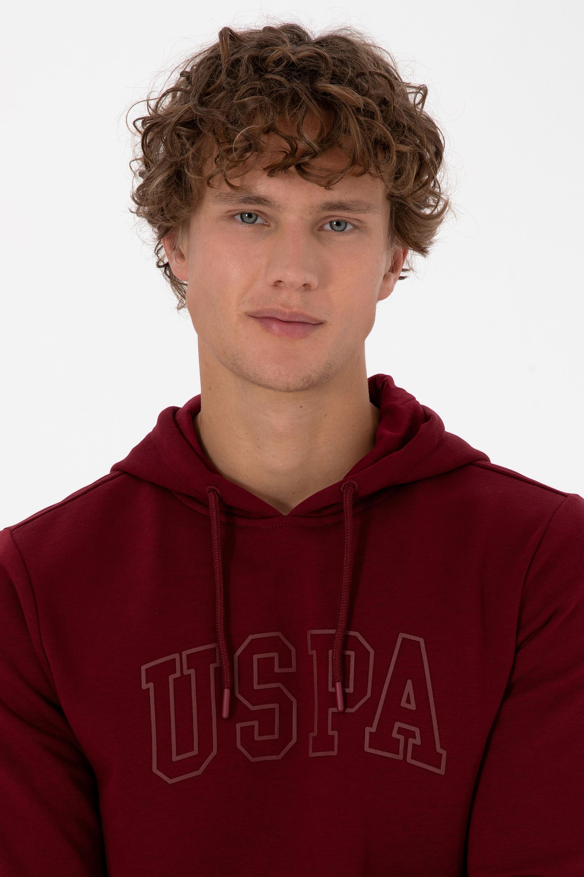 Erkek Regular Fit Kapüşonlu Bordo Basic Sweatshirt