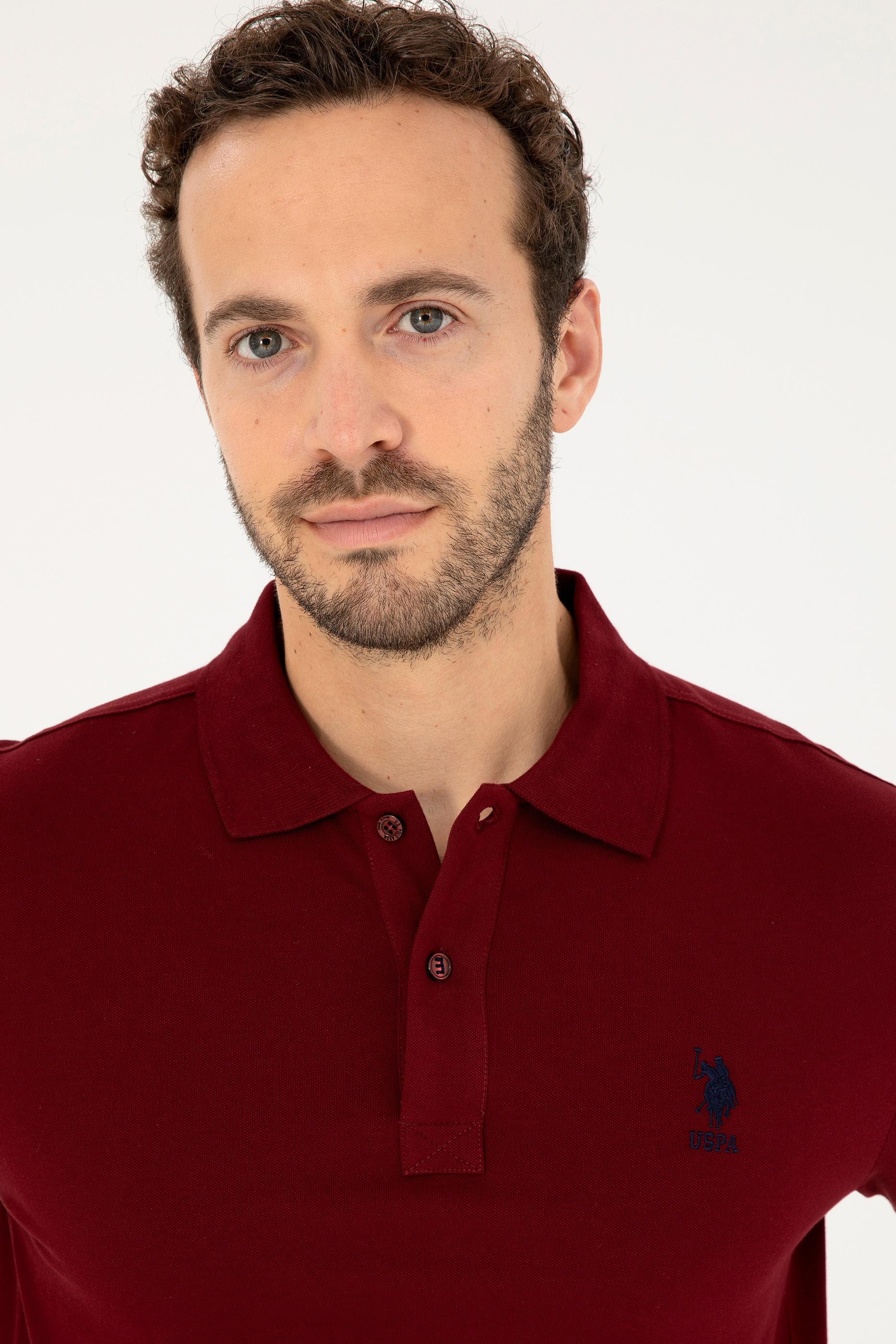 - Erkek Slim Fit Polo Yaka Bordo Basic Tişört