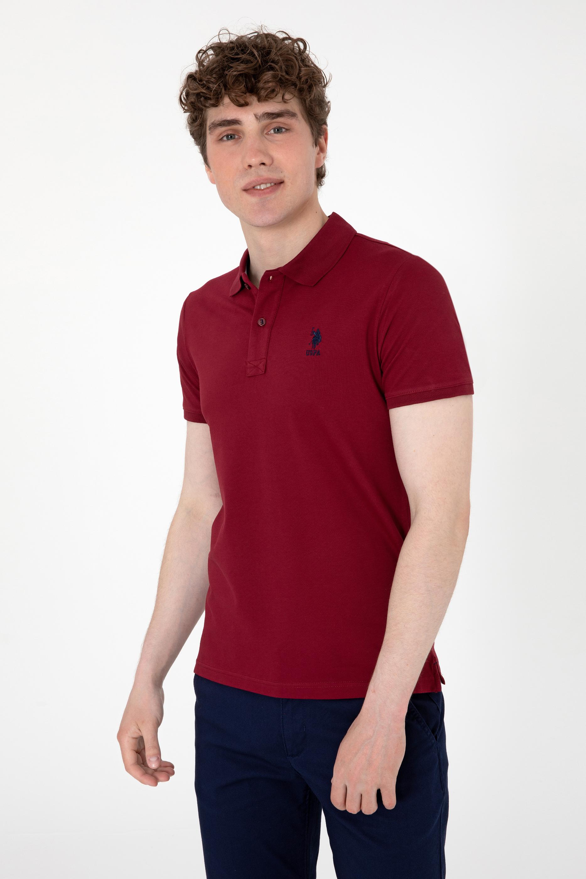 Erkek Slim Fit Polo Yaka Bordo Basic Tişört