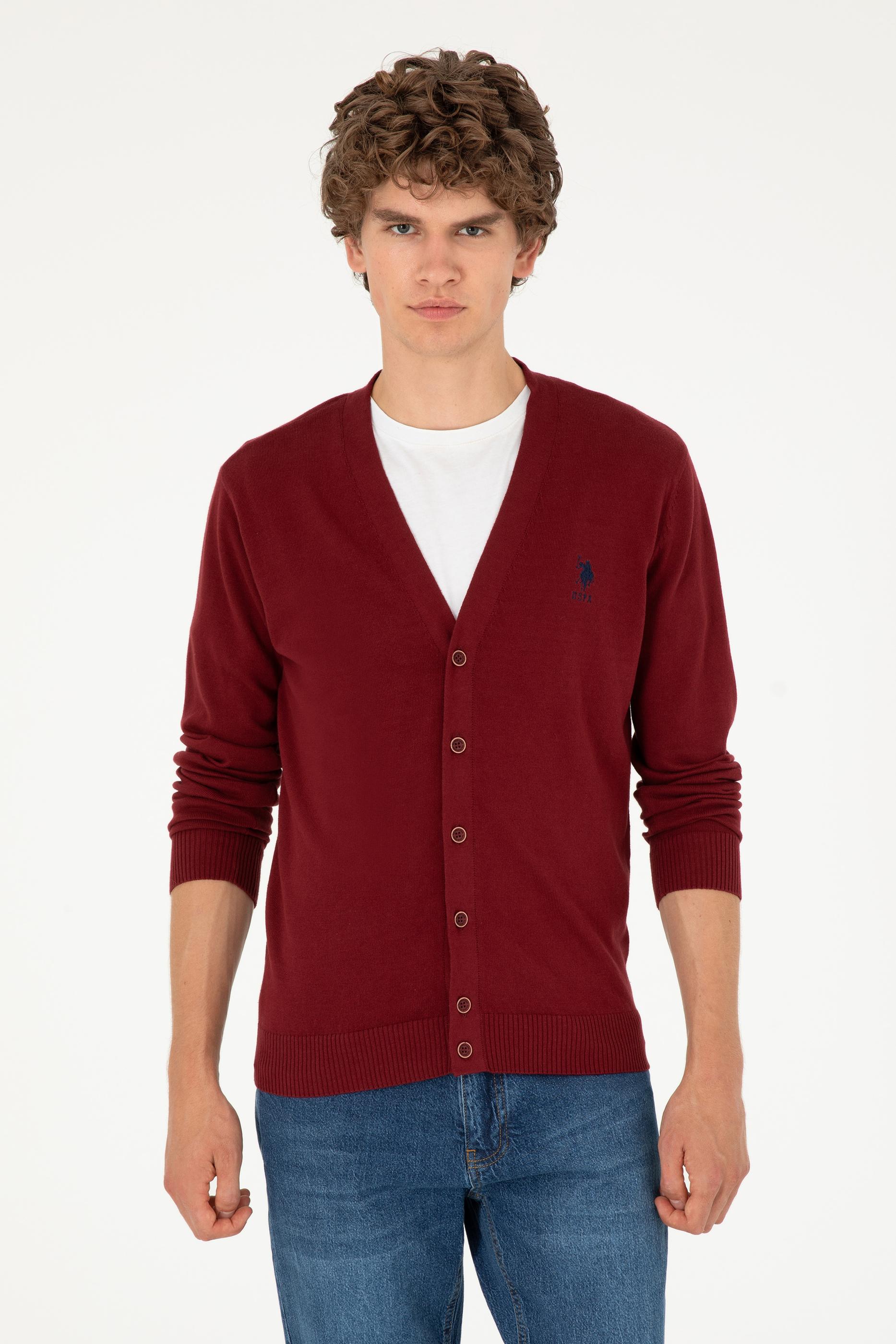Erkek Bordo Basic Triko Hırka