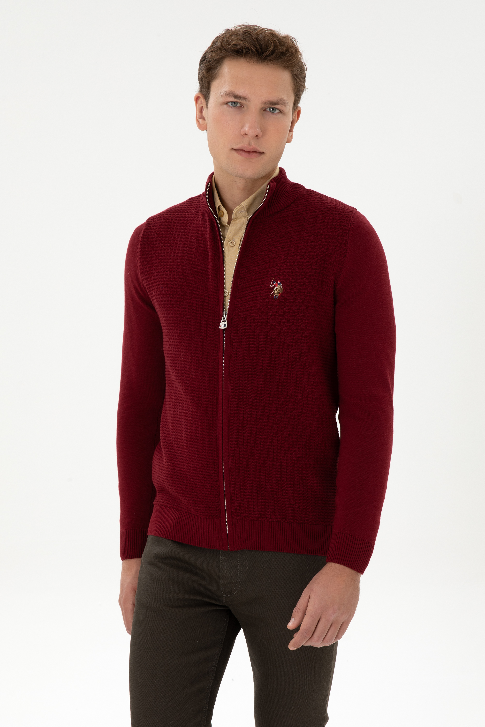 - Erkek Bordo Basic Triko Hırka