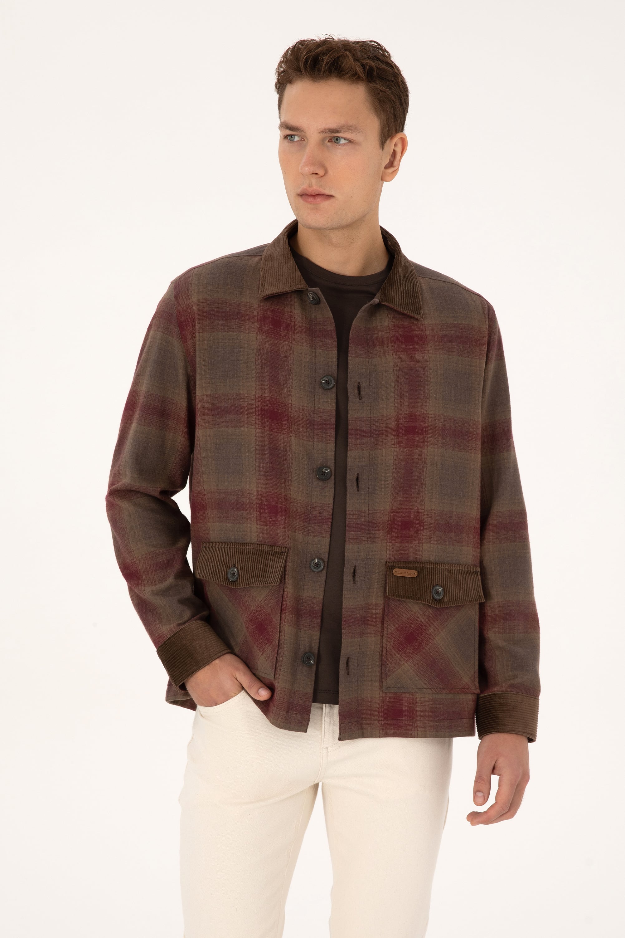 Erkek Bordo Kapüşonlu Gömlek - 50308360024