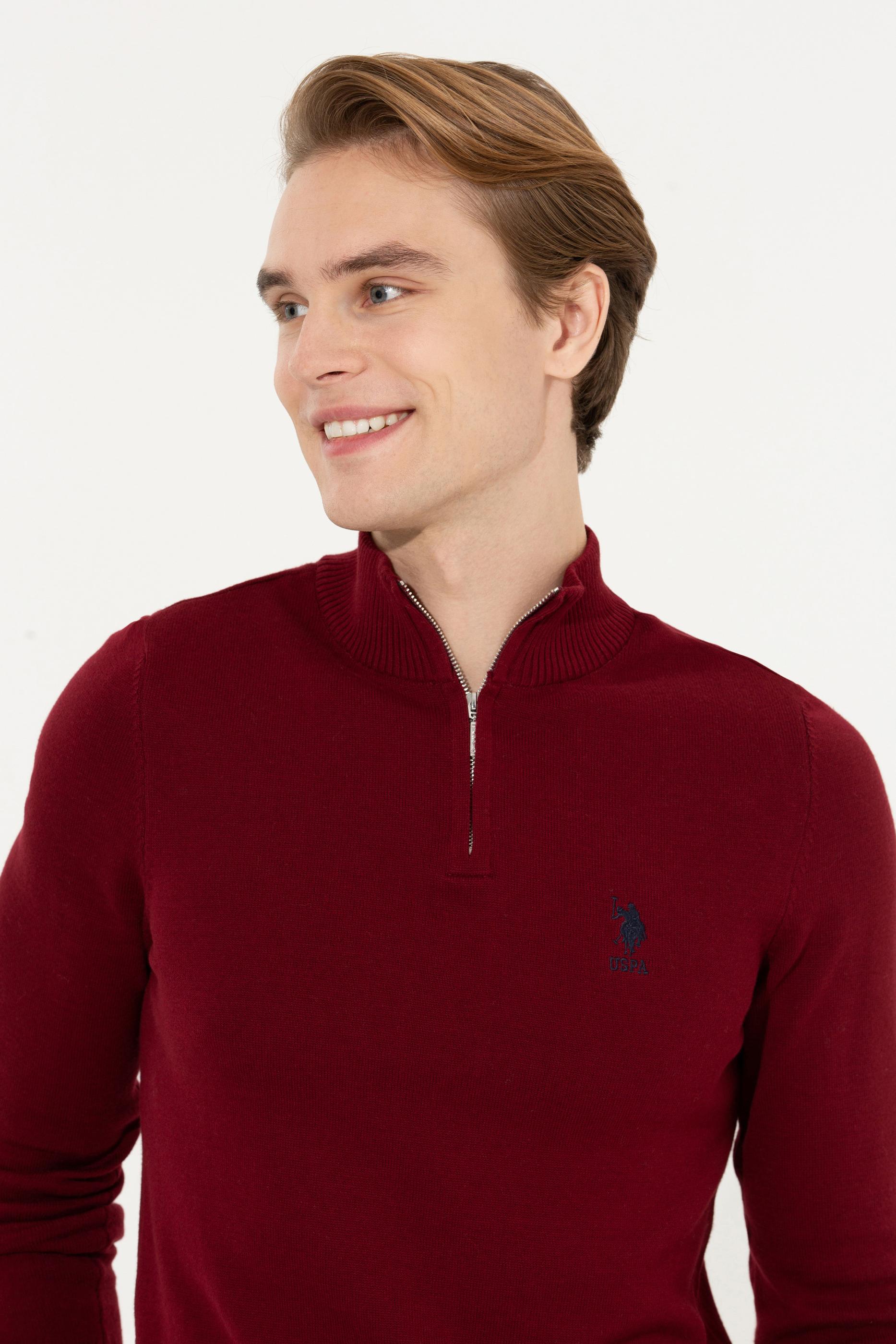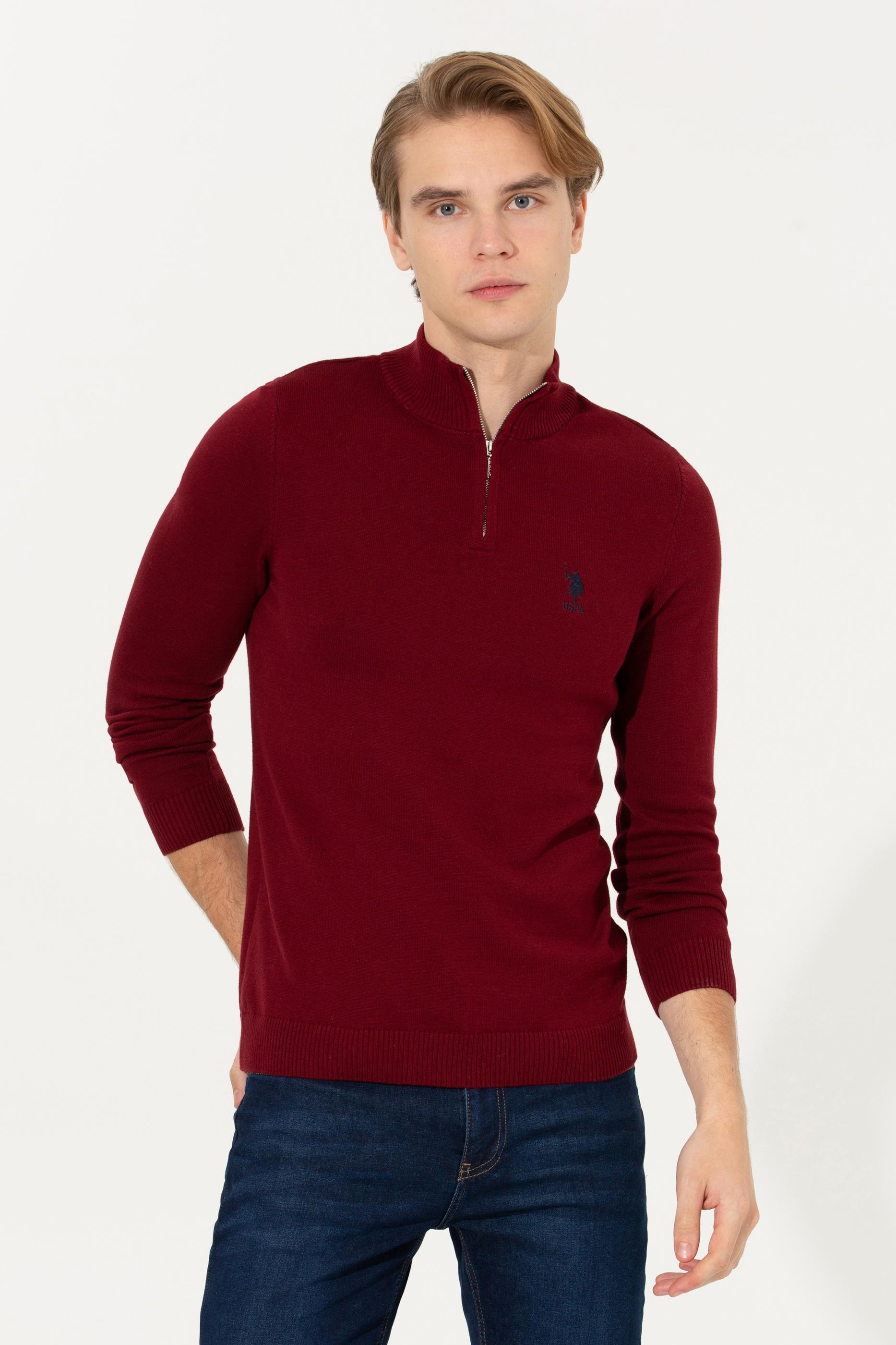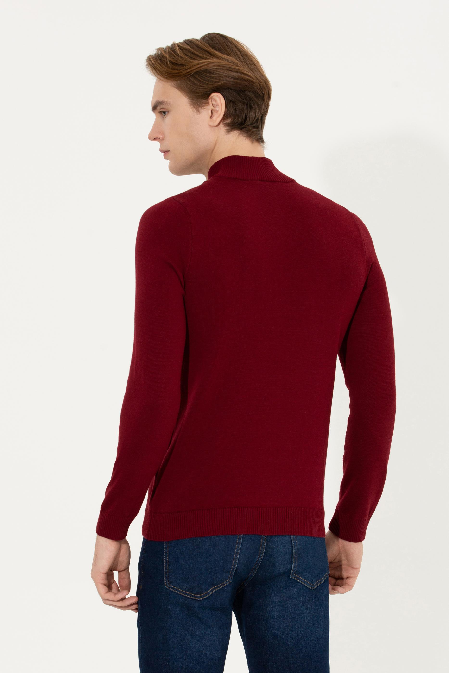 Erkek Bordo Dik Yaka Triko Kazak