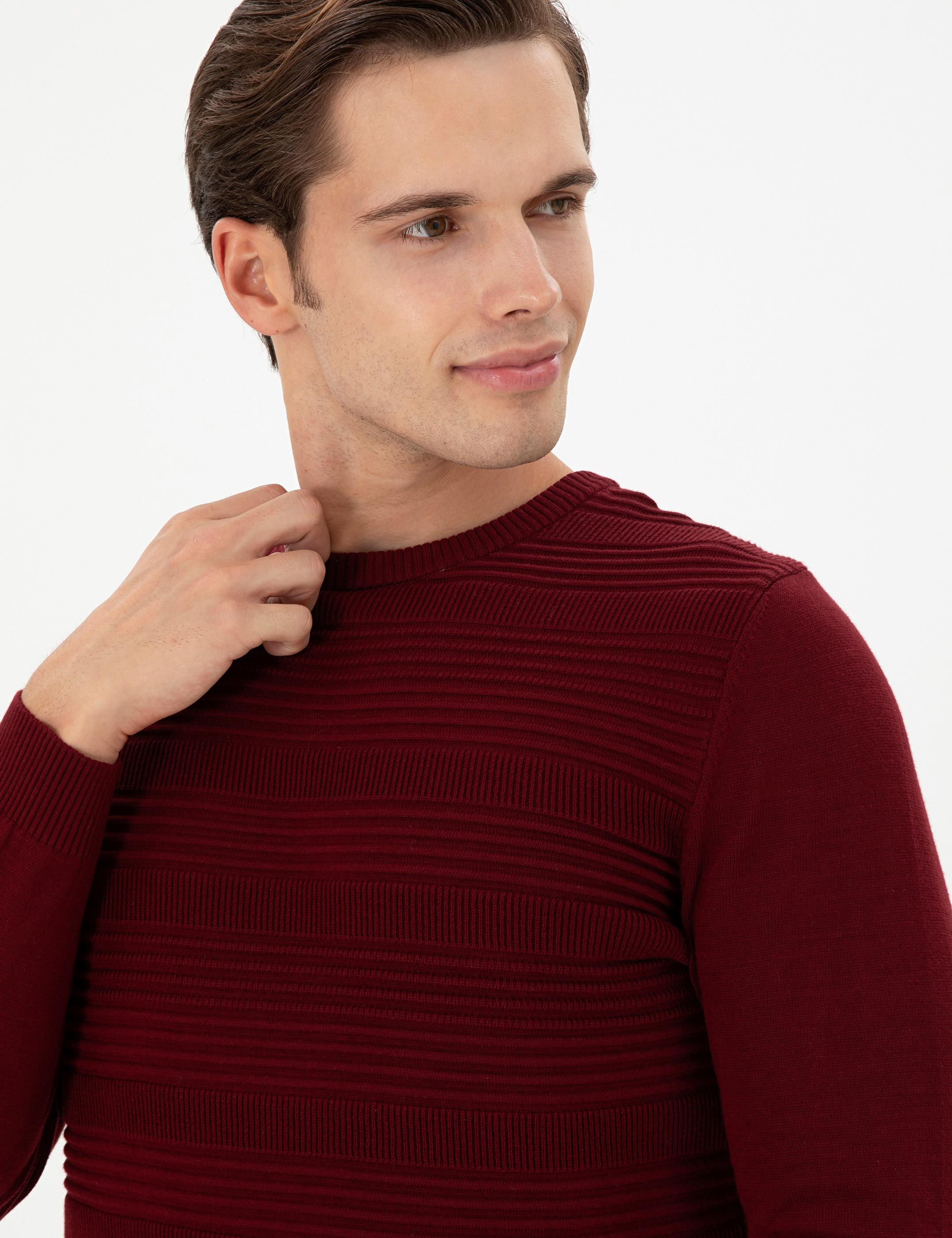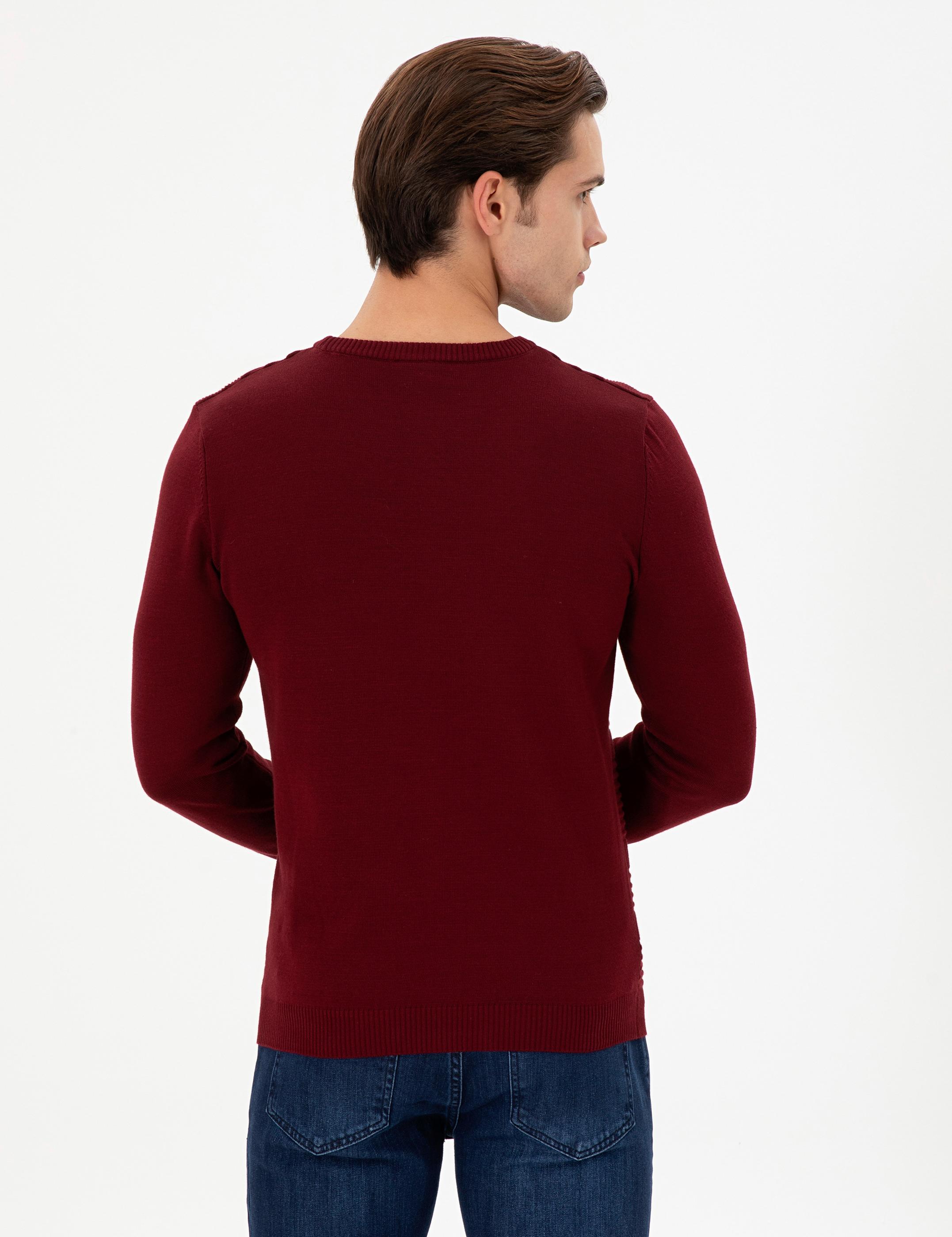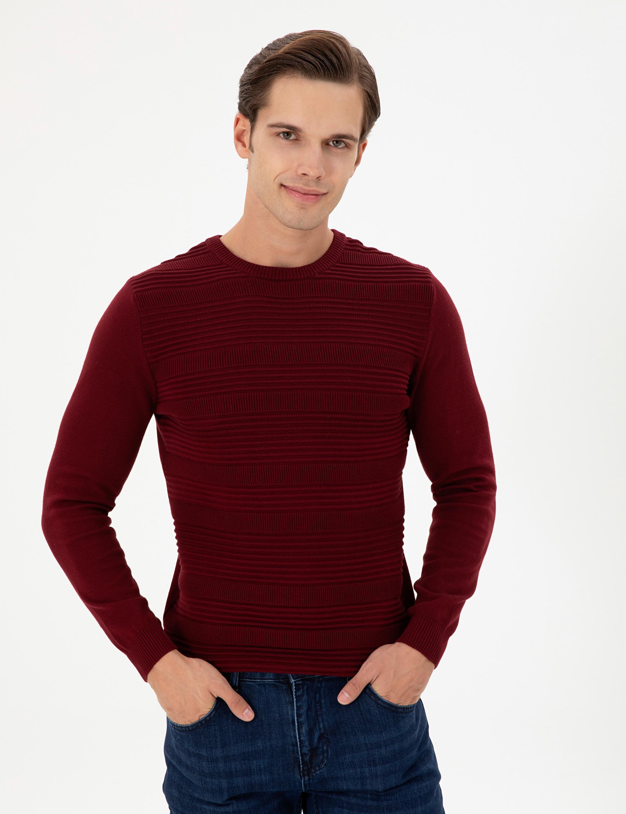 Erkek Slim Fit Bisiklet Yaka Bordo Kazak