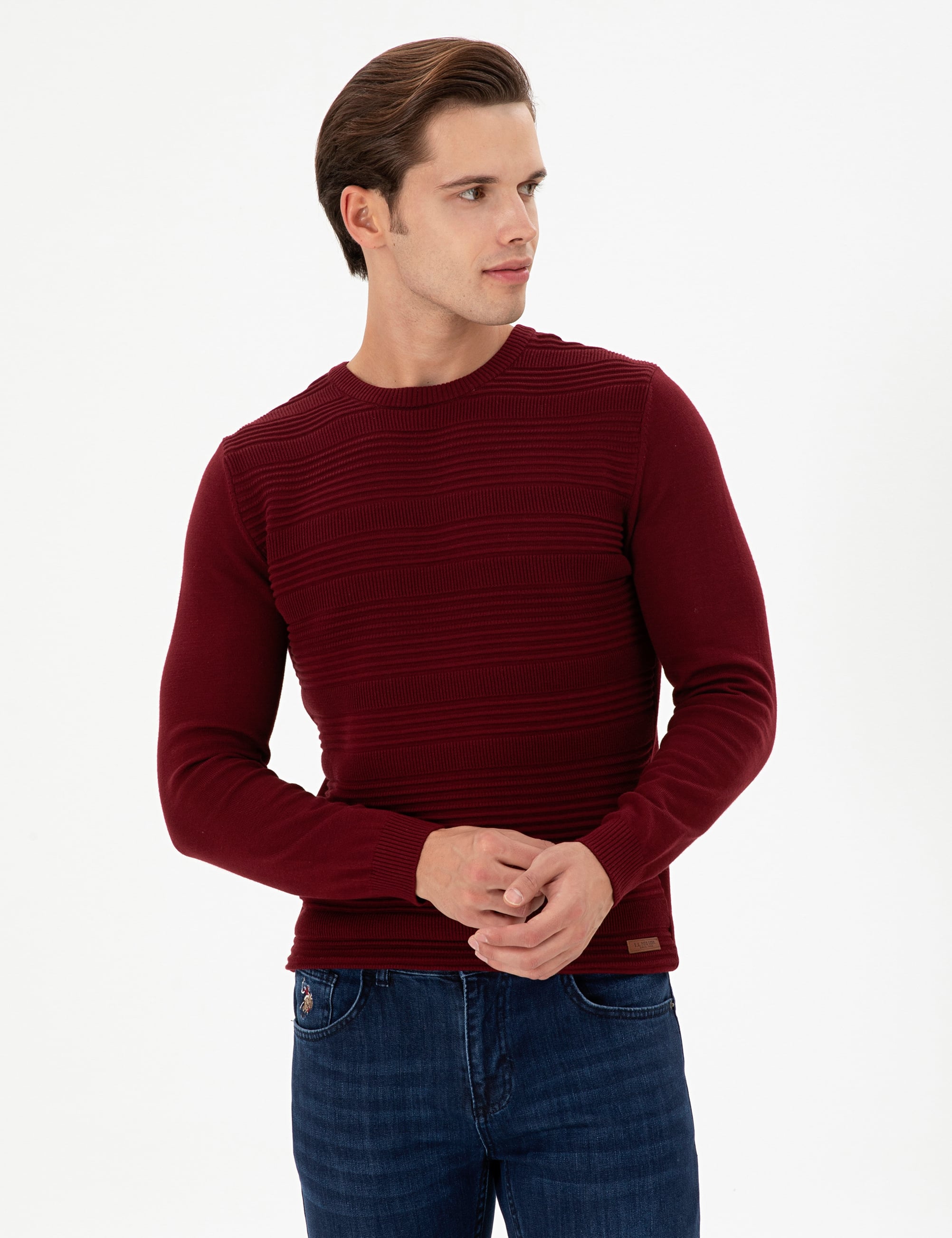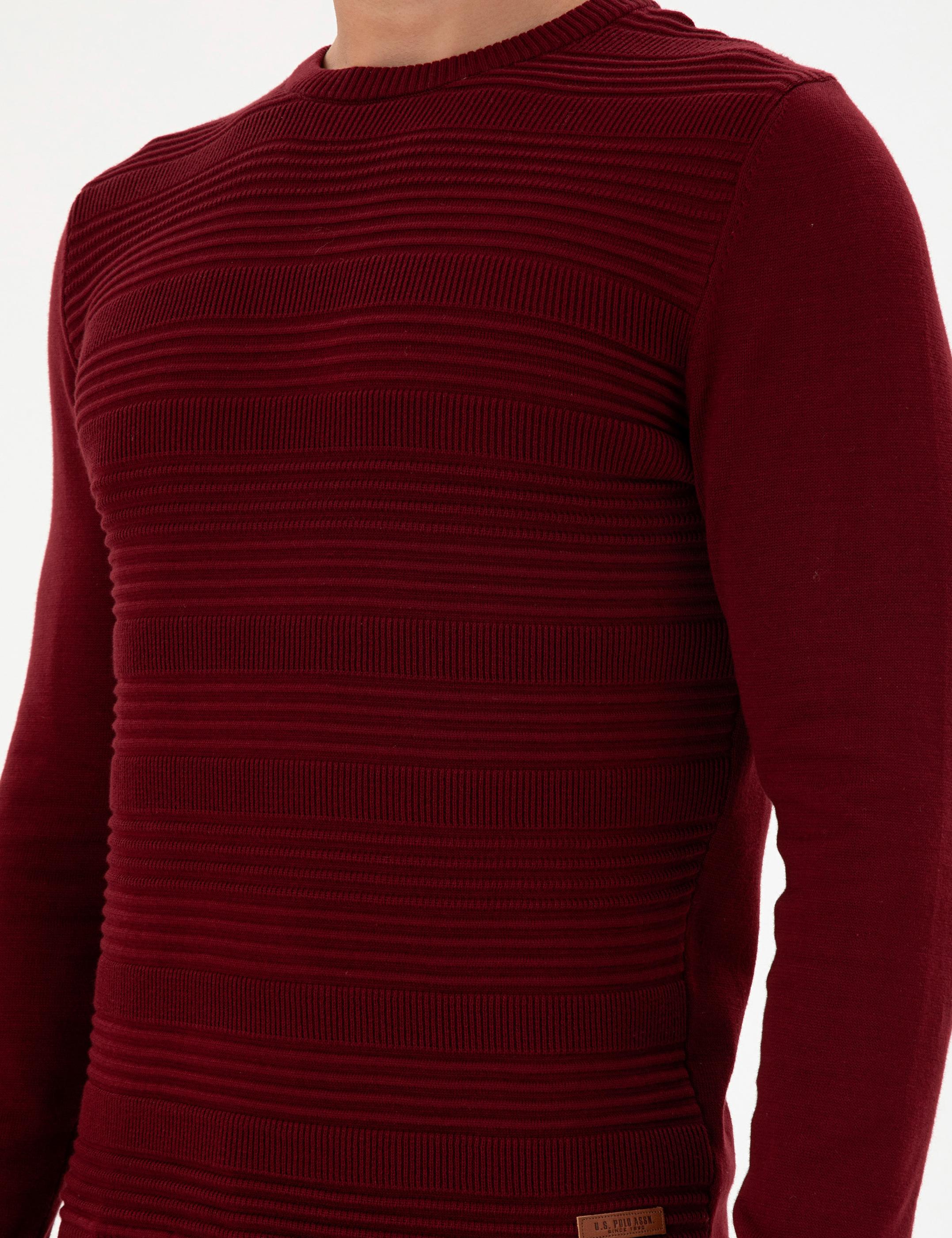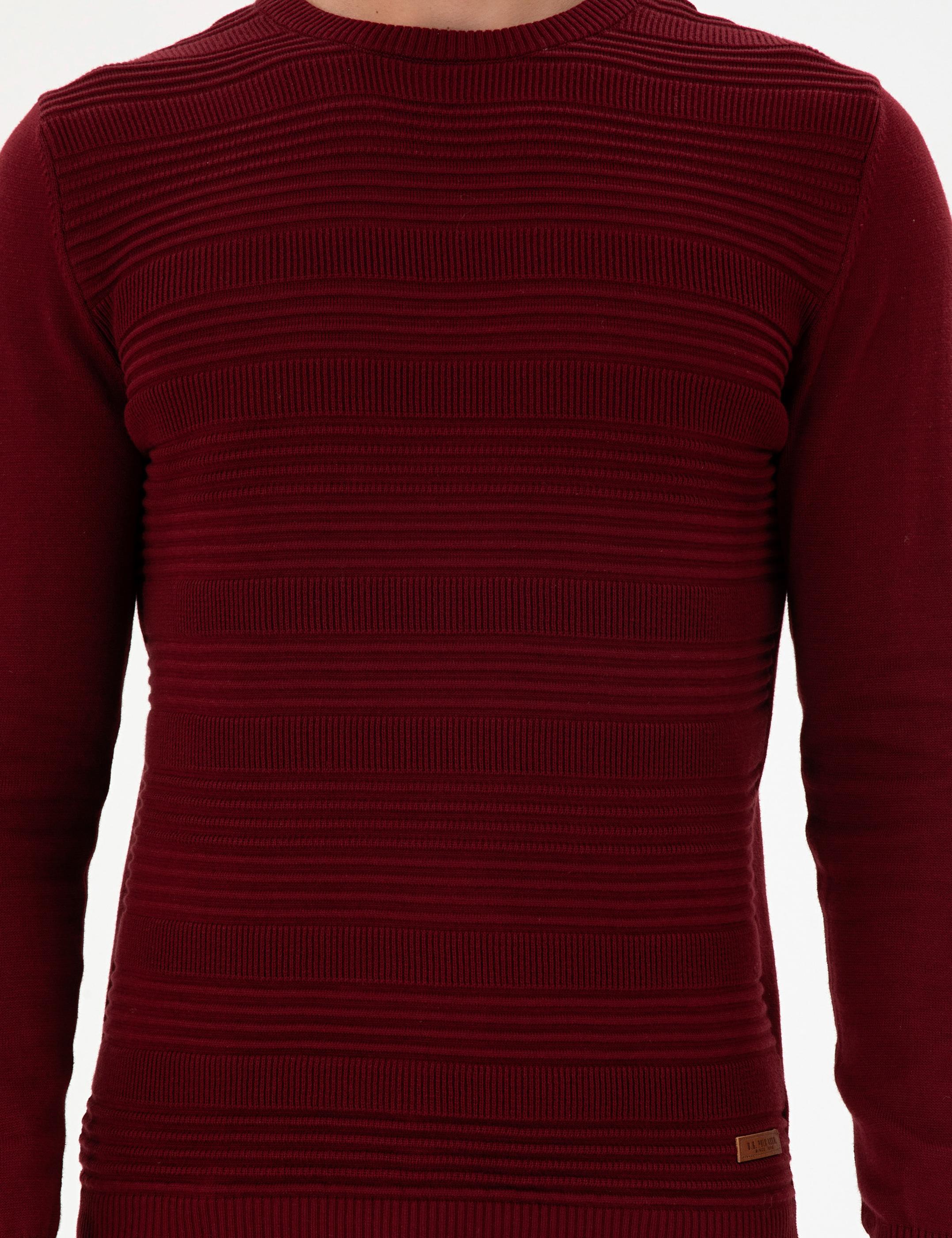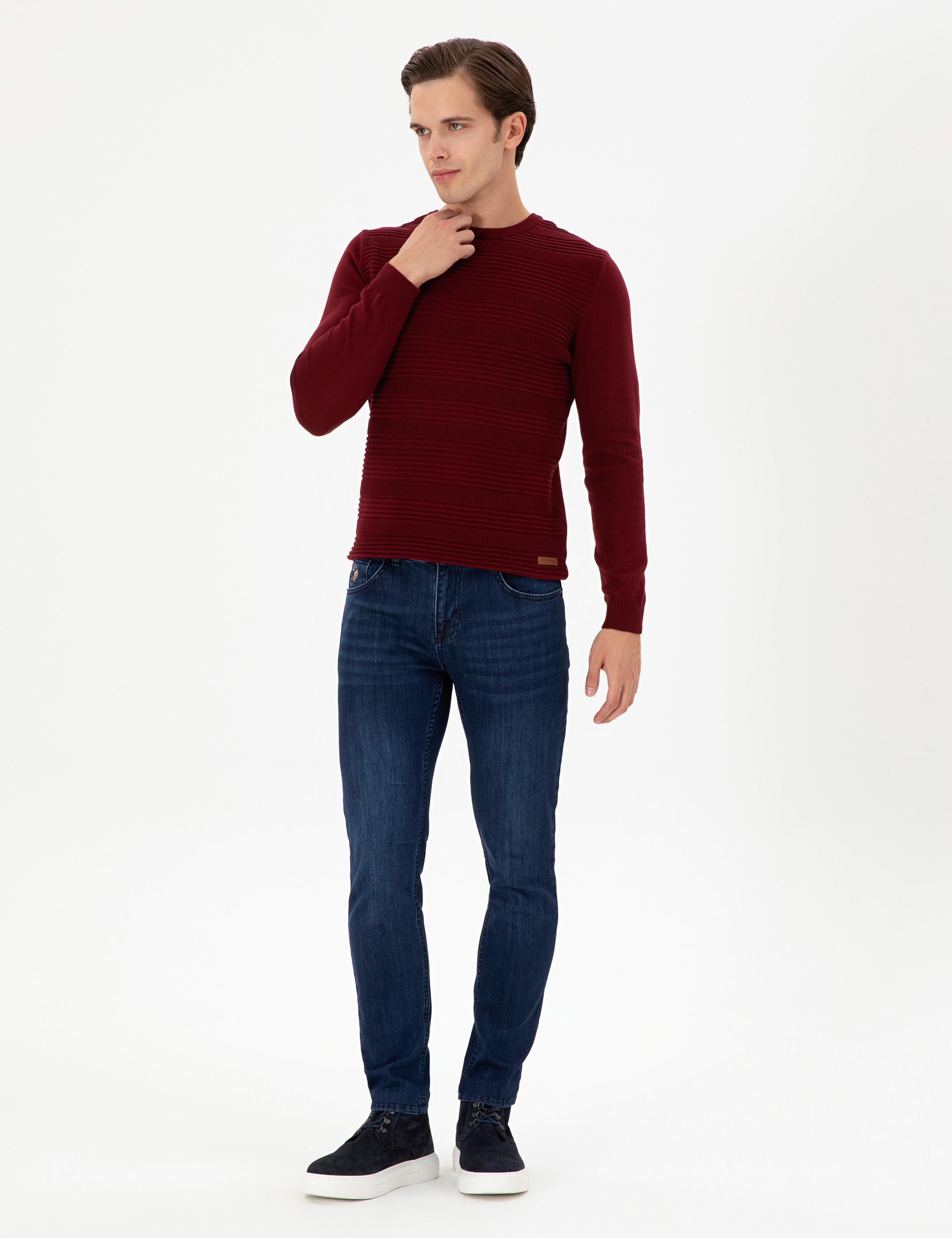 Erkek Slim Fit Bisiklet Yaka Bordo Kazak