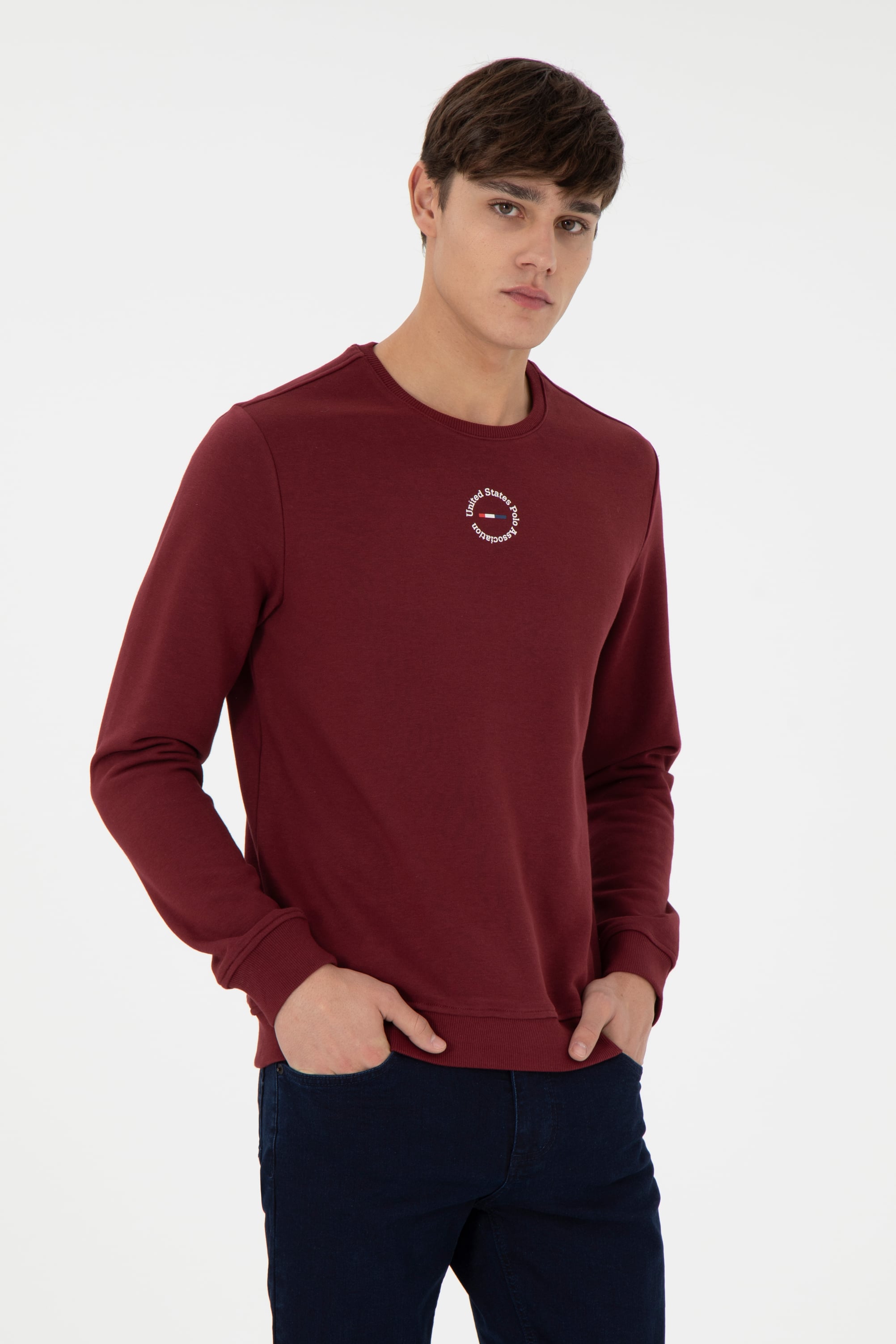 Erkek Regular Fit Bisiklet Yaka Bordo Sweatshirt