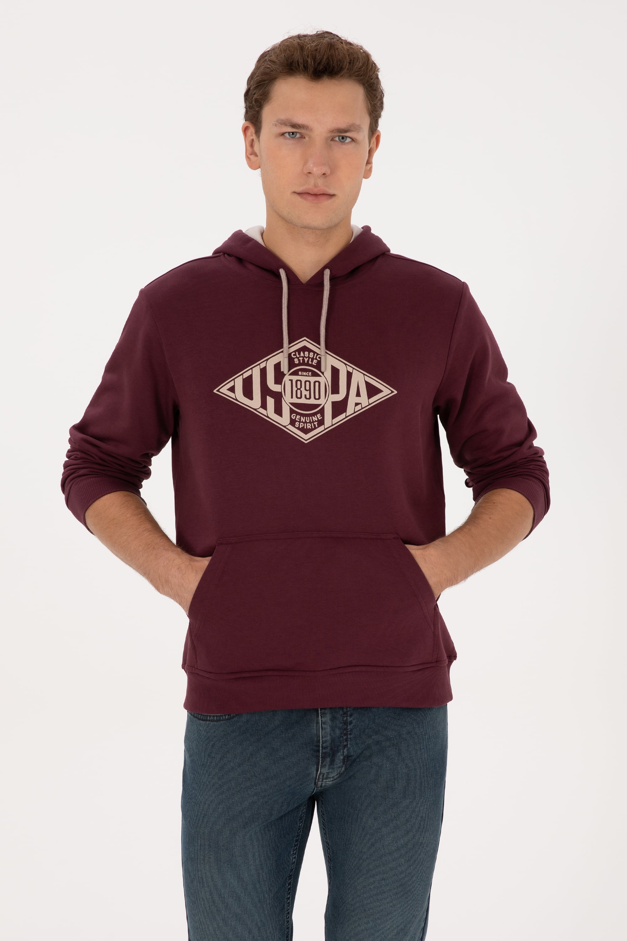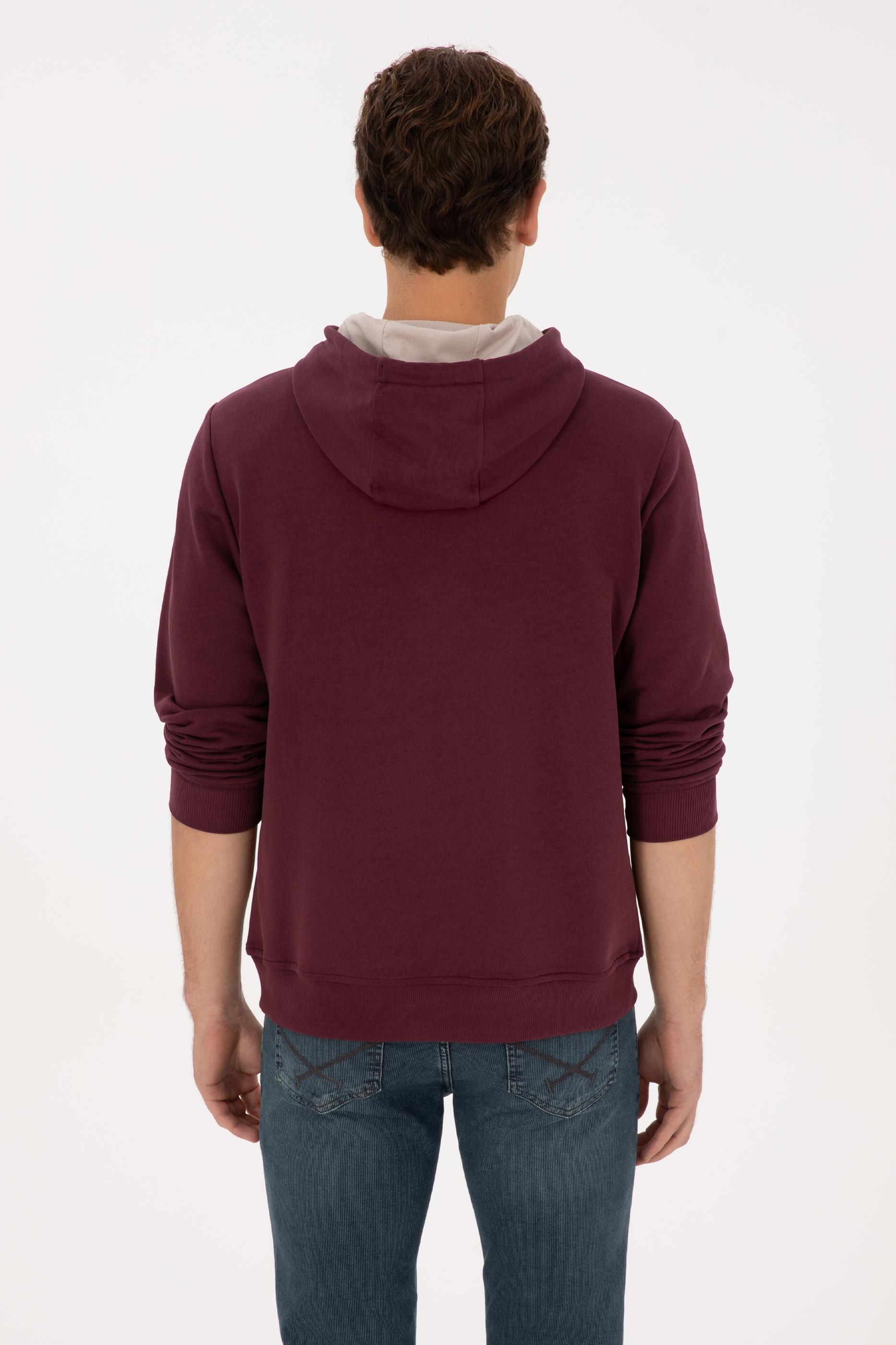 Erkek Regular Fit Kapüşonlu Bordo Sweatshirt