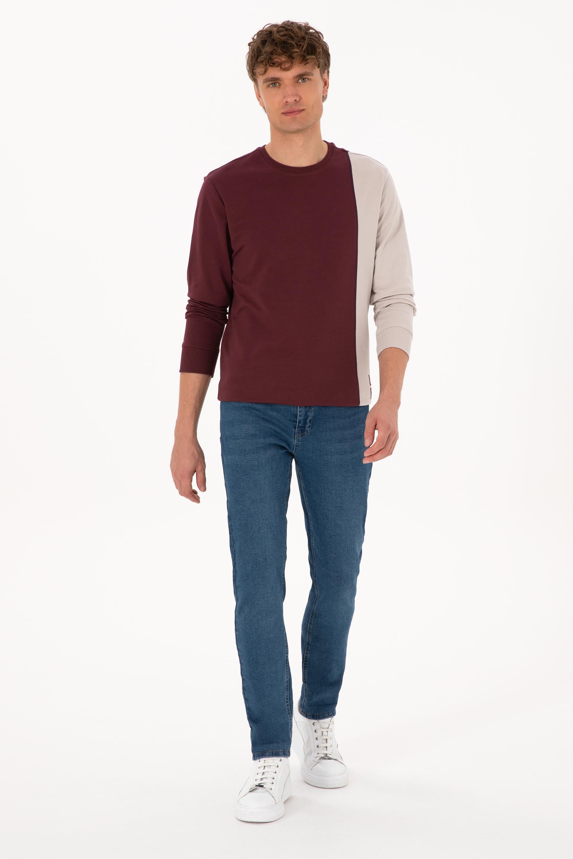 Erkek Regular Fit Bisiklet Yaka Bordo İnce Sweatshirt