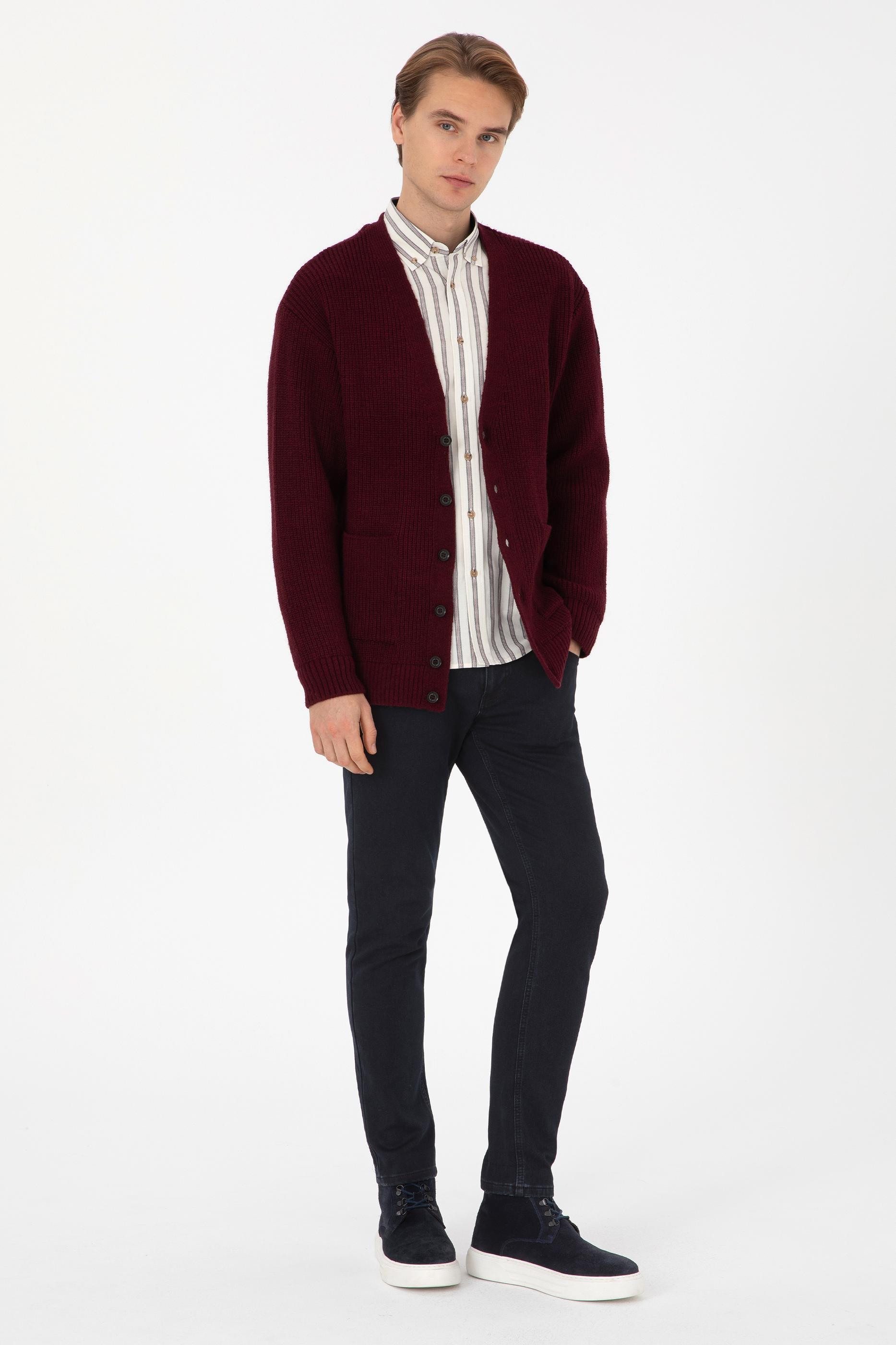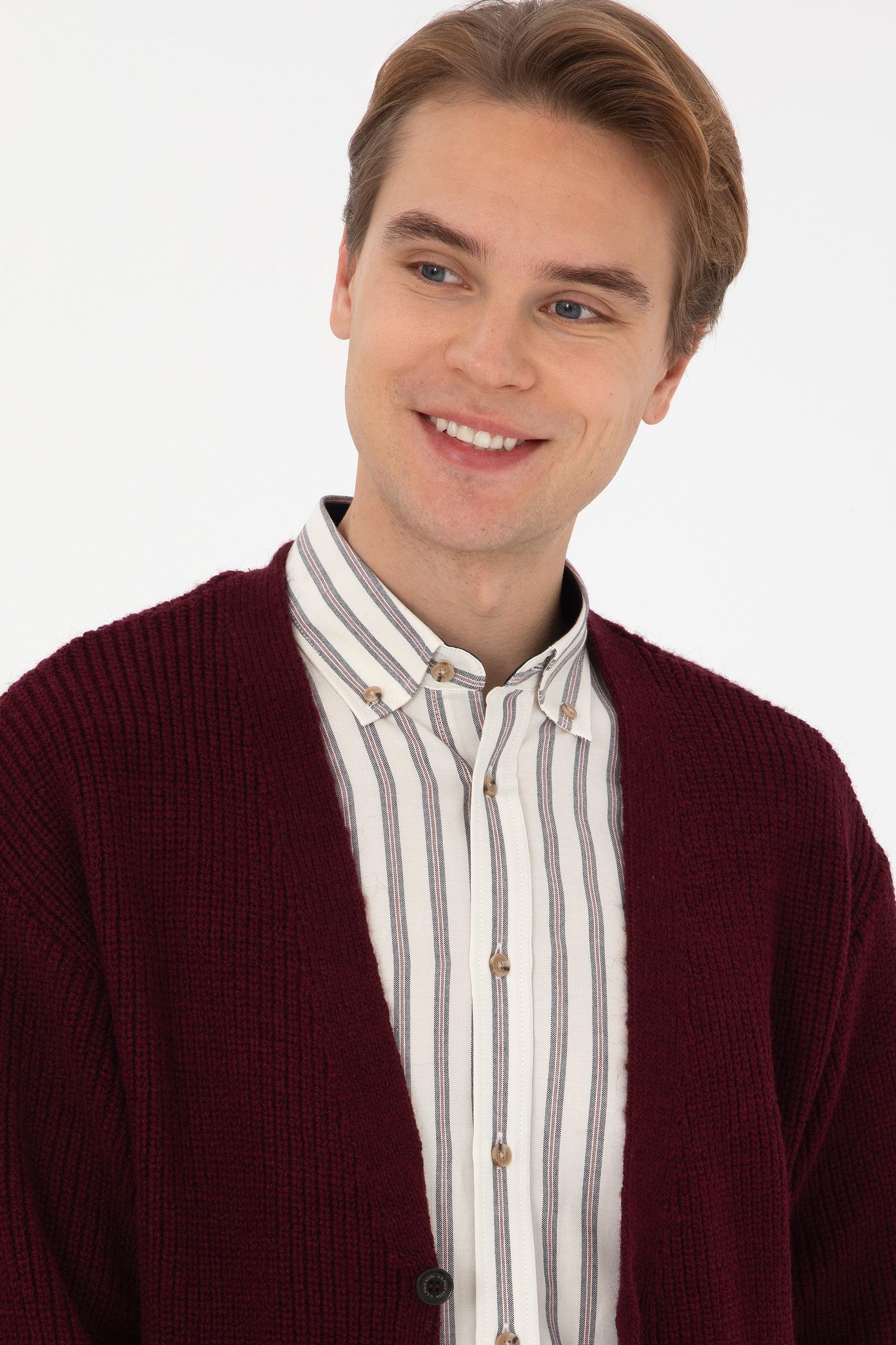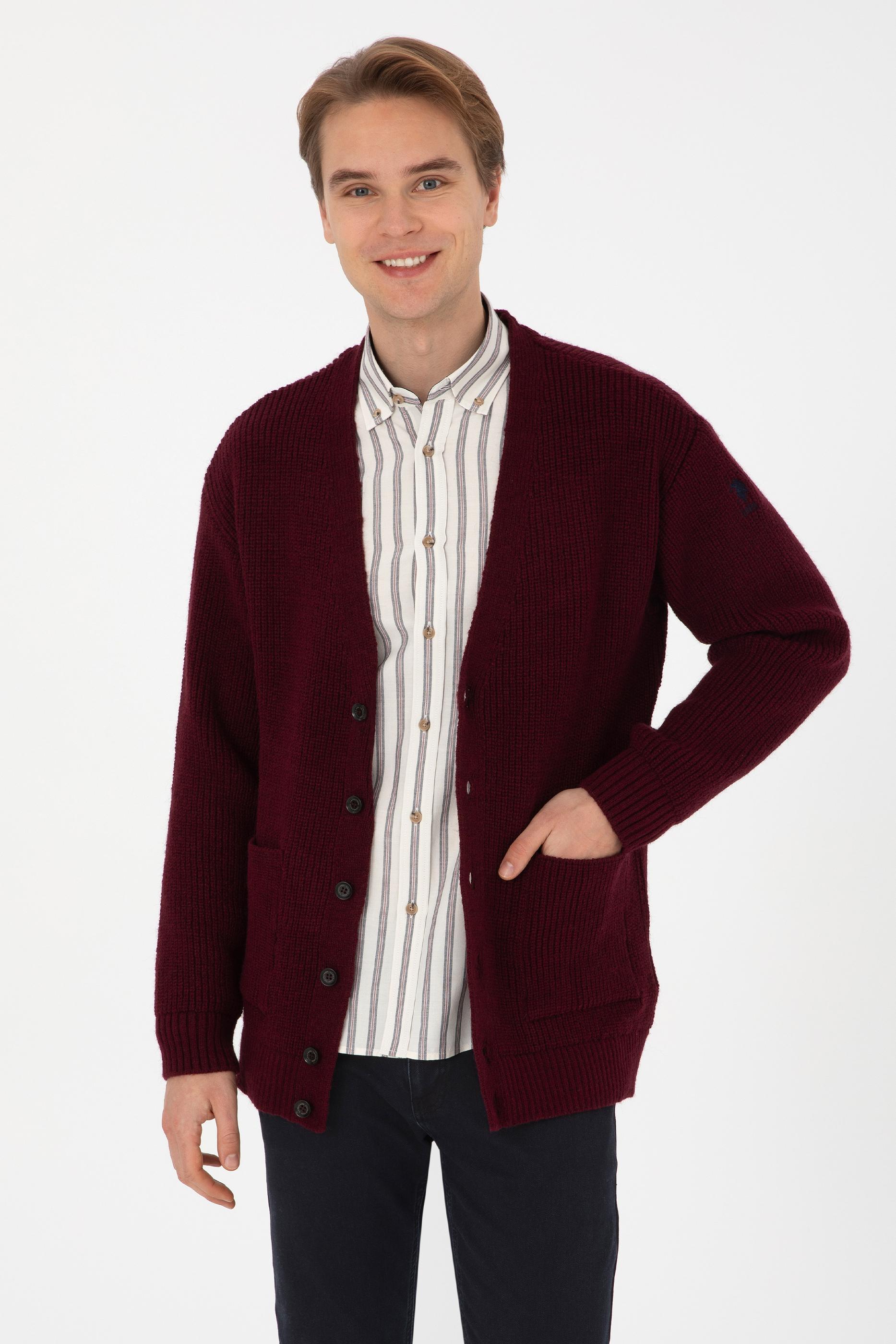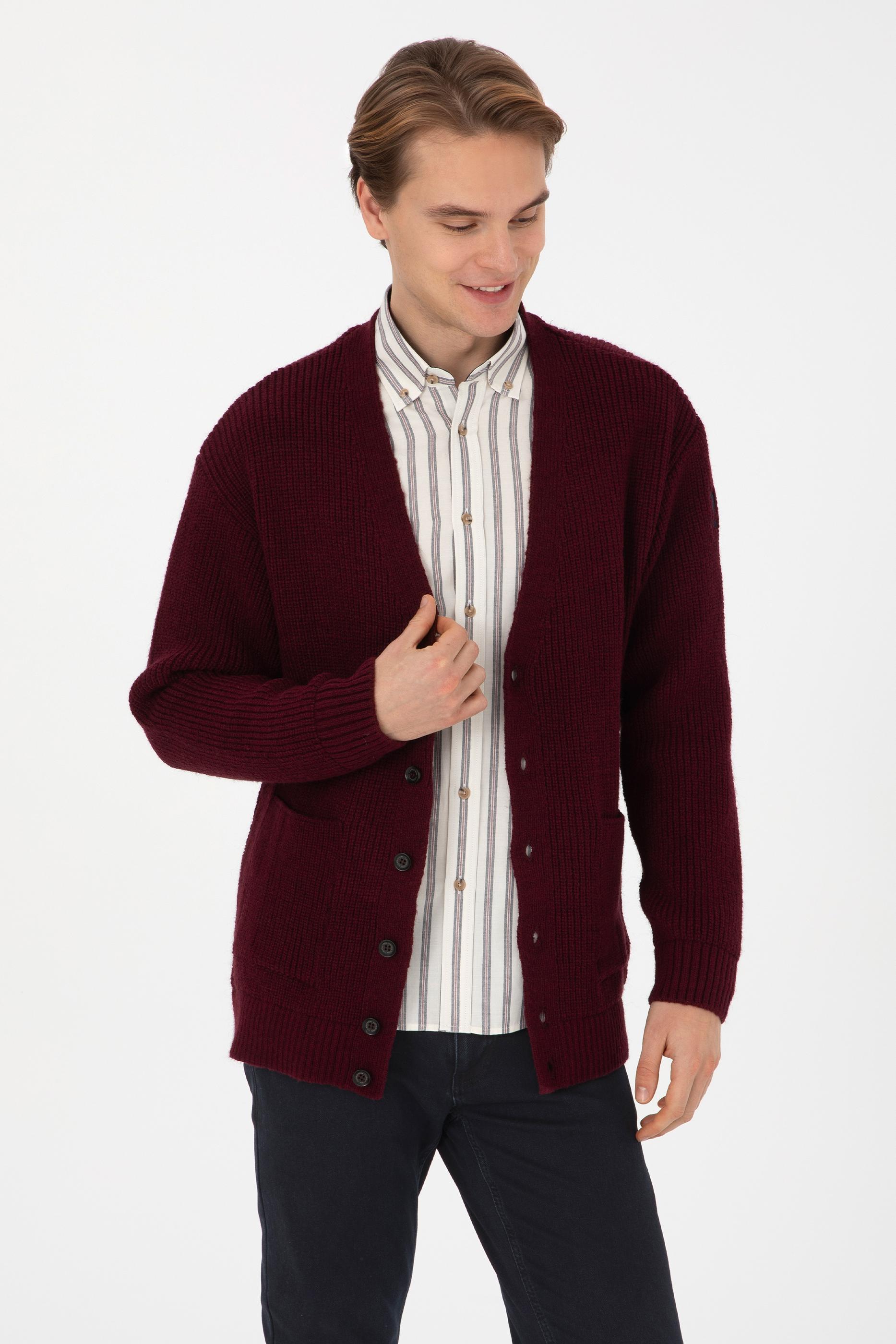Erkek Bordo Triko Hırka