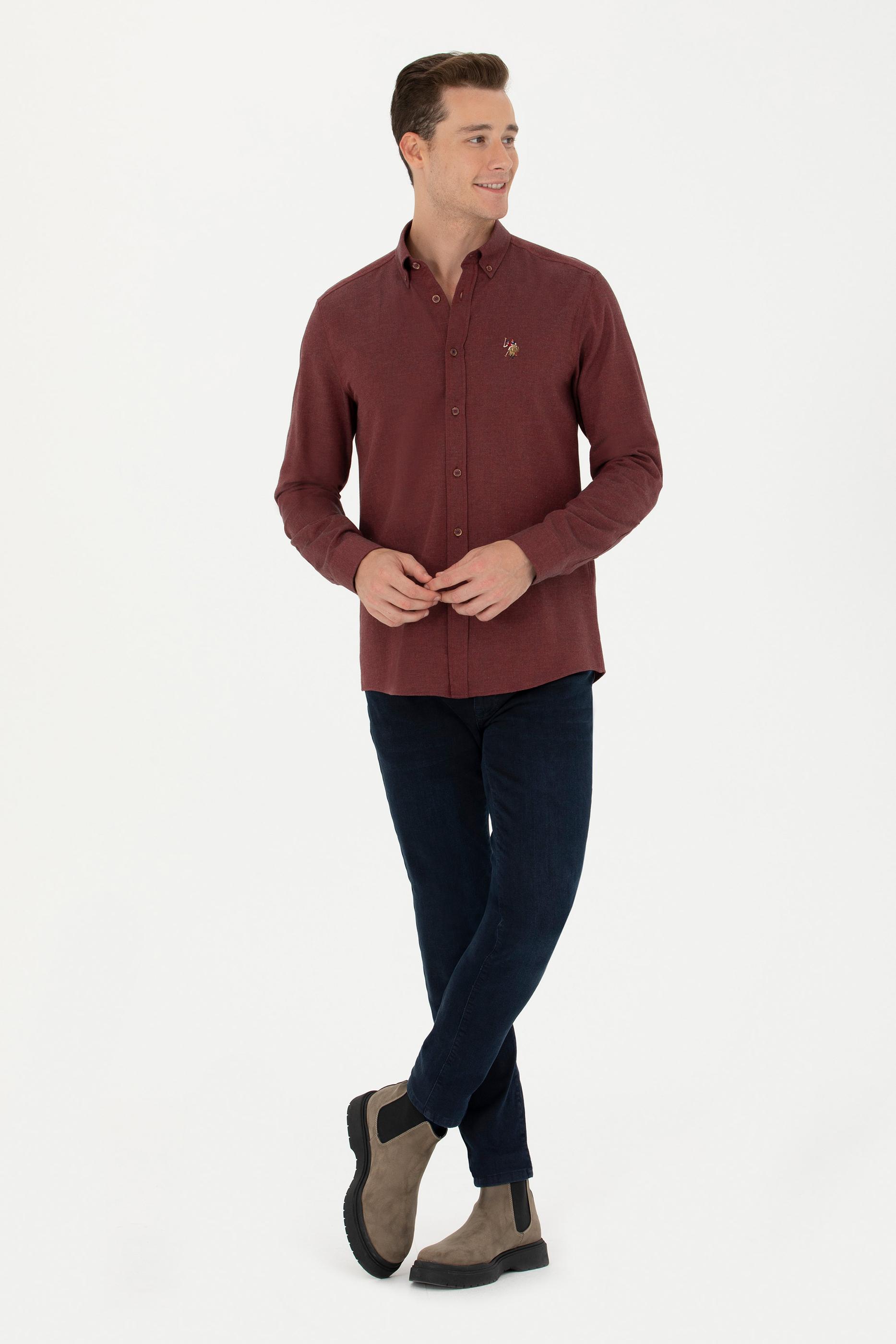 - Erkek Bordo Uzun Kollu Basic Gömlek