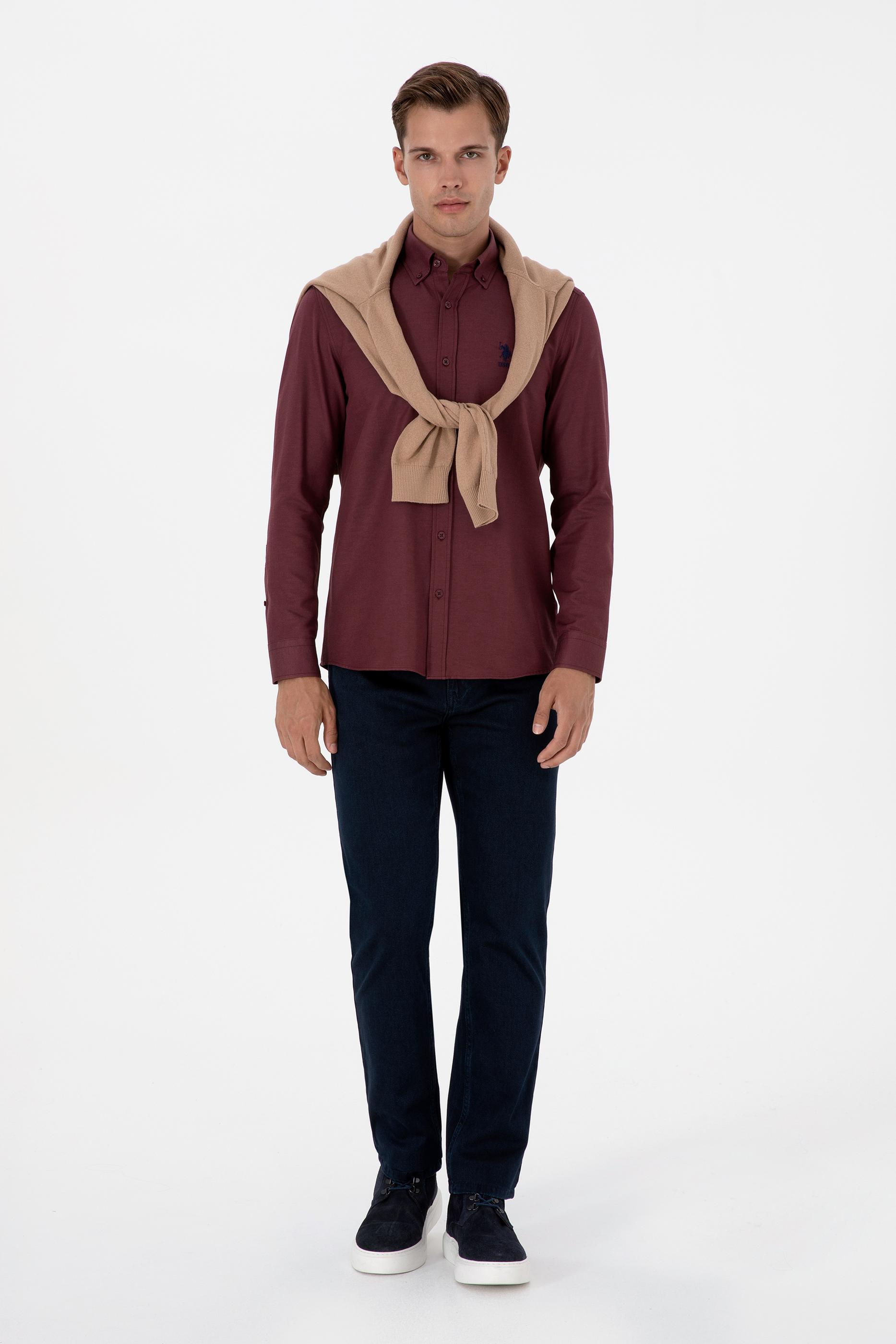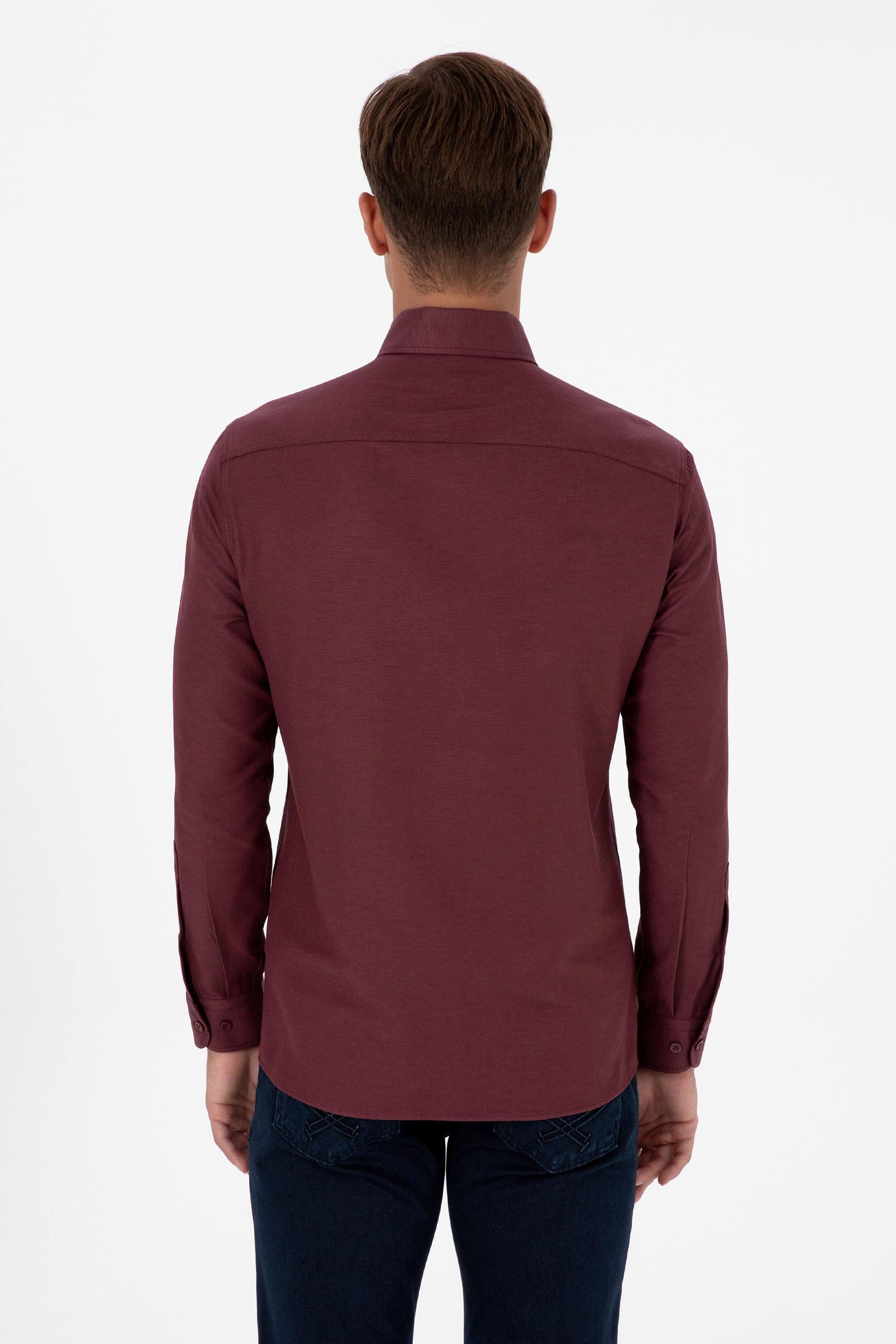 Erkek Bordo Uzun Kollu Basic Gömlek - 50307693116