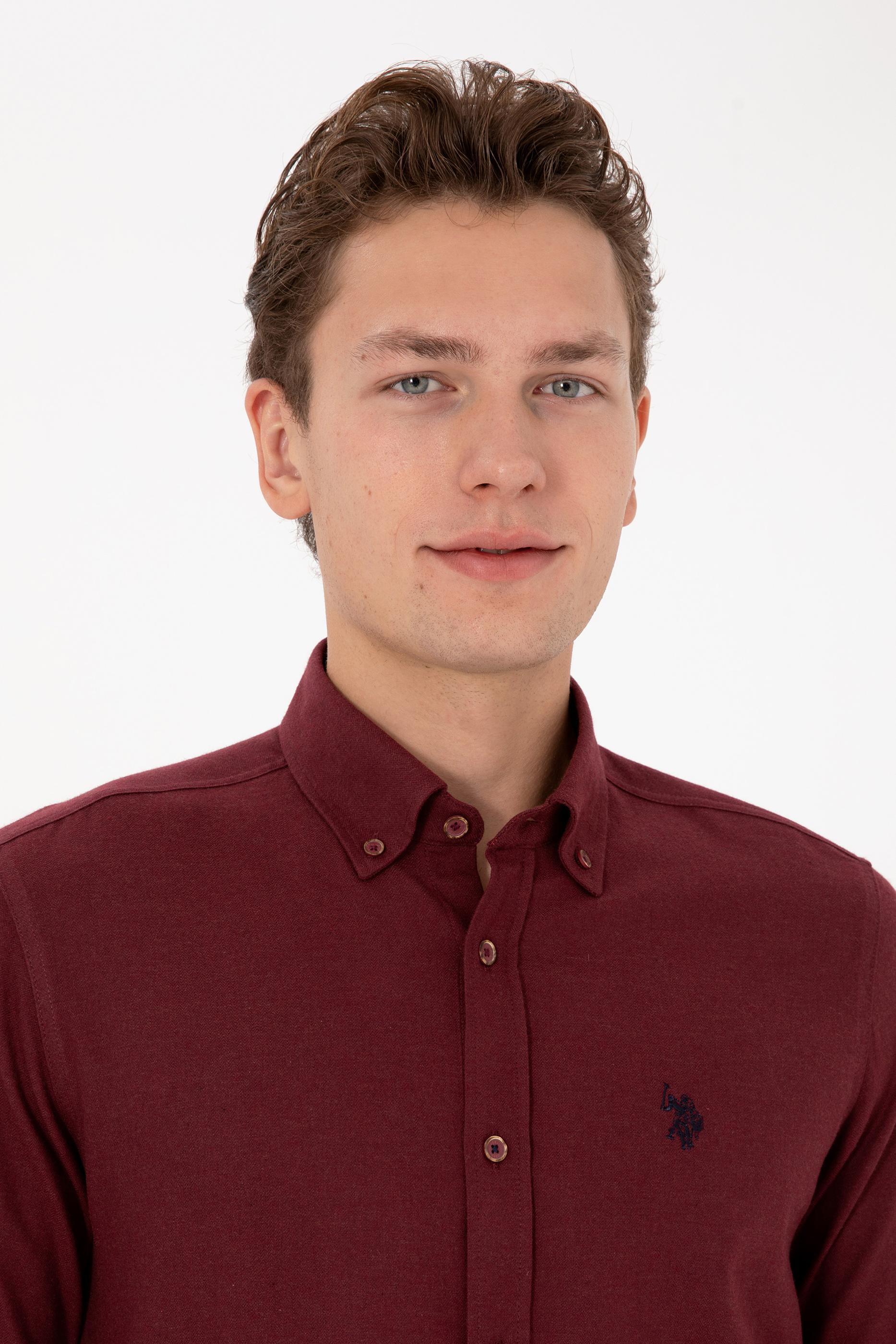 Erkek Bordo Uzun Kollu Basic Gömlek