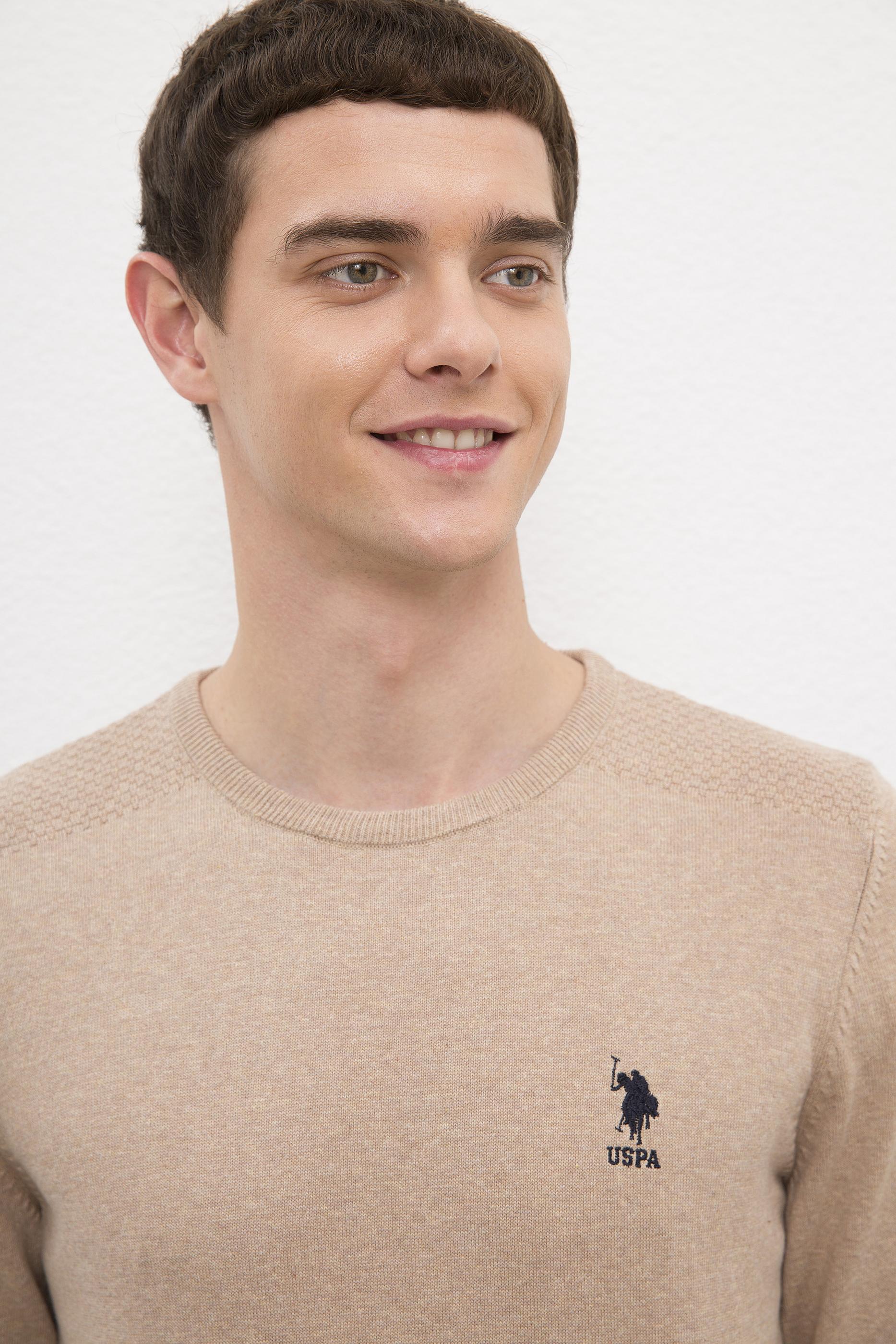 - Erkek Camel Bisiklet Yaka Basic Triko Kazak