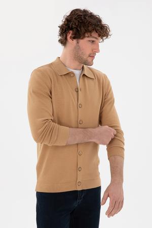 Erkek Camel Basic Triko Hırka