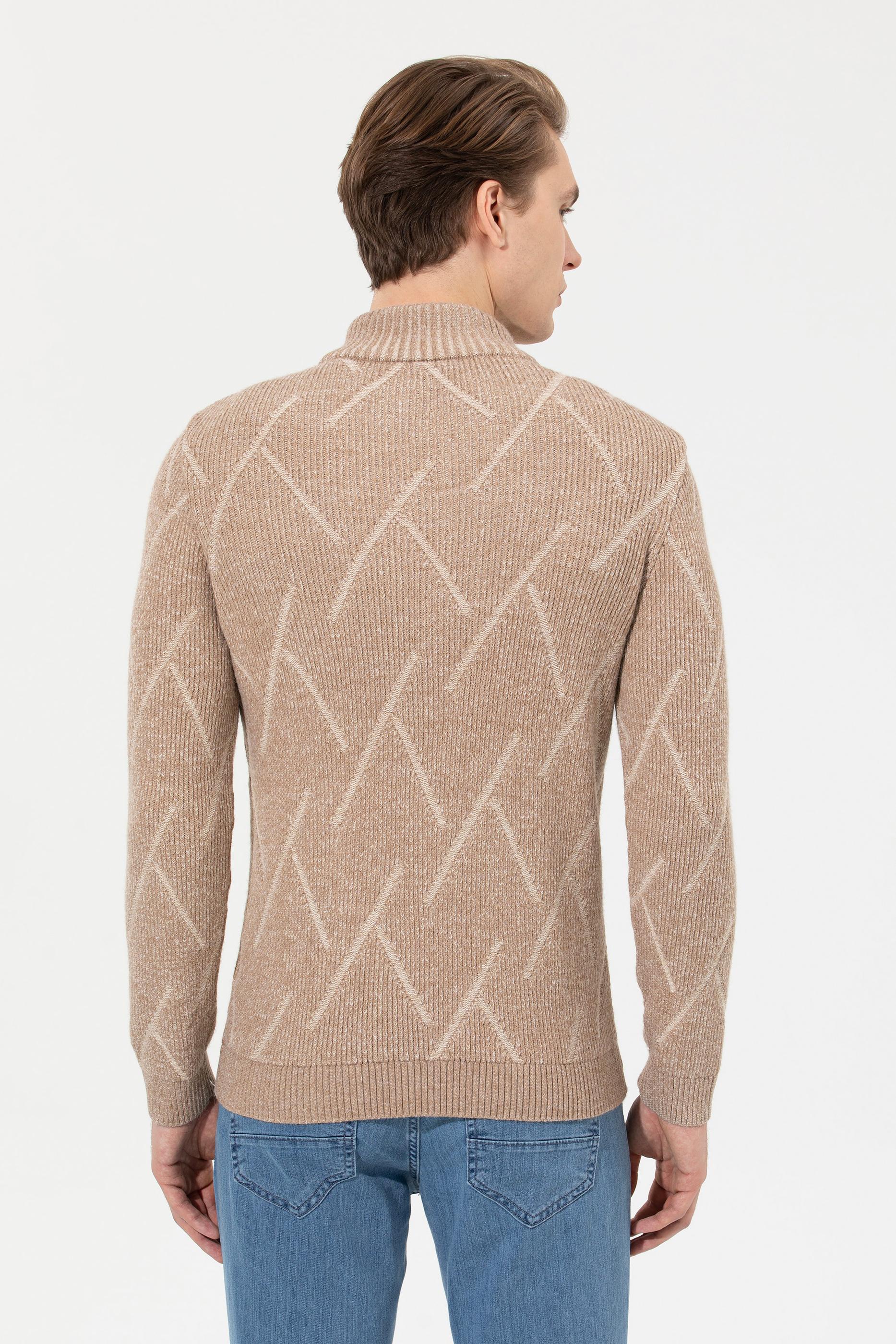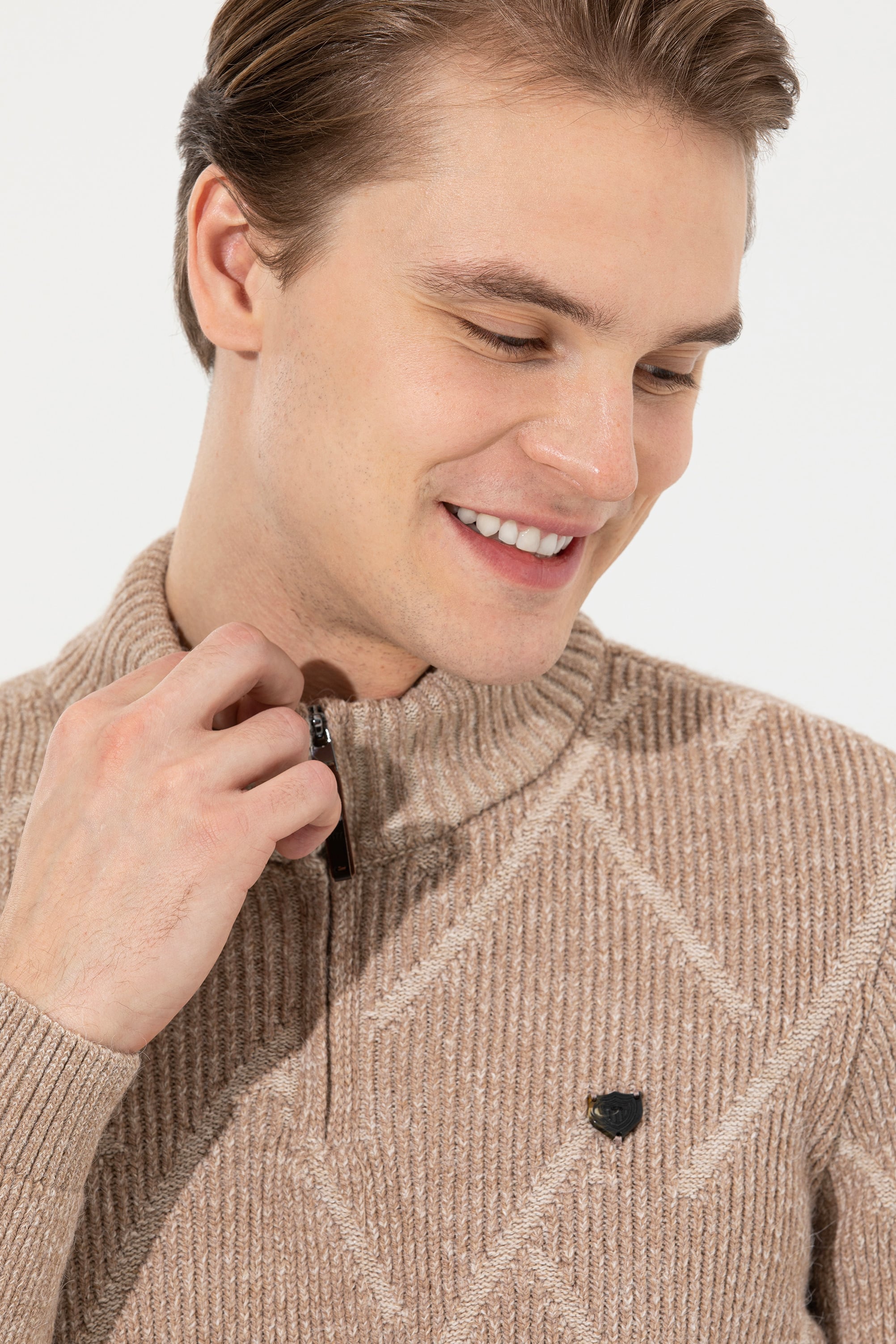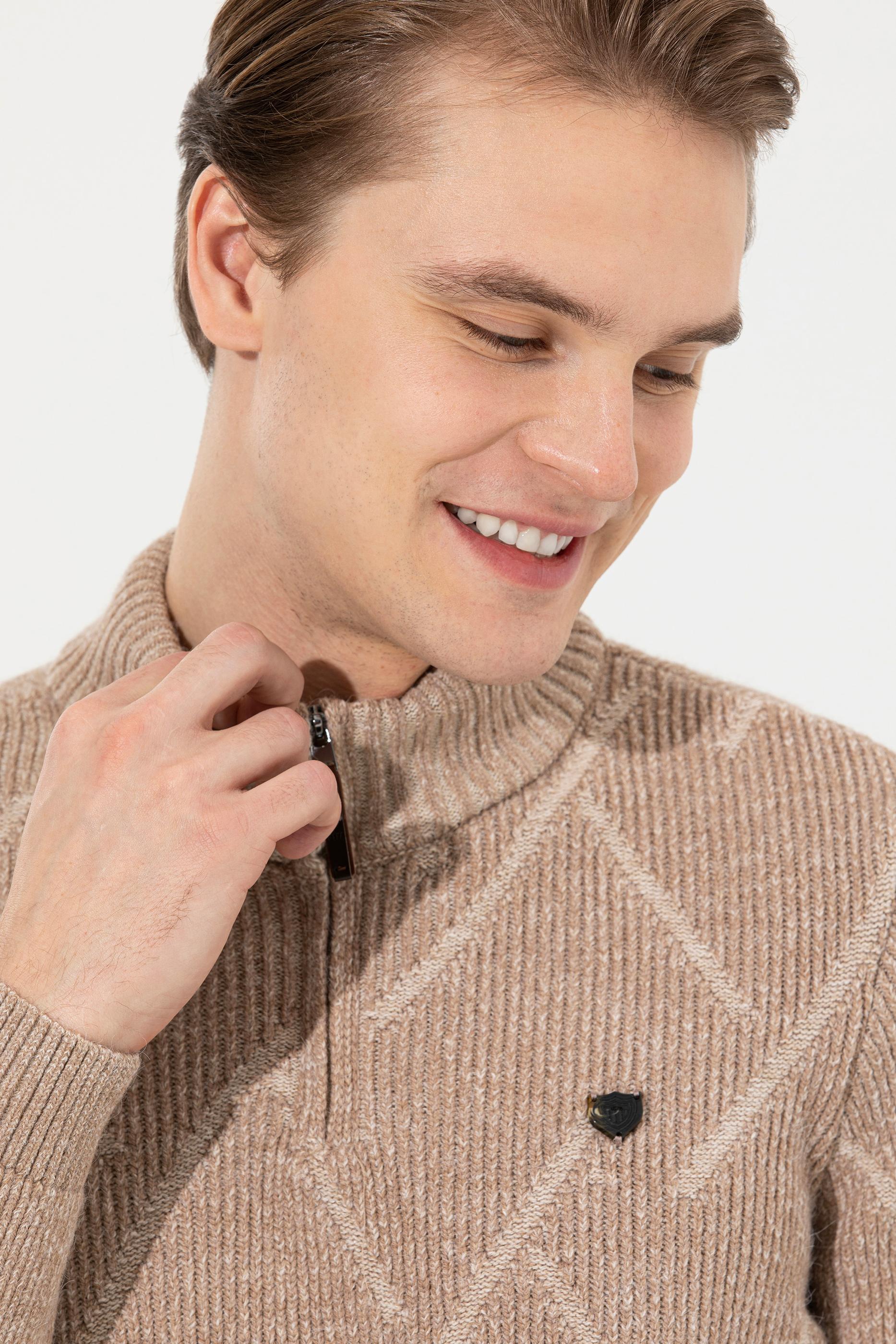 Erkek Camel Melanj Dik Yaka Triko Kazak