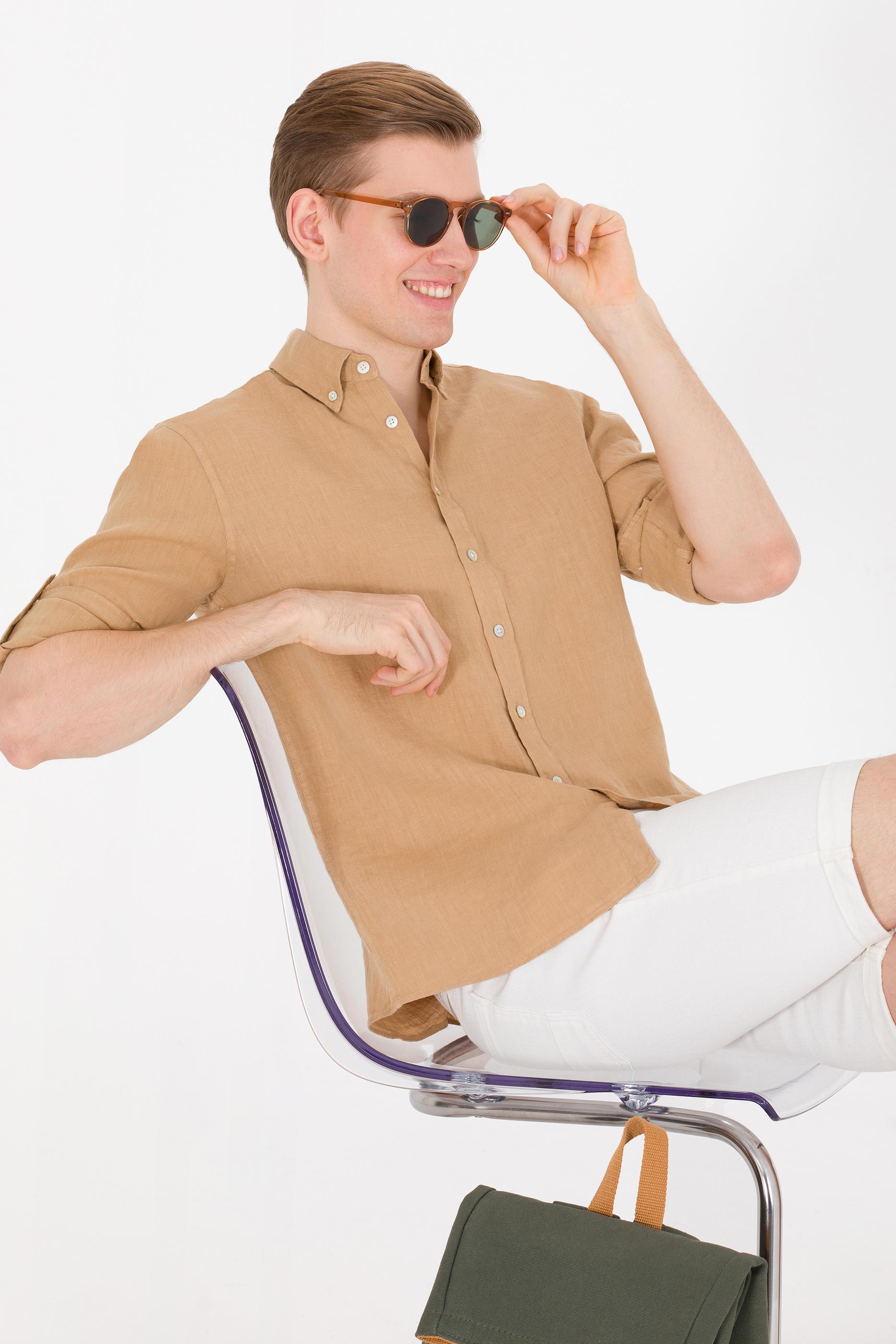 - Erkek Camel Uzun Kollu Gömlek