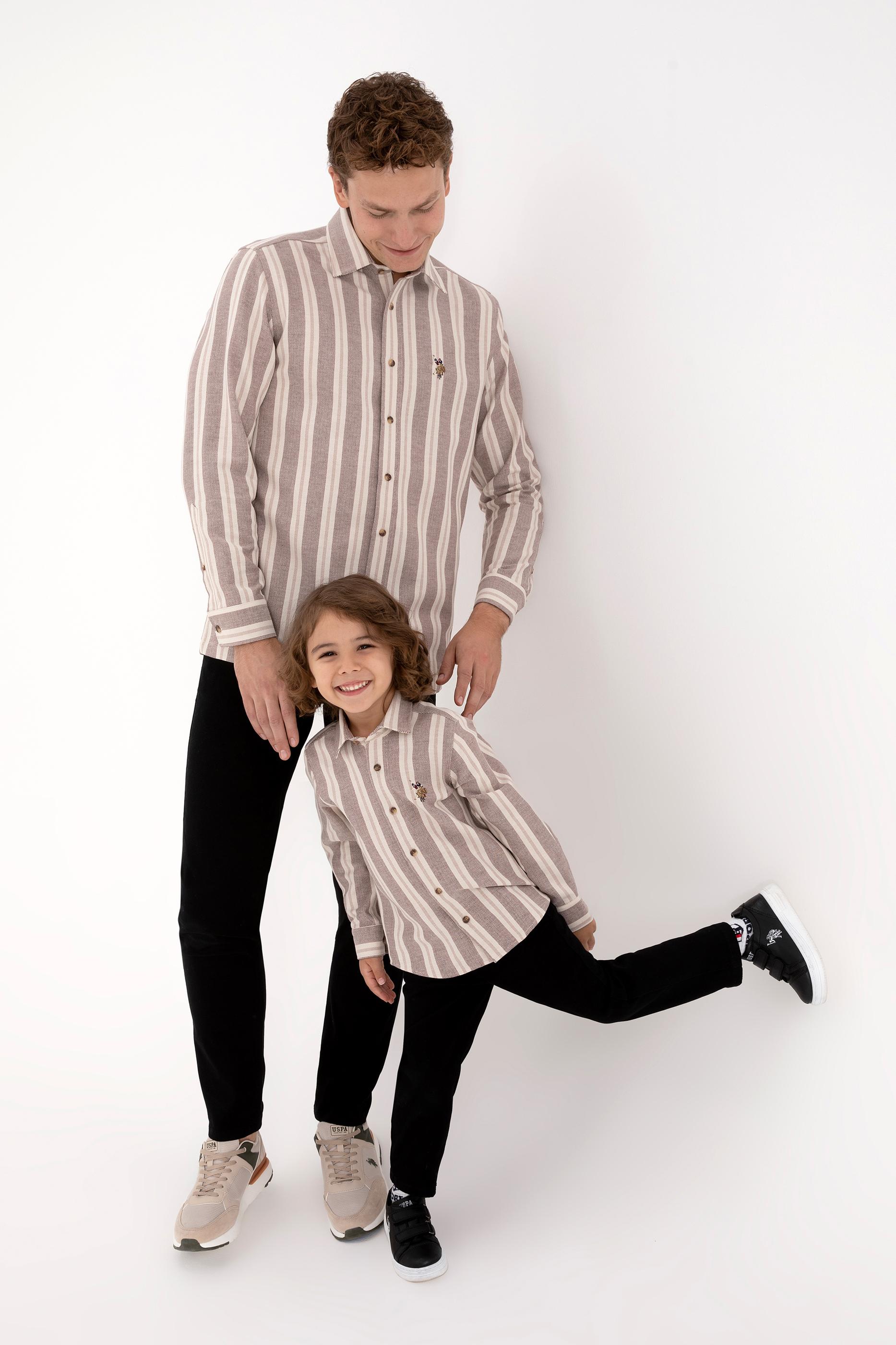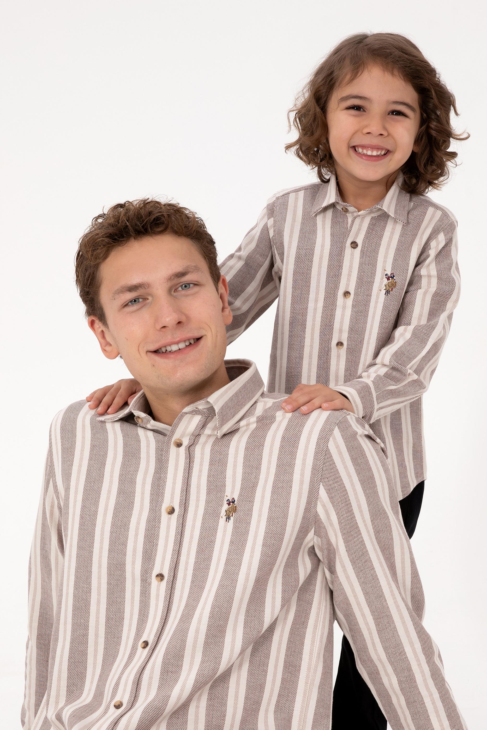 - Erkek Krem Çizgili Uzun Kollu Kahverengi Gömlek