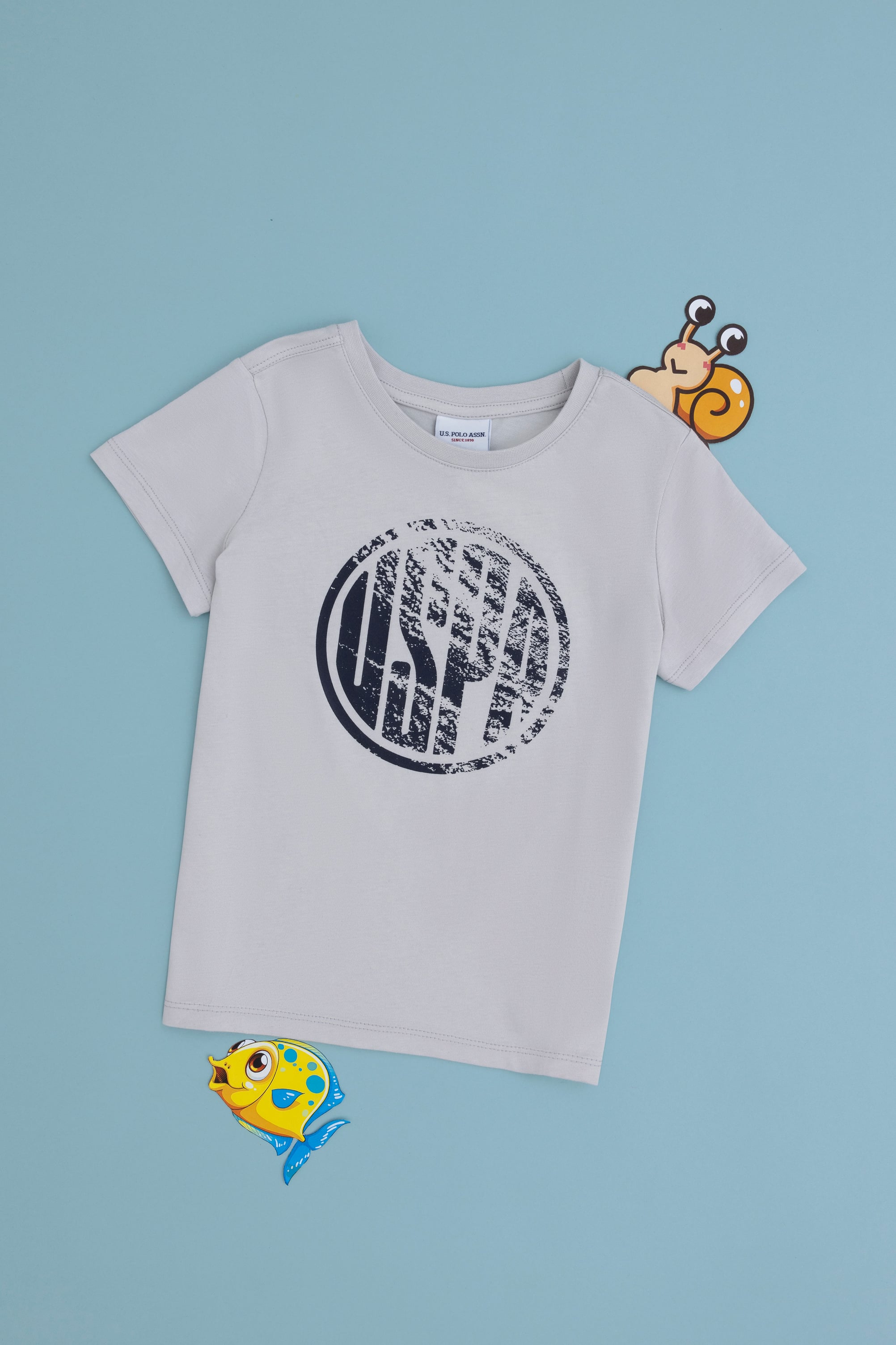 Erkek Çocuk Açık Gri Basic Bisiklet Yaka Tişört