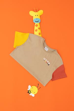 - Erkek Çocuk Açık Haki Oversize Bisiklet Yaka Tişört