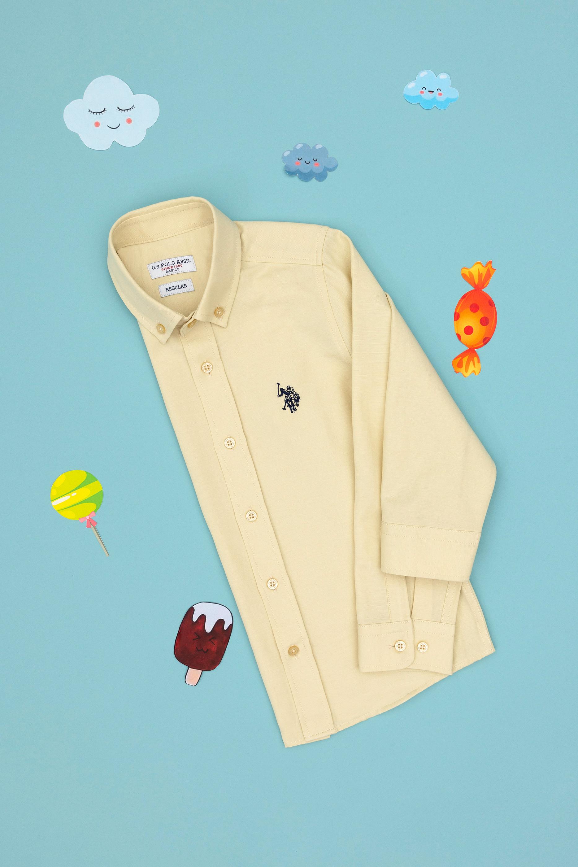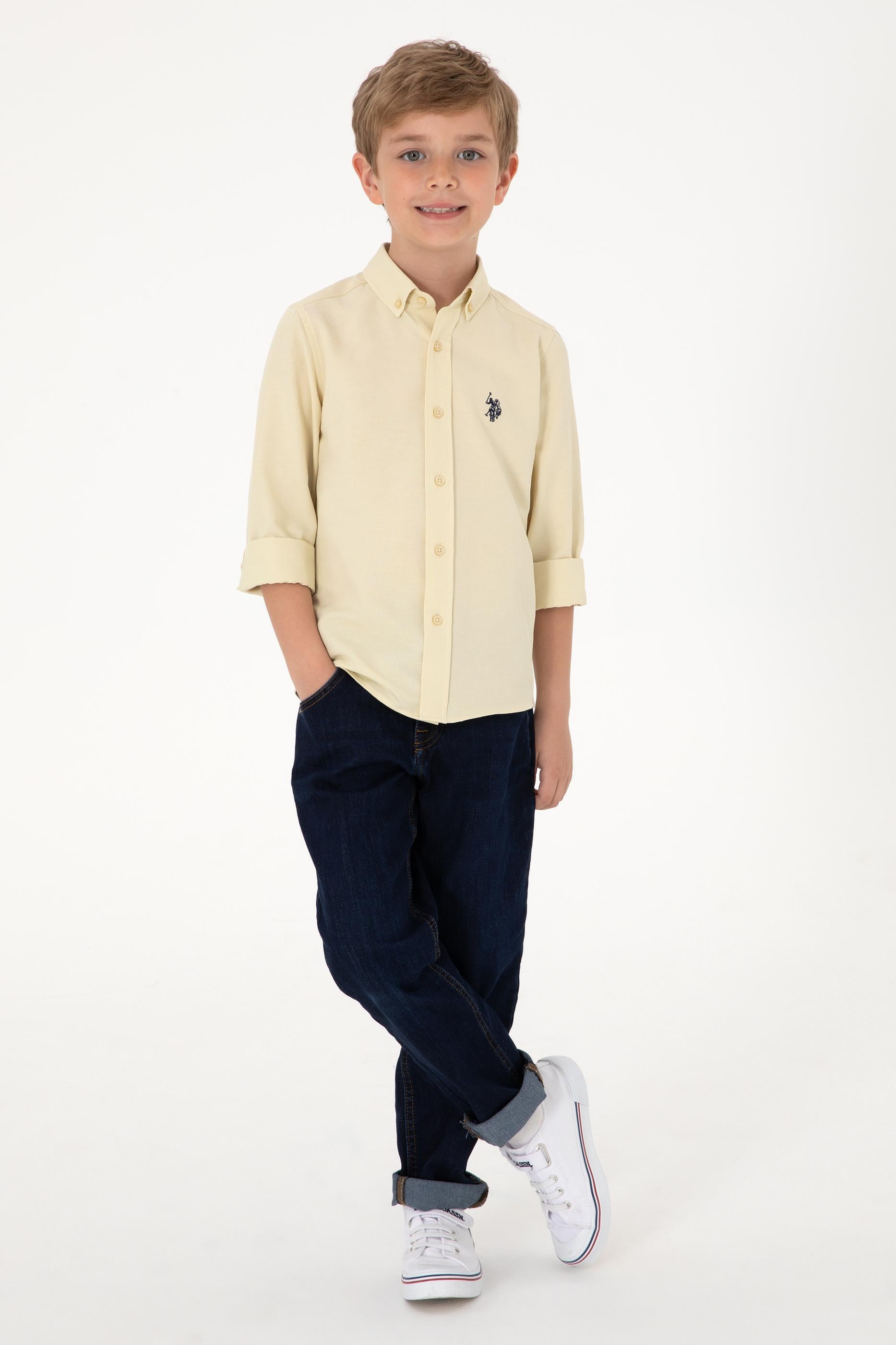 - Erkek Çocuk Açık Haki Uzun Kollu Basic Gömlek
