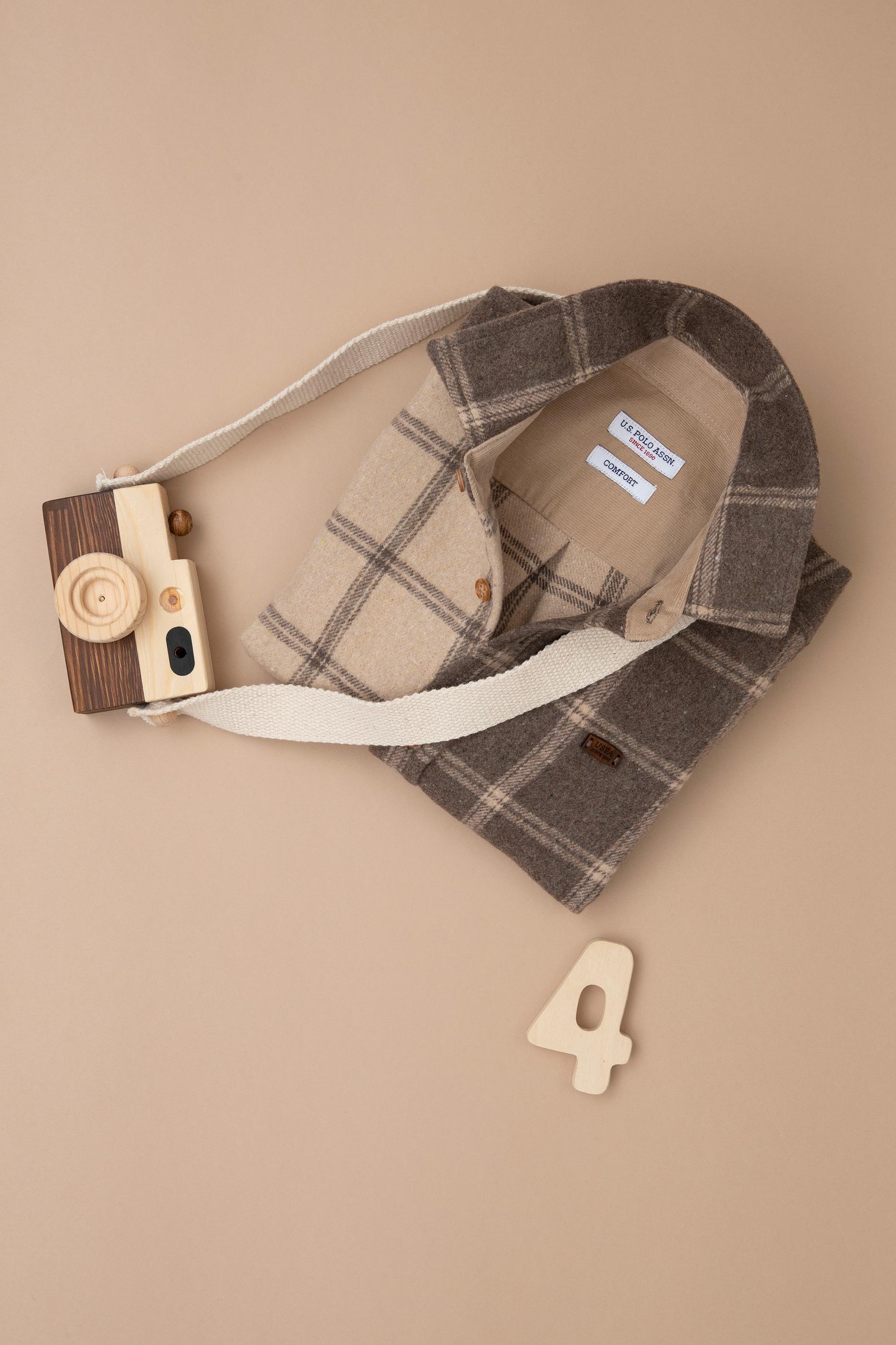 - Erkek Çocuk Açık Haki Uzun Kollu Gömlek