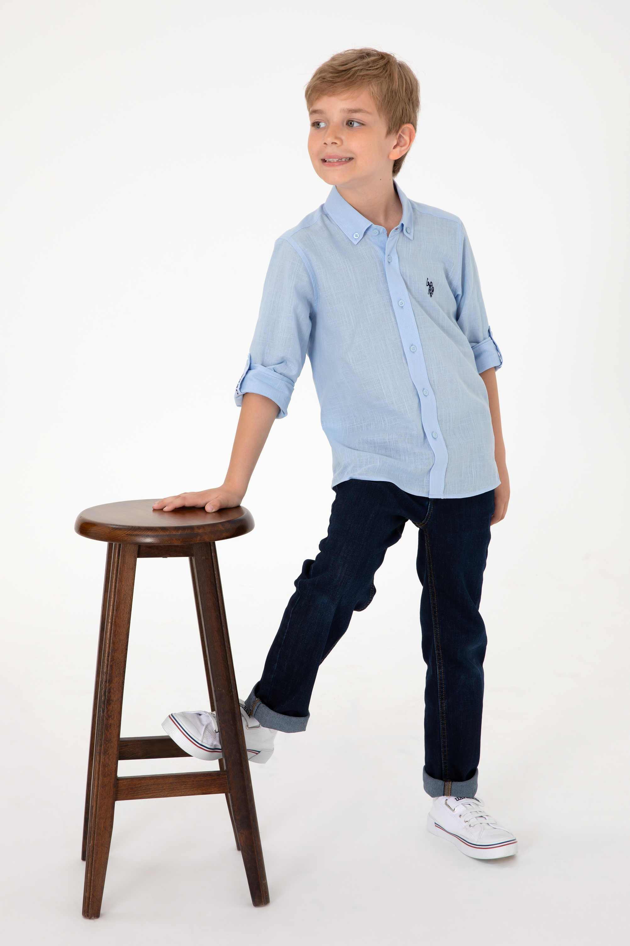 - Erkek Çocuk Açık Mavi Uzun Kollu Basic Gömlek