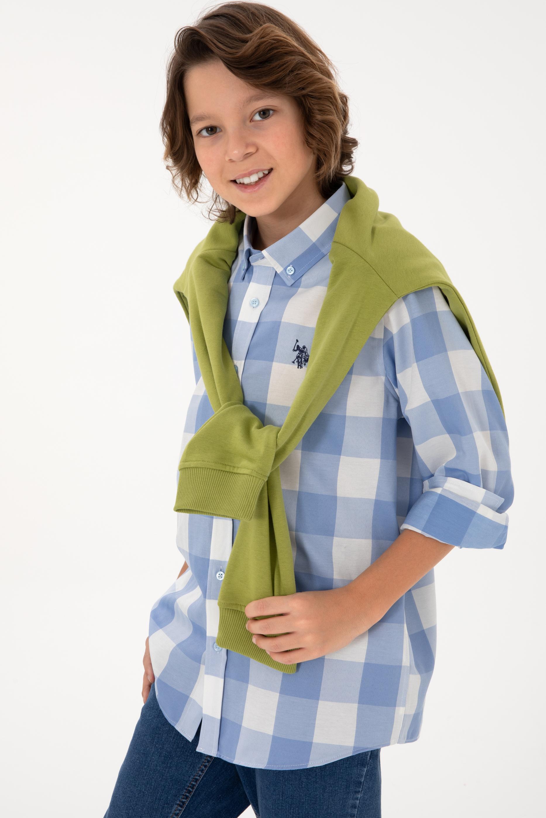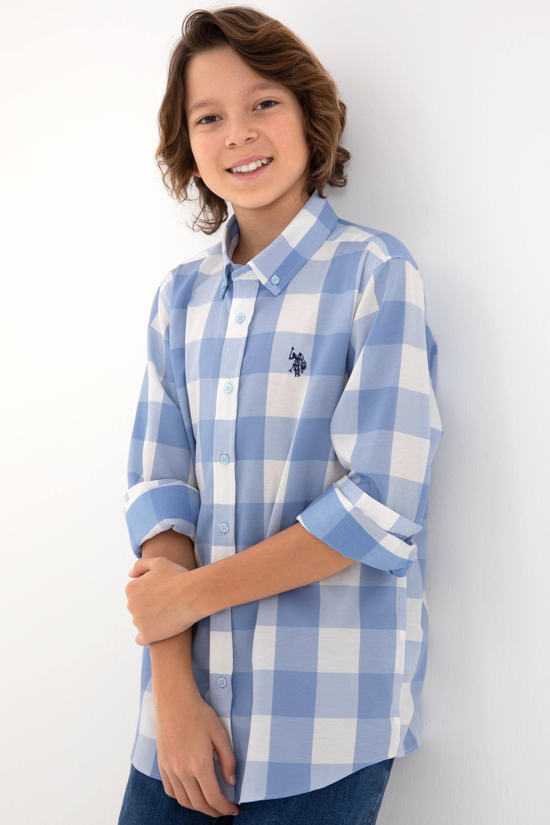 - Erkek Çocuk Açık Mavi Ekose Uzun Kollu Gömlek