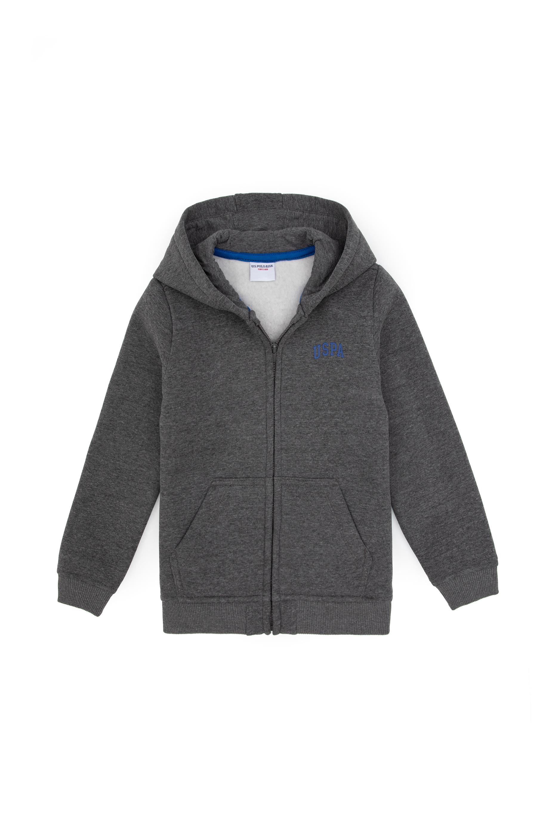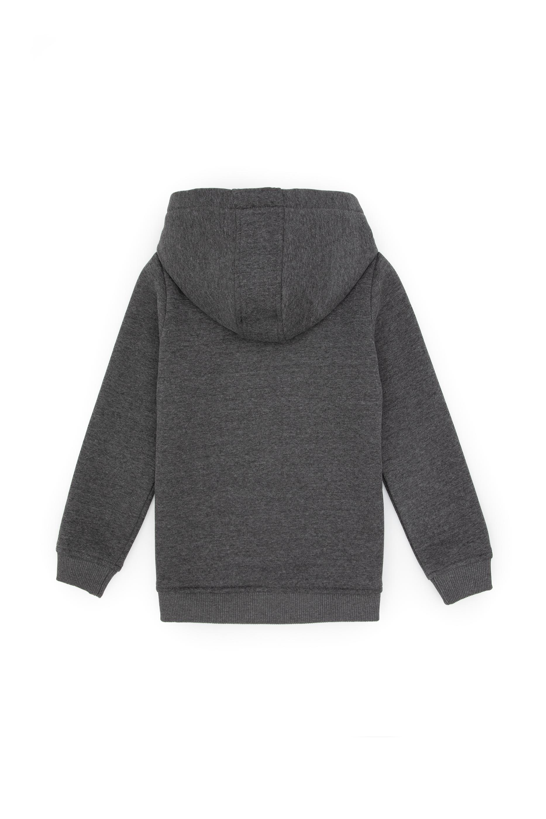 - Erkek Çocuk Antrasit Melanj Fermuarlı Şardonlu Kapüşonlu Örme Hırka