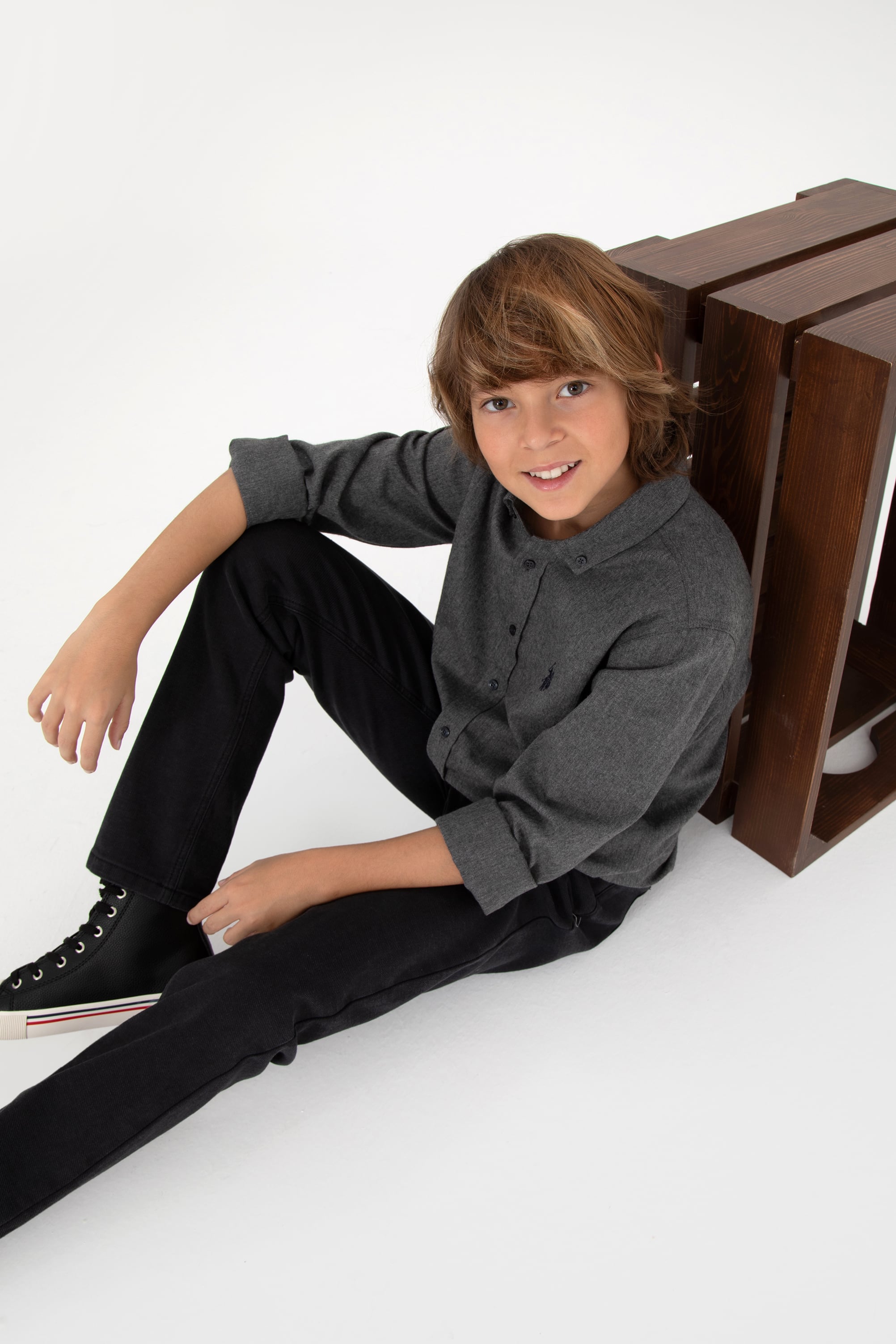 - Erkek Çocuk Antrasit Uzun Kollu Basic Gömlek