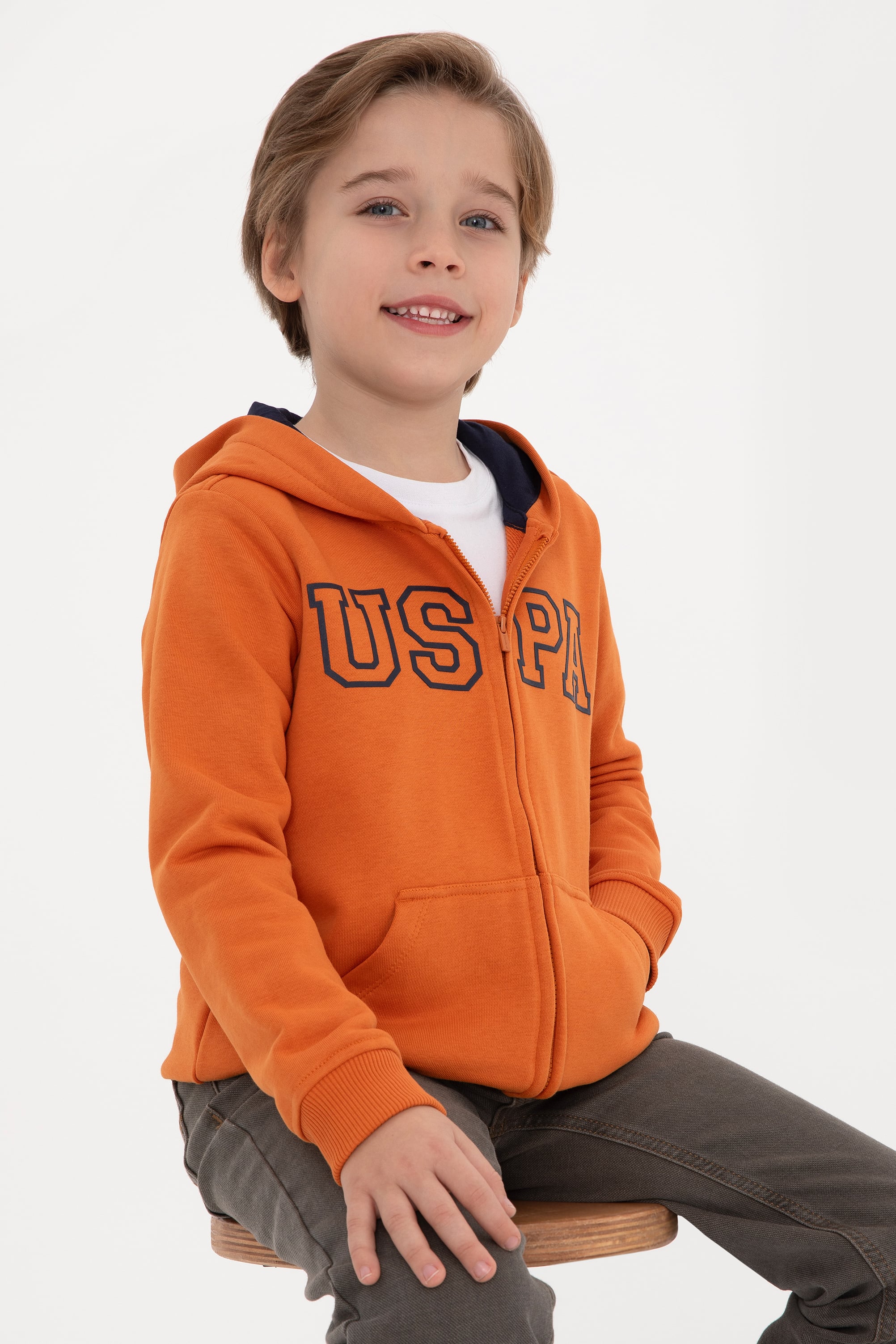 - Erkek Çocuk Bakır Örme Fermuarlı Kapüşonlu Hırka